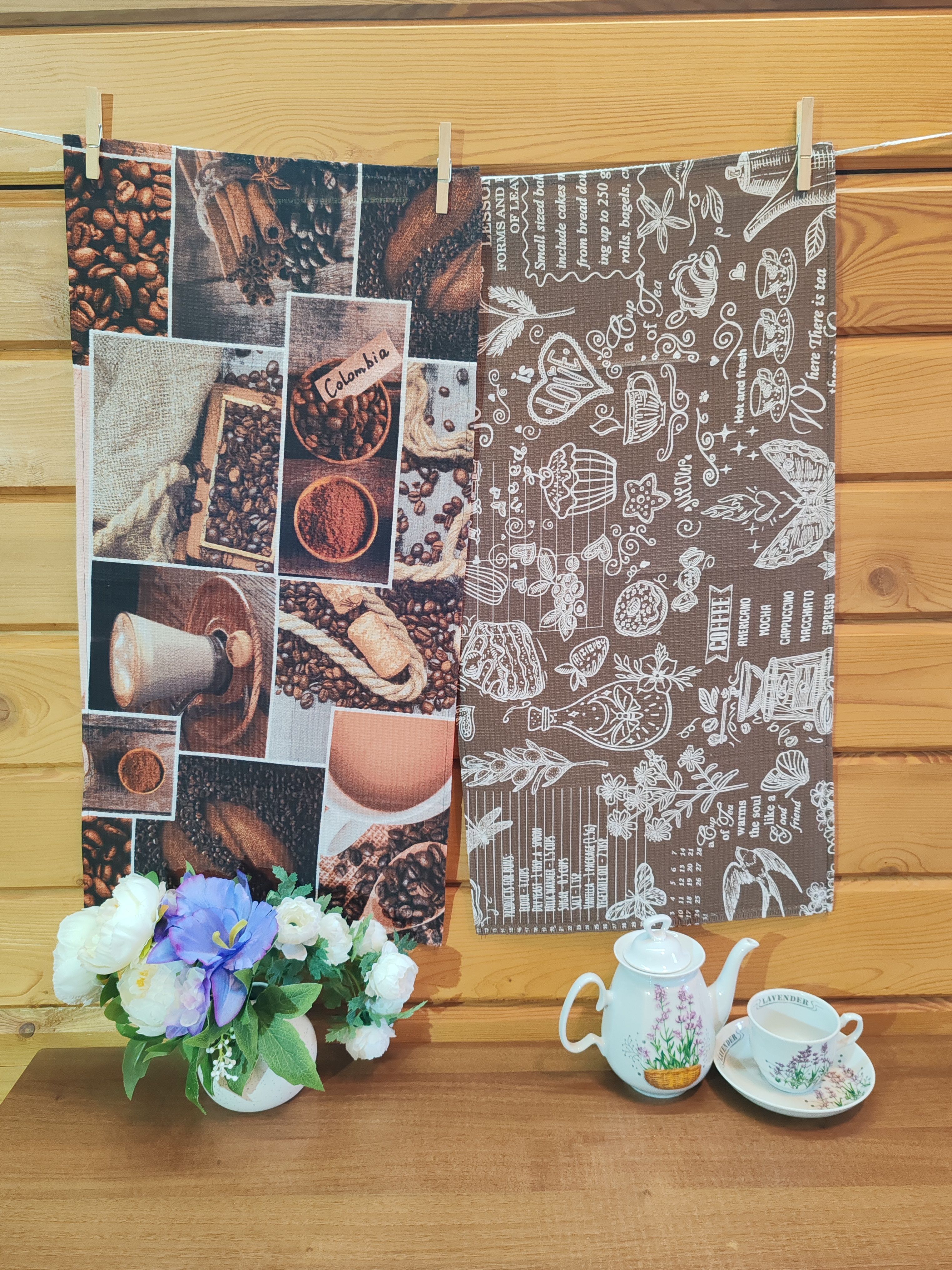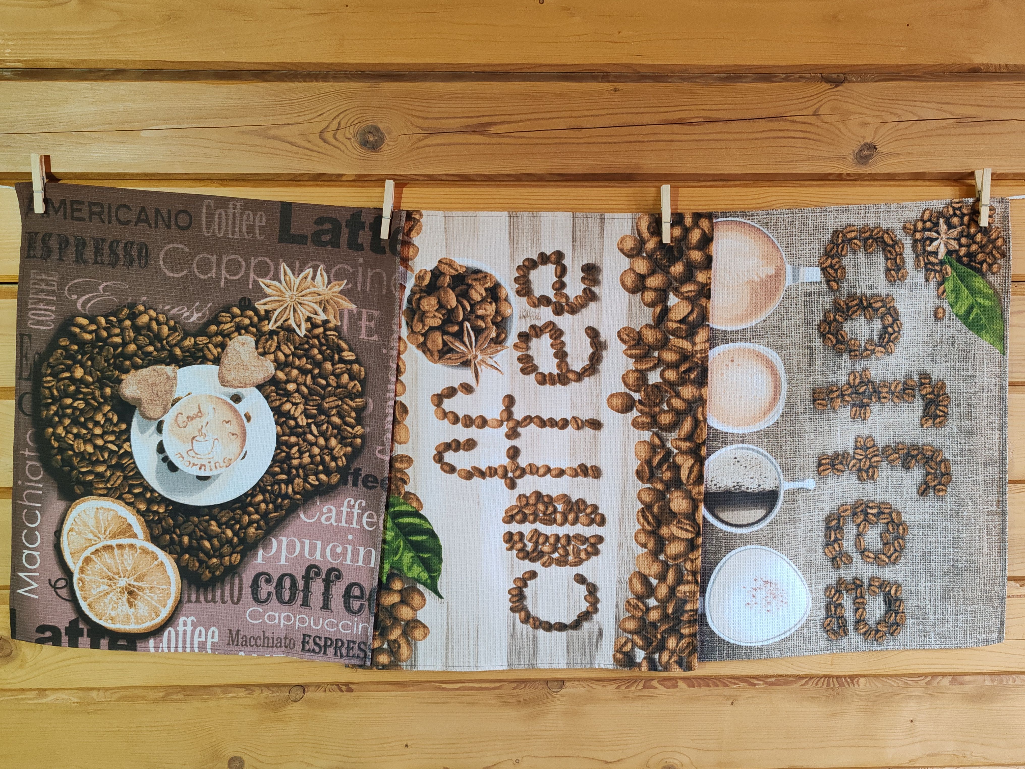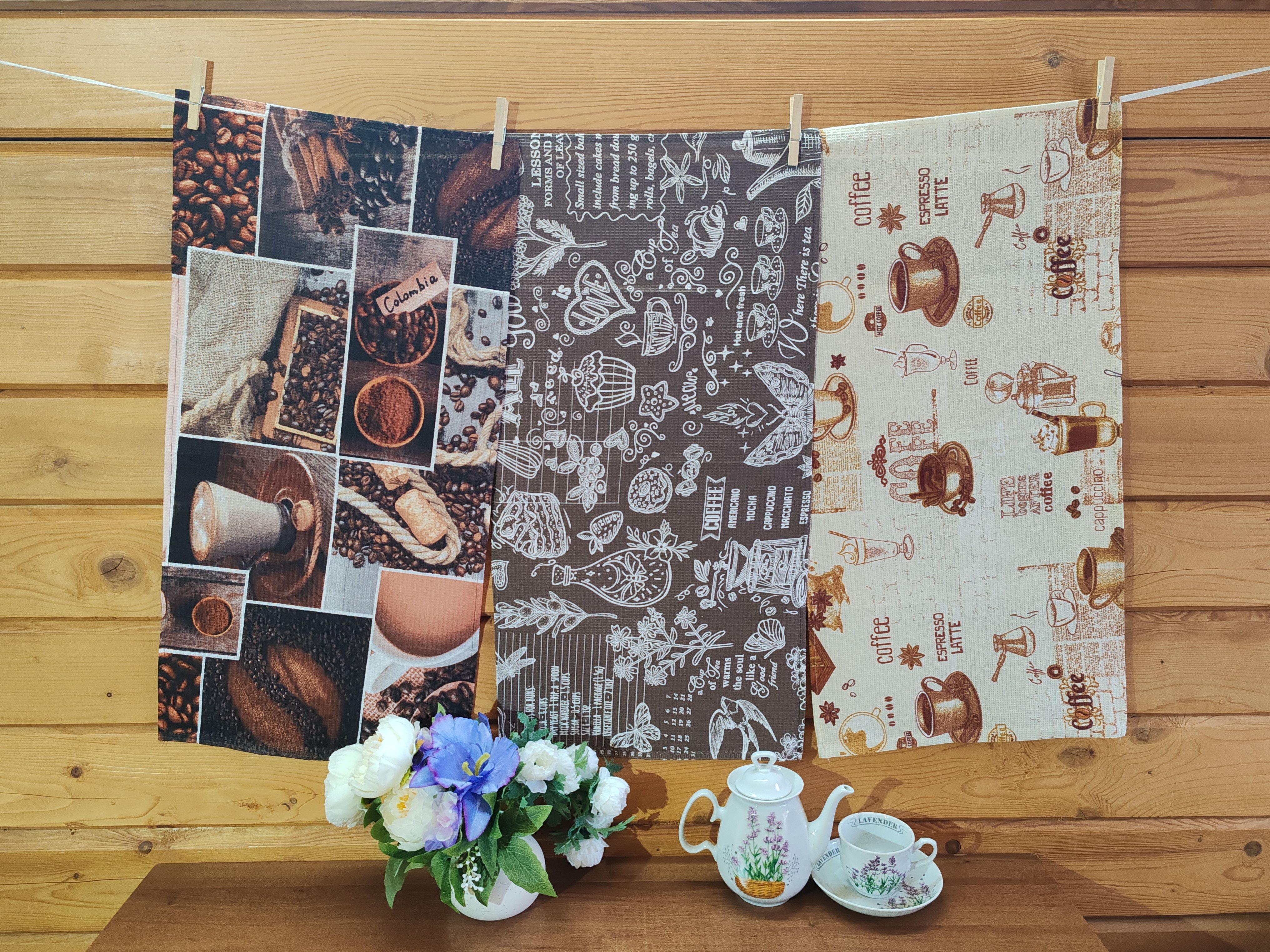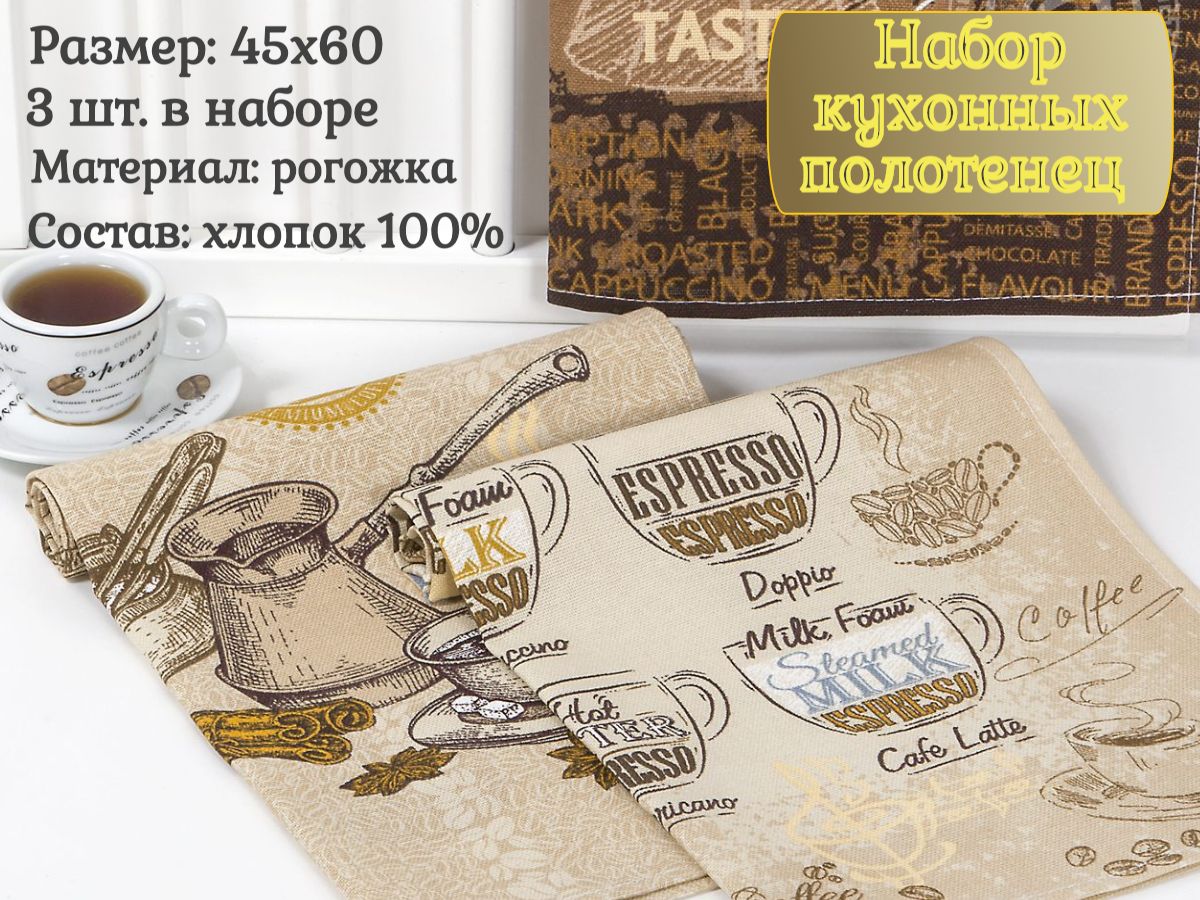 166 / бежевый / Кофейня / Кофе / 200 / Рогожка / Набор полотенец для кухни из рогожки, размер 45х60, 3 штуки в упаковке. / Ивановский текстиль / 45x60 / Прямоугольник / 3 / Рогожка / Универсальный