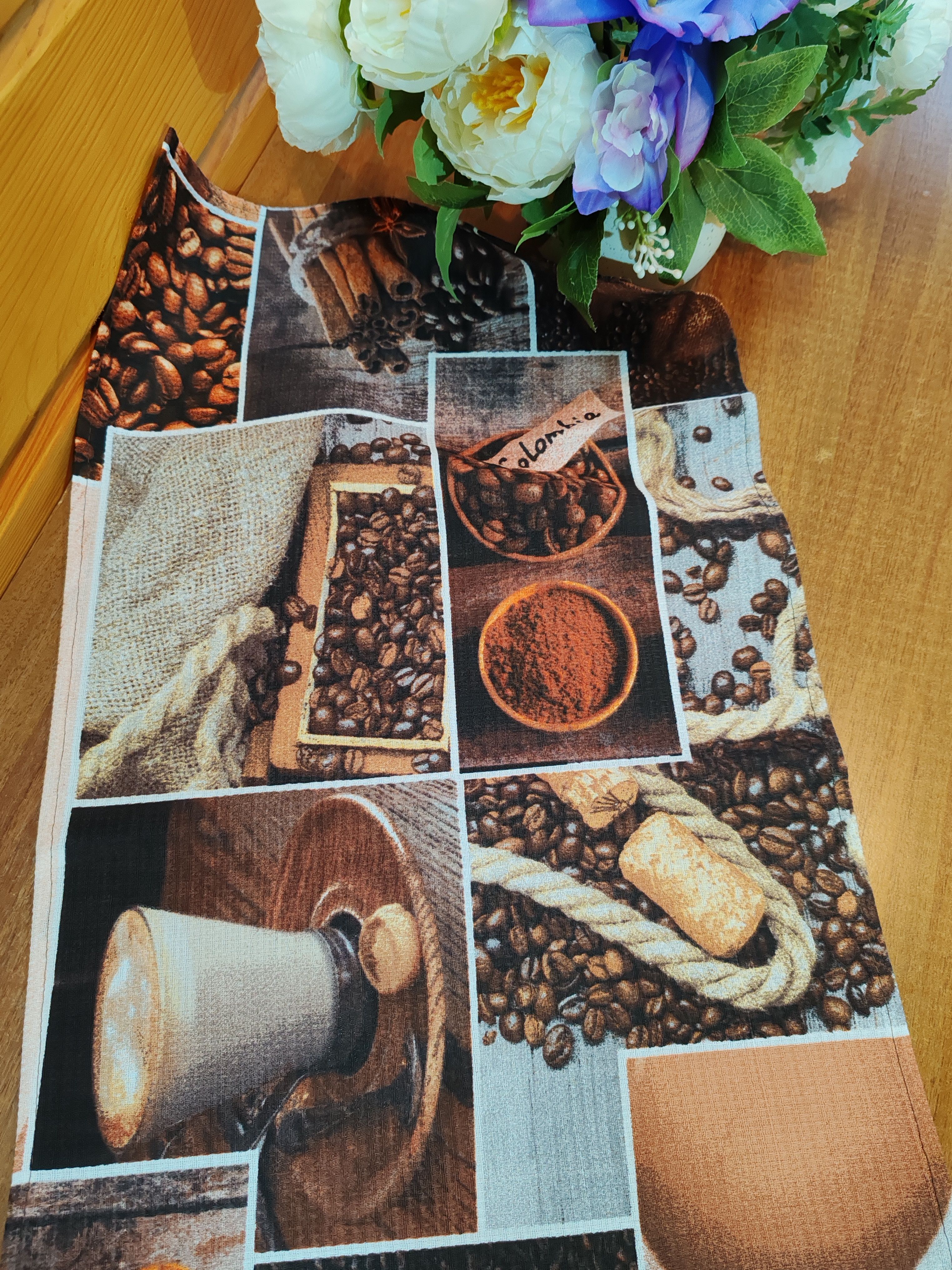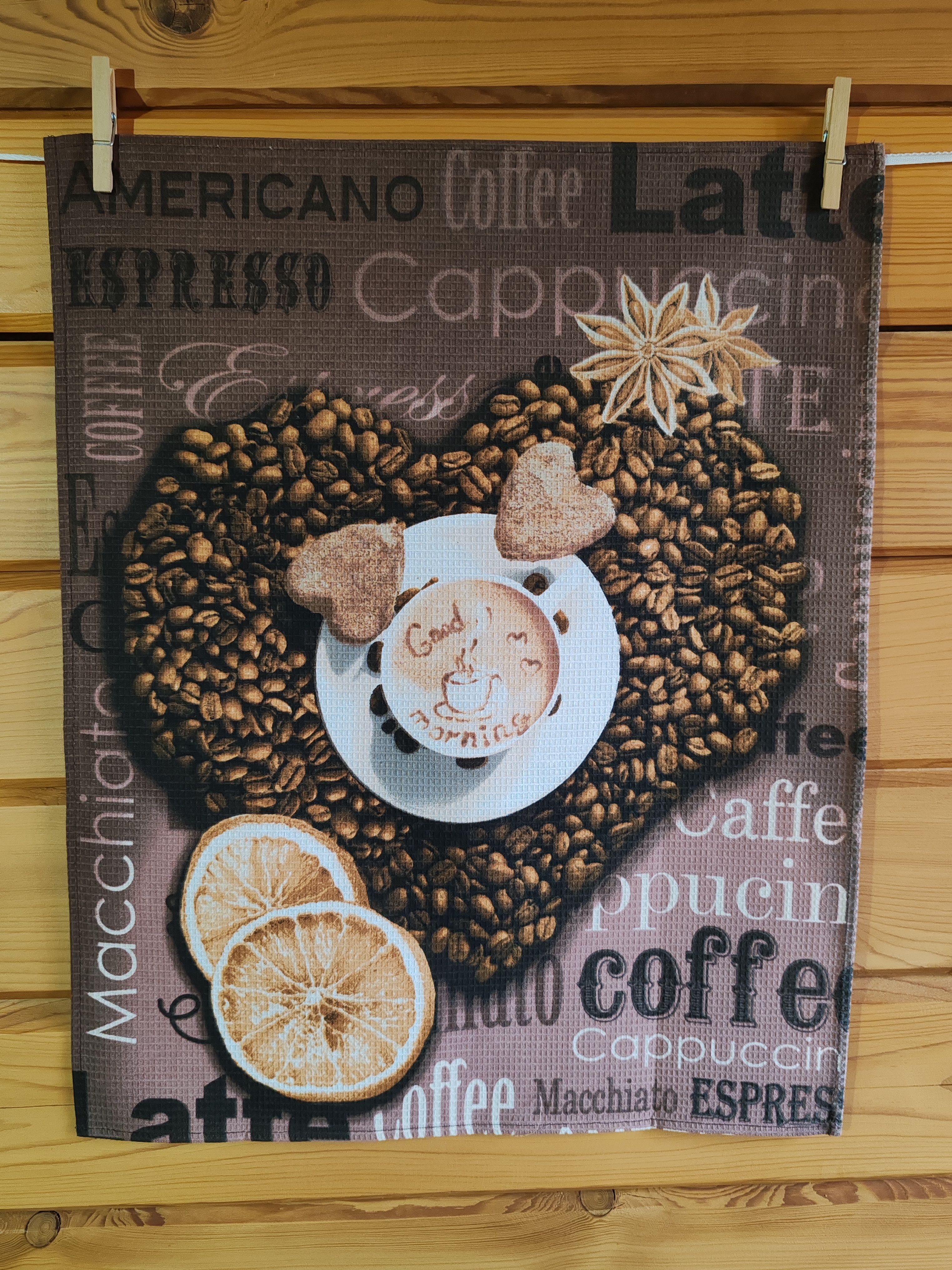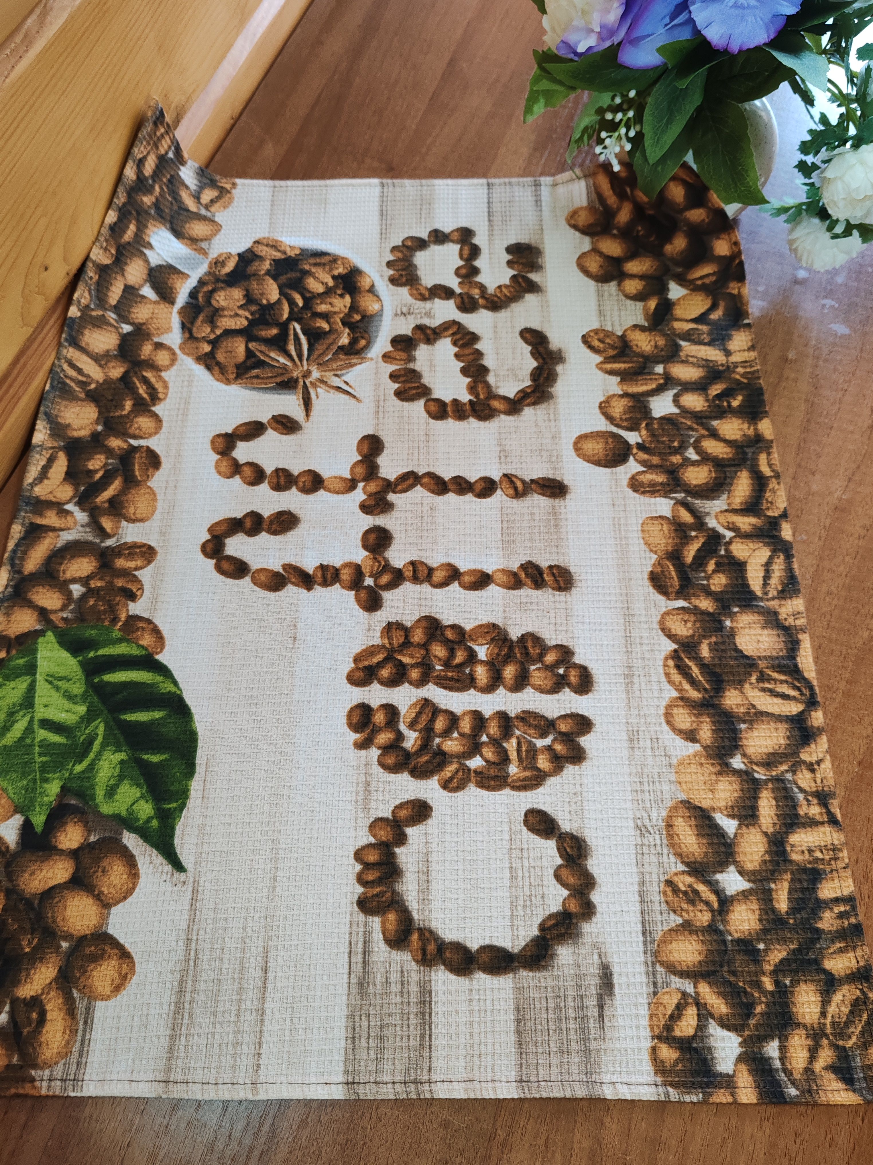 166 / бежевый / Кофейня / Кофе / 200 / Рогожка / Набор полотенец для кухни из рогожки, размер 45х60, 3 штуки в упаковке. / Ивановский текстиль / 45x60 / Прямоугольник / 3 / Рогожка / Универсальный