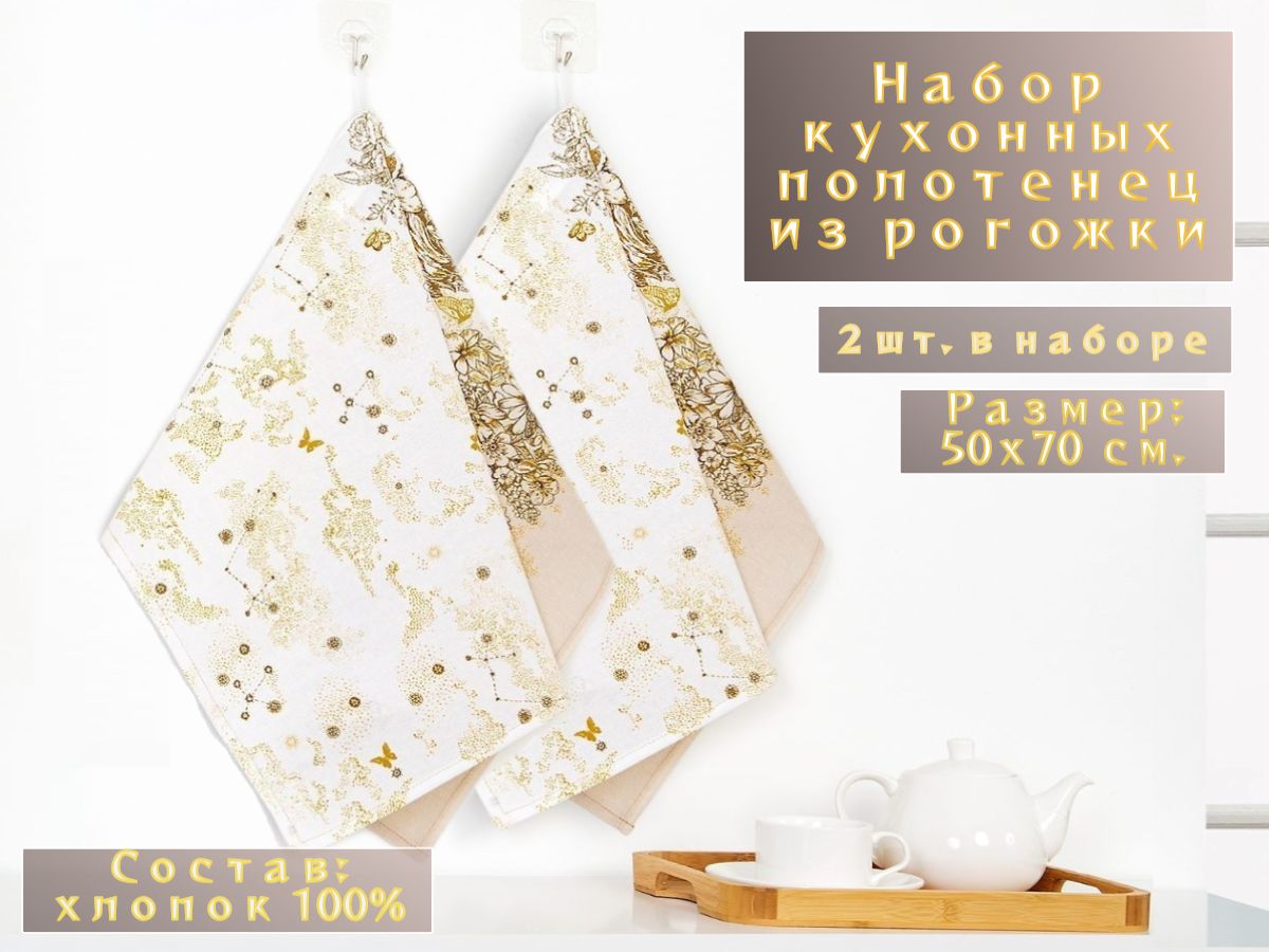 165 / бежевый / Марципан / Геометрический / 200 / Рогожка / Набор полотенец для кухни из рогожки, размер 50х70, 2 штуки в упаковке. / Ивановский текстиль / 50x70 / Прямоугольник / 2 / Рогожка / Универсальный