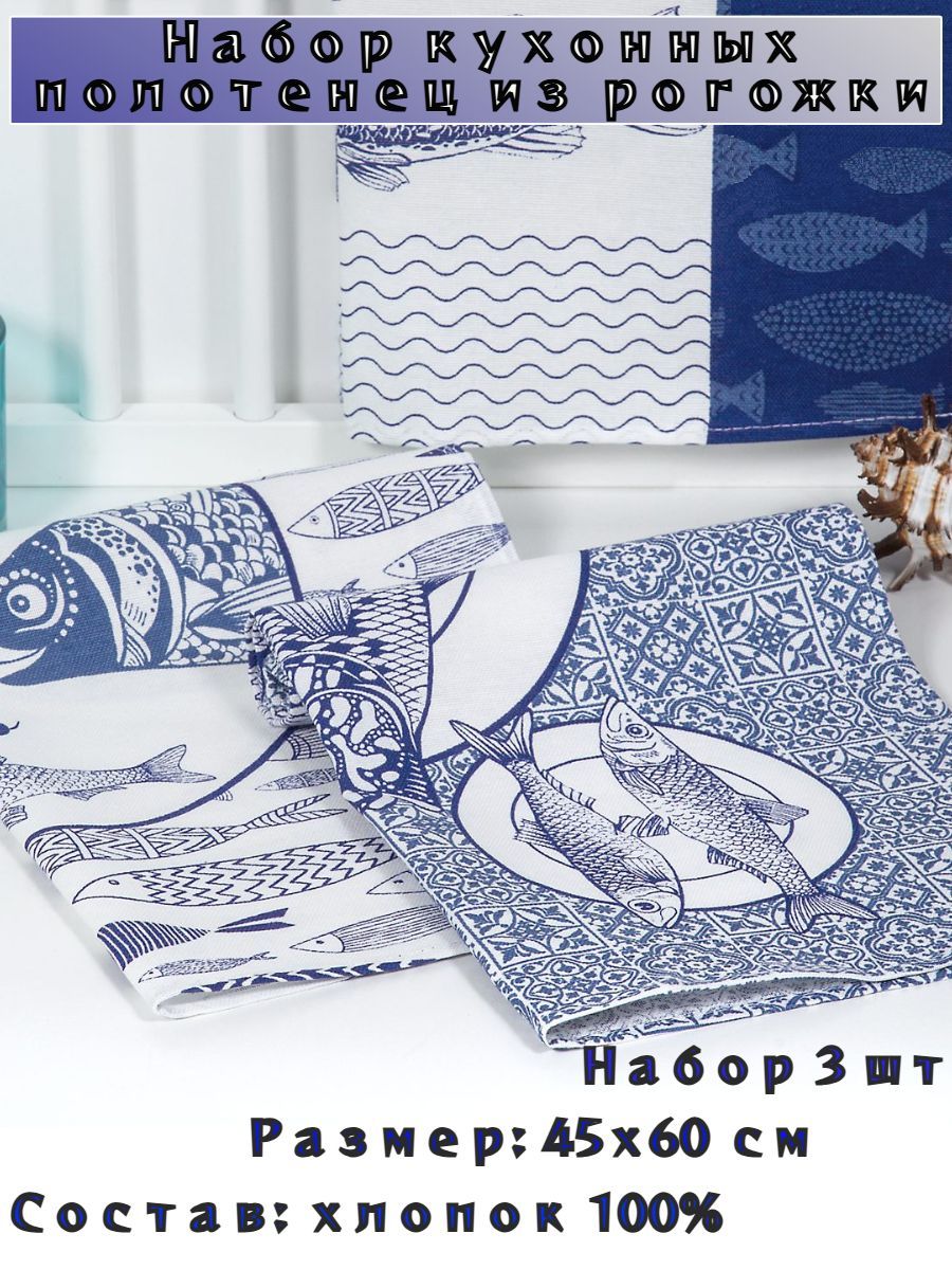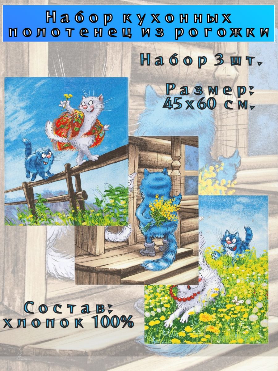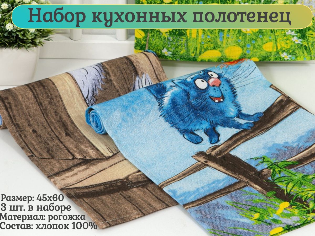 165 / синий / Маркос / Кот, котёнок / 200 / Рогожка / Набор полотенец для кухни из рогожки, размер 45х60, 3 штуки в упаковке. / Ивановский текстиль / 45x60 / Прямоугольник / 3 / Рогожка / Универсальный