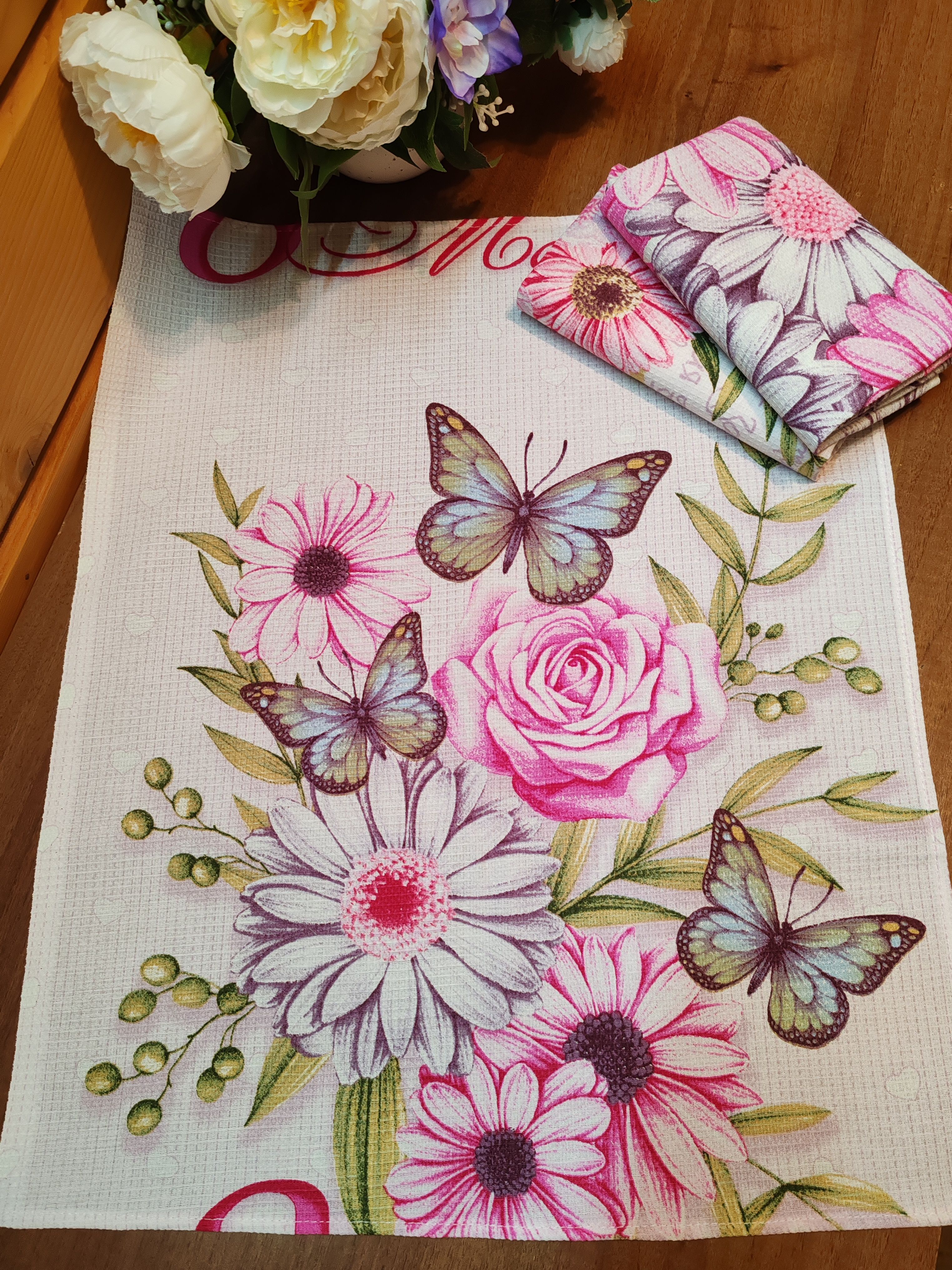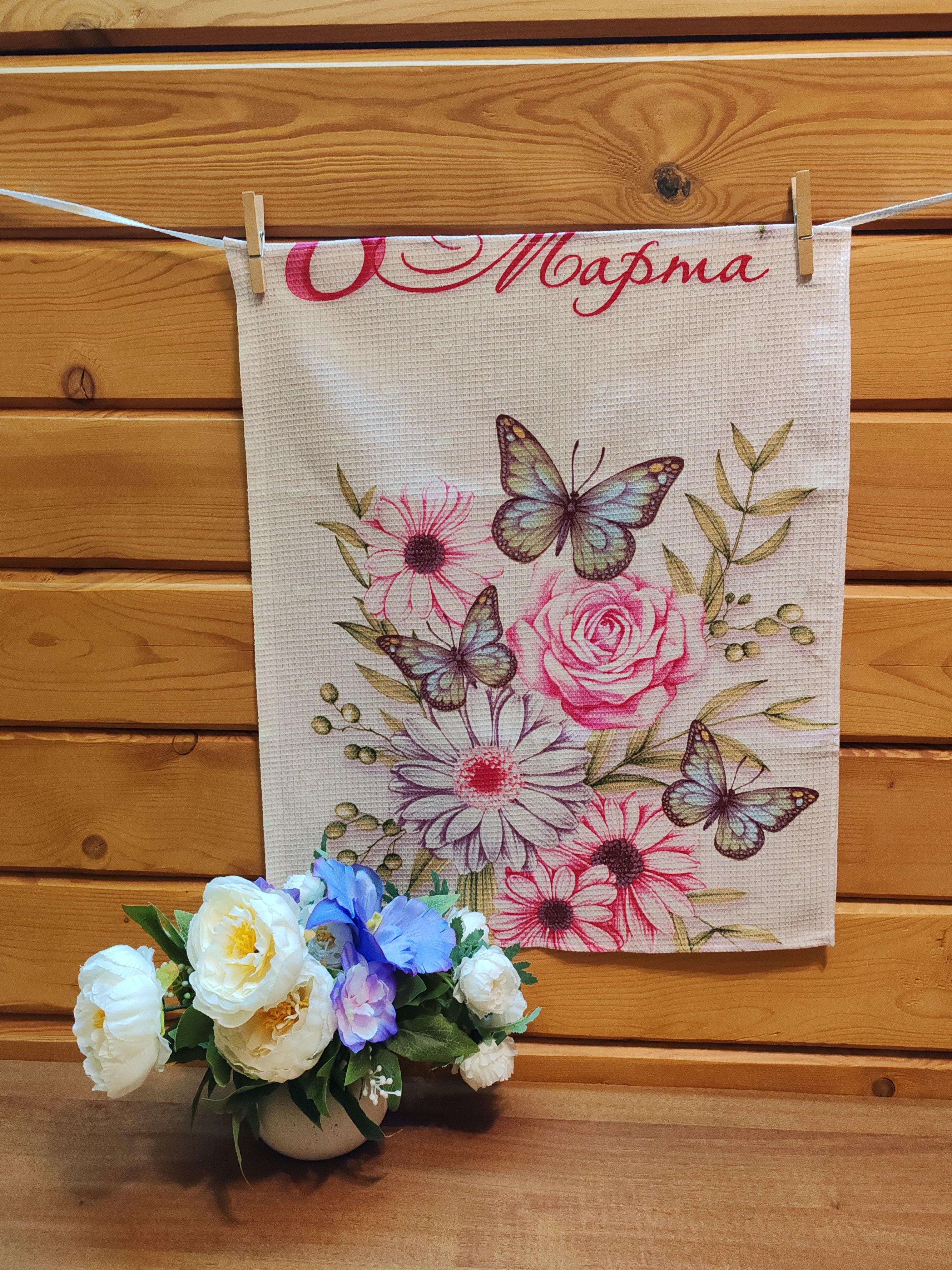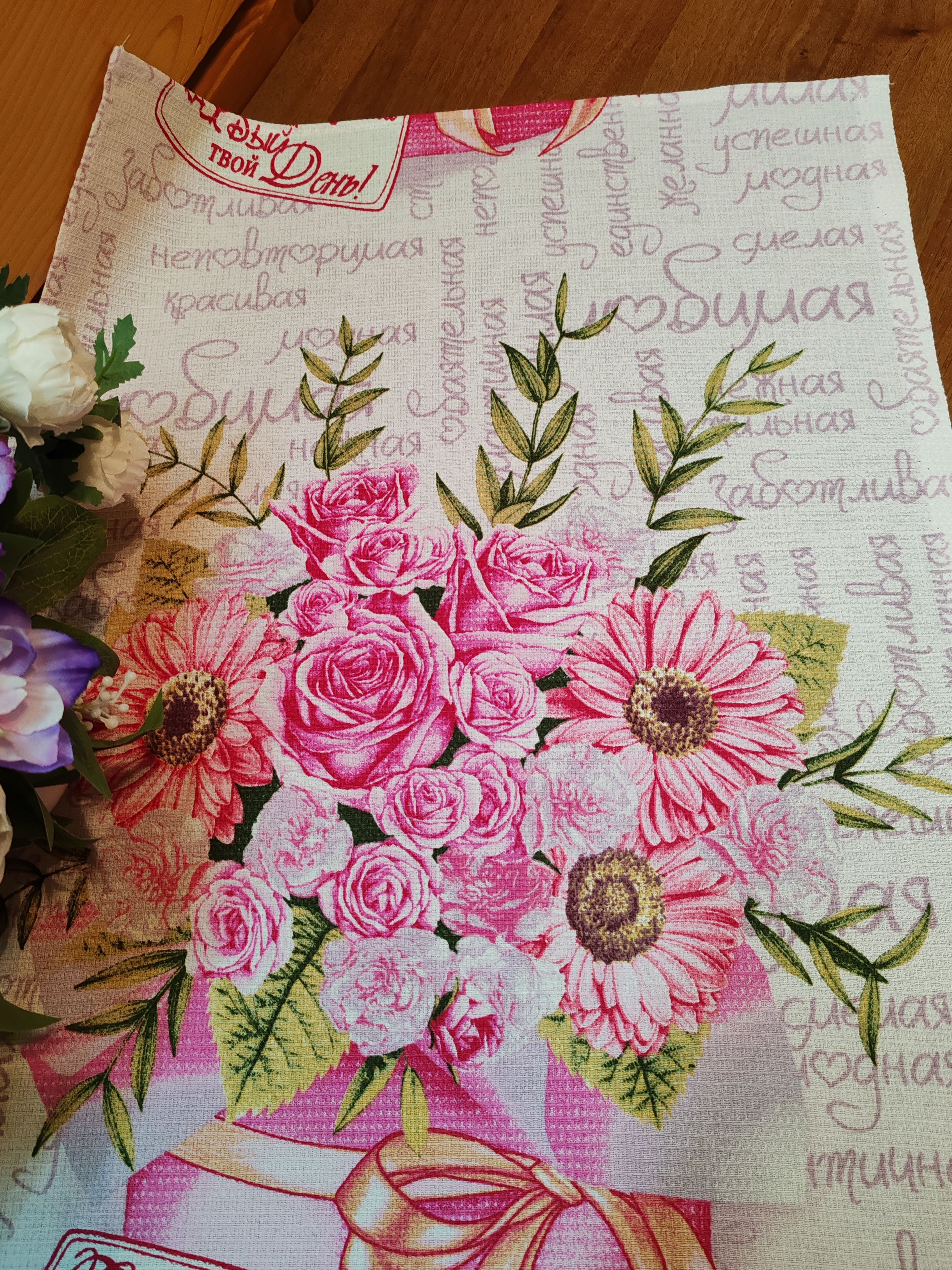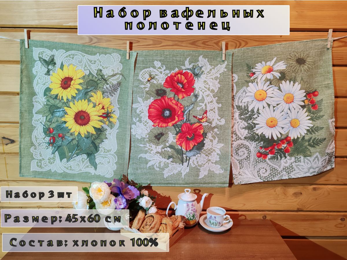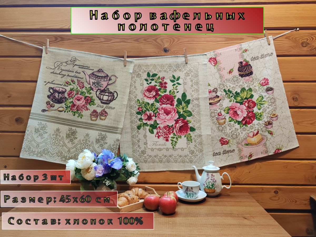 165 / белый / 8 марта / Цветы / 200 / Вафельное полотно / Набор полотенец для кухни, вафельное полотно, размер 45х60, 3 штуки в упаковке. / Ивановский текстиль / 45x60 / Прямоугольник / 3 / Вафельная / Универсальный