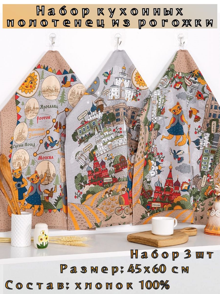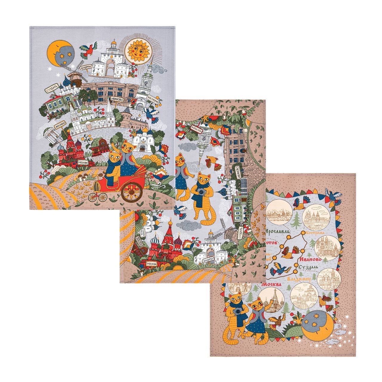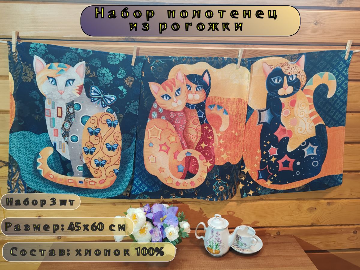 165 / разноцветный / Золотое кольцо / Кот, котёнок / 200 / Рогожка / Набор полотенец для кухни из рогожки, размер 45х60, 3 штуки в упаковке. / Ивановский текстиль / 45x60 / Прямоугольник / 3 / Рогожка / Универсальный