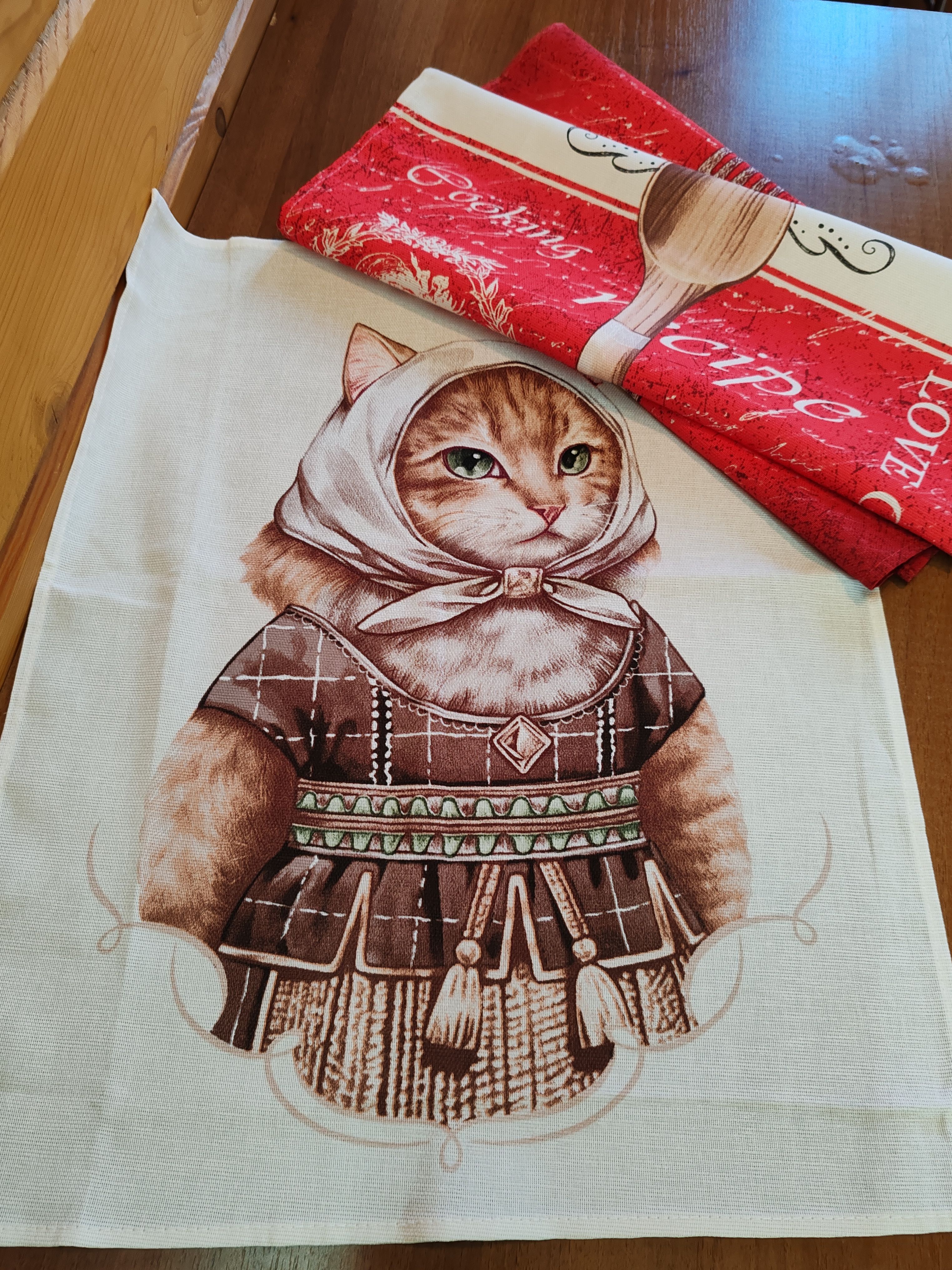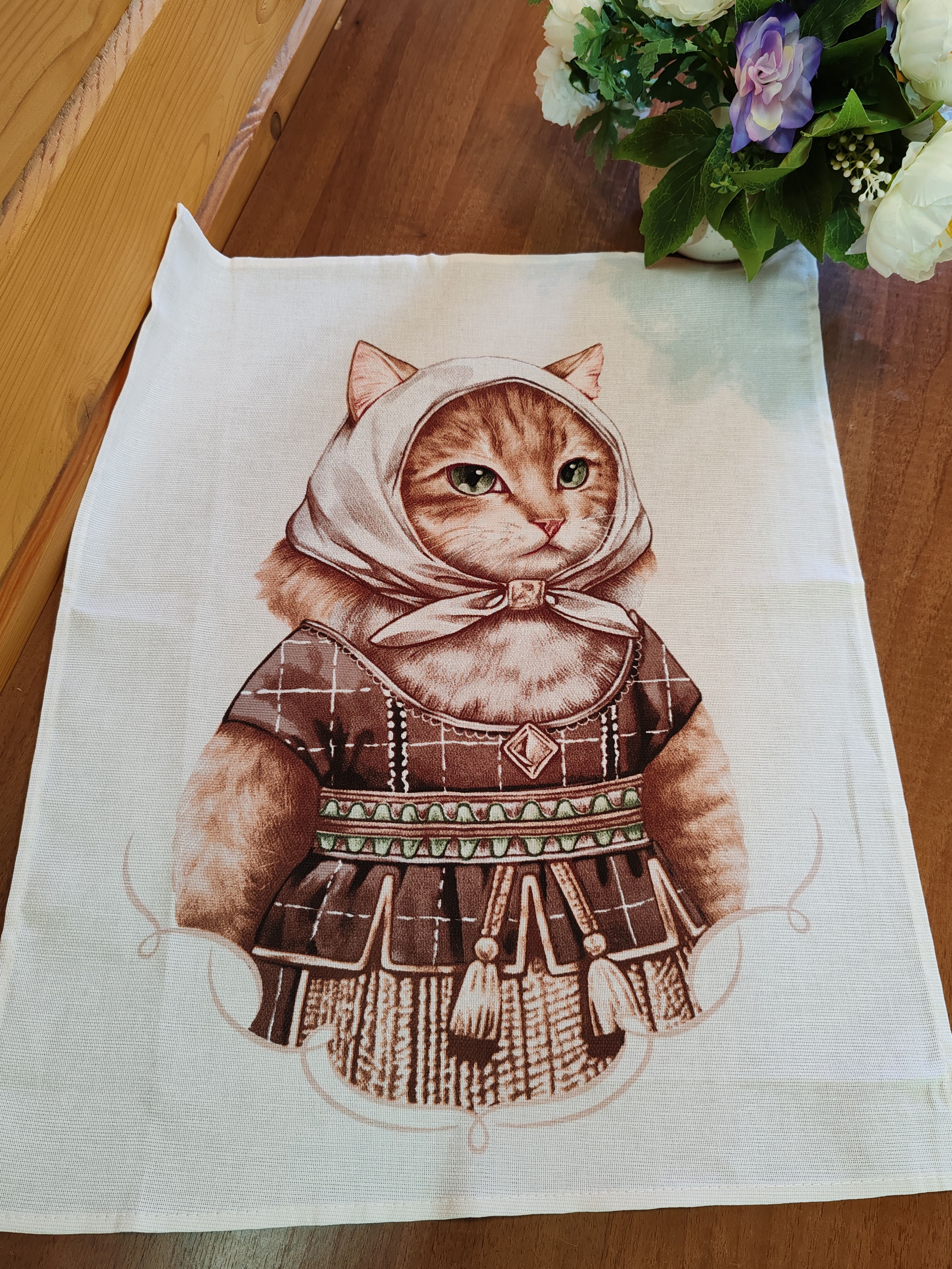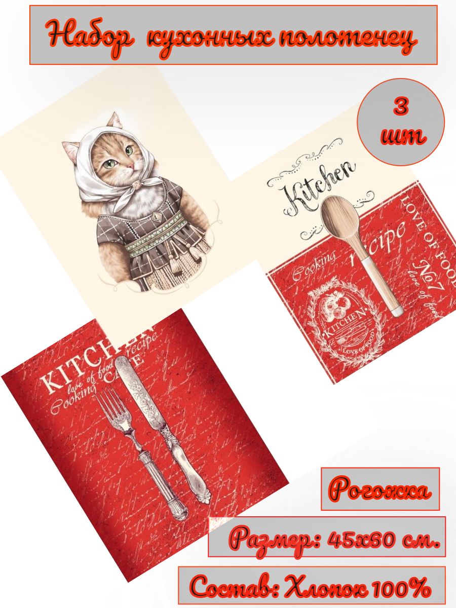 165 / бежевый / Мурлыкающий кот / Кот, котёнок / 200 / Рогожка / Набор полотенец для кухни из рогожки, размер 45х60, 3 штуки в упаковке. / Ивановский текстиль / 45x60 / Прямоугольник / 3 / Рогожка / Универсальный