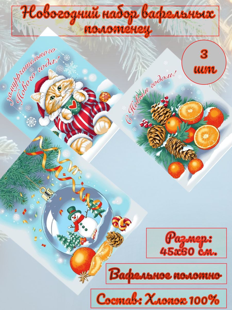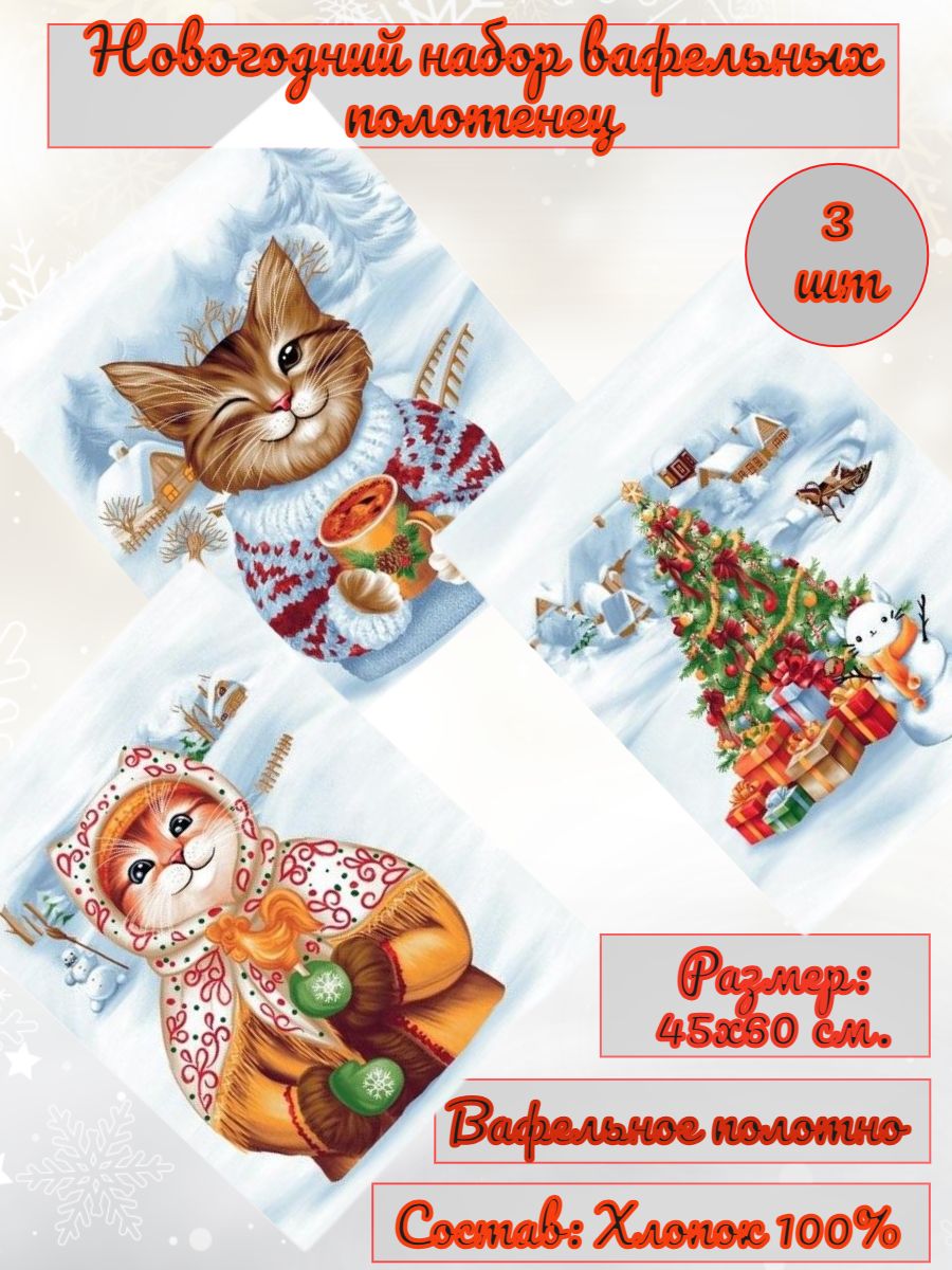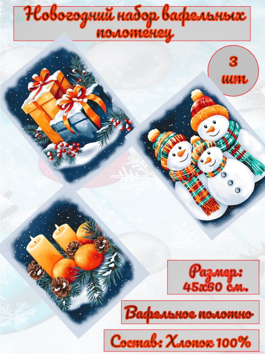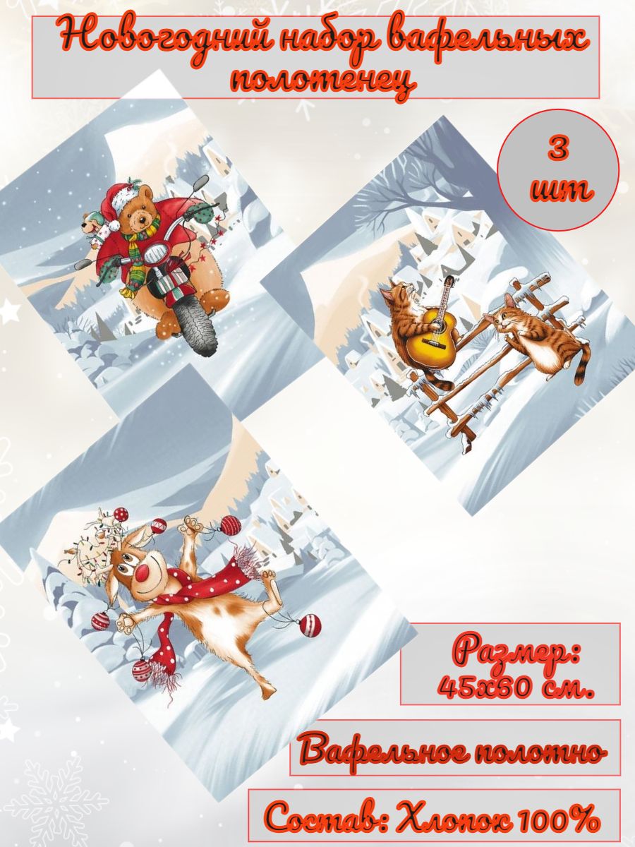 125 / красный / Сказочные истории / Новогодний / 160 / Вафельное полотно / Набор полотенец, вафельное полотно, размер 45х60, 3 штуки в упаковке. / Новогодний текстиль / 45x60 / Прямоугольник / 3 / Вафельная / Новый год