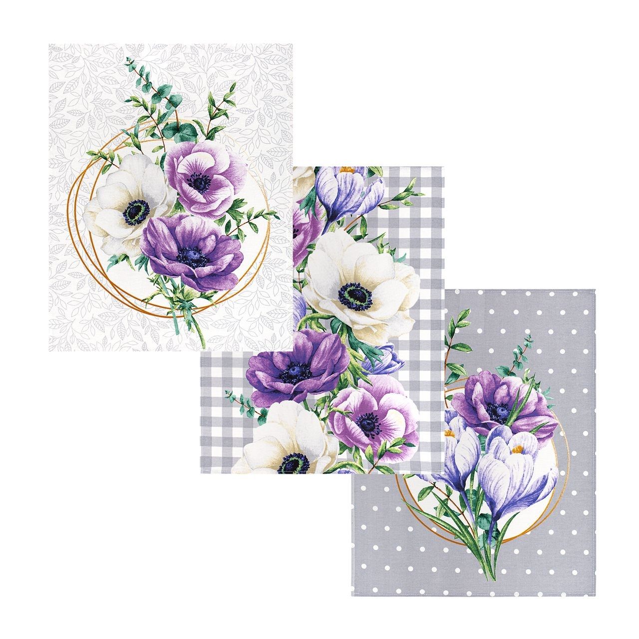 165 / серый / Аромат / Цветы / 200 / Рогожка / Набор полотенец для кухни из рогожки, размер 45х60, 3 штуки в упаковке. / Ивановский текстиль / 45x60 / Прямоугольник / 3 / Рогожка / Универсальный