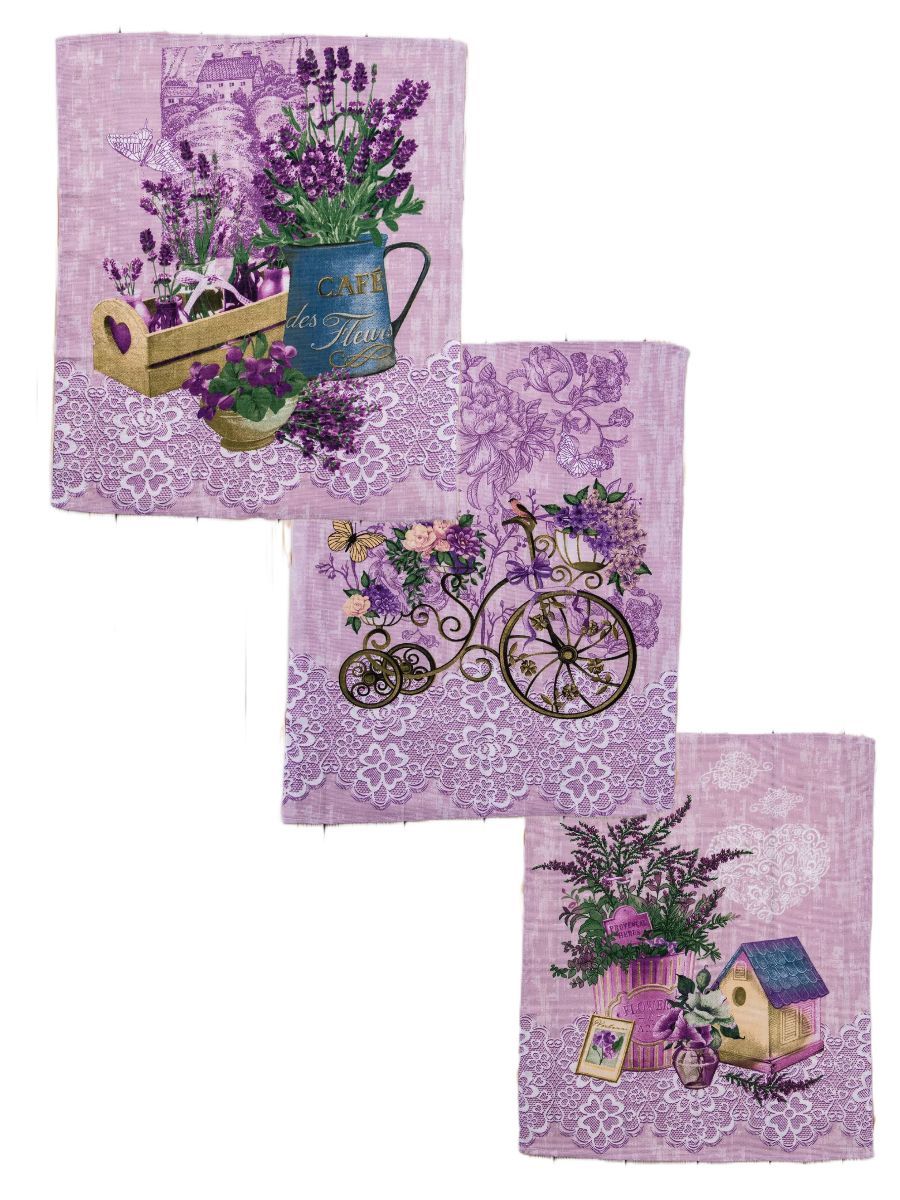 165 / фиолетовый / Лавандовый прованс / Цветы / 200 / Рогожка / Набор полотенец для кухни из рогожки, размер 45х60, 3 штуки в упаковке. / Ивановский текстиль / 45x60 / Прямоугольник / 3 / Рогожка / Универсальный