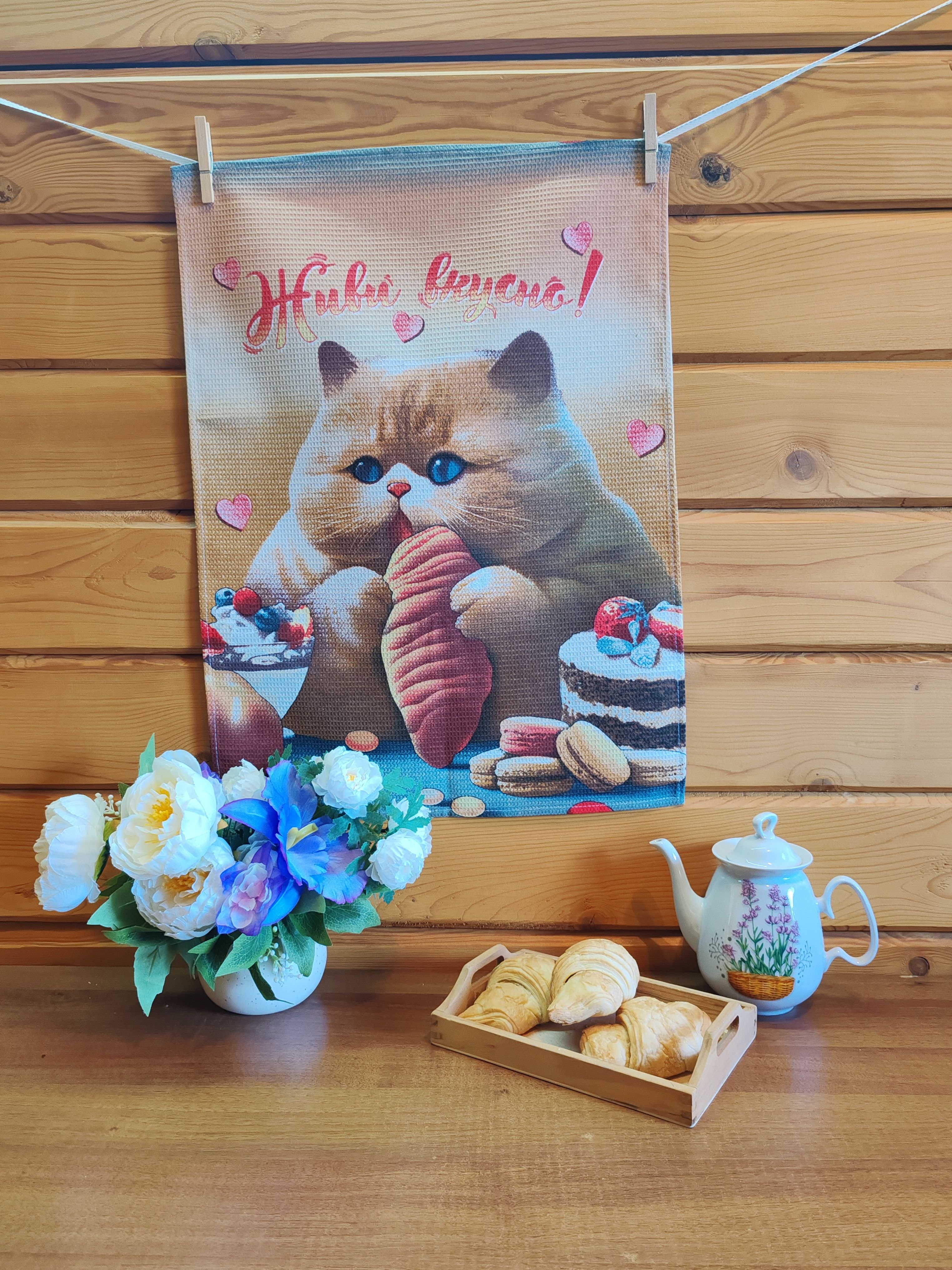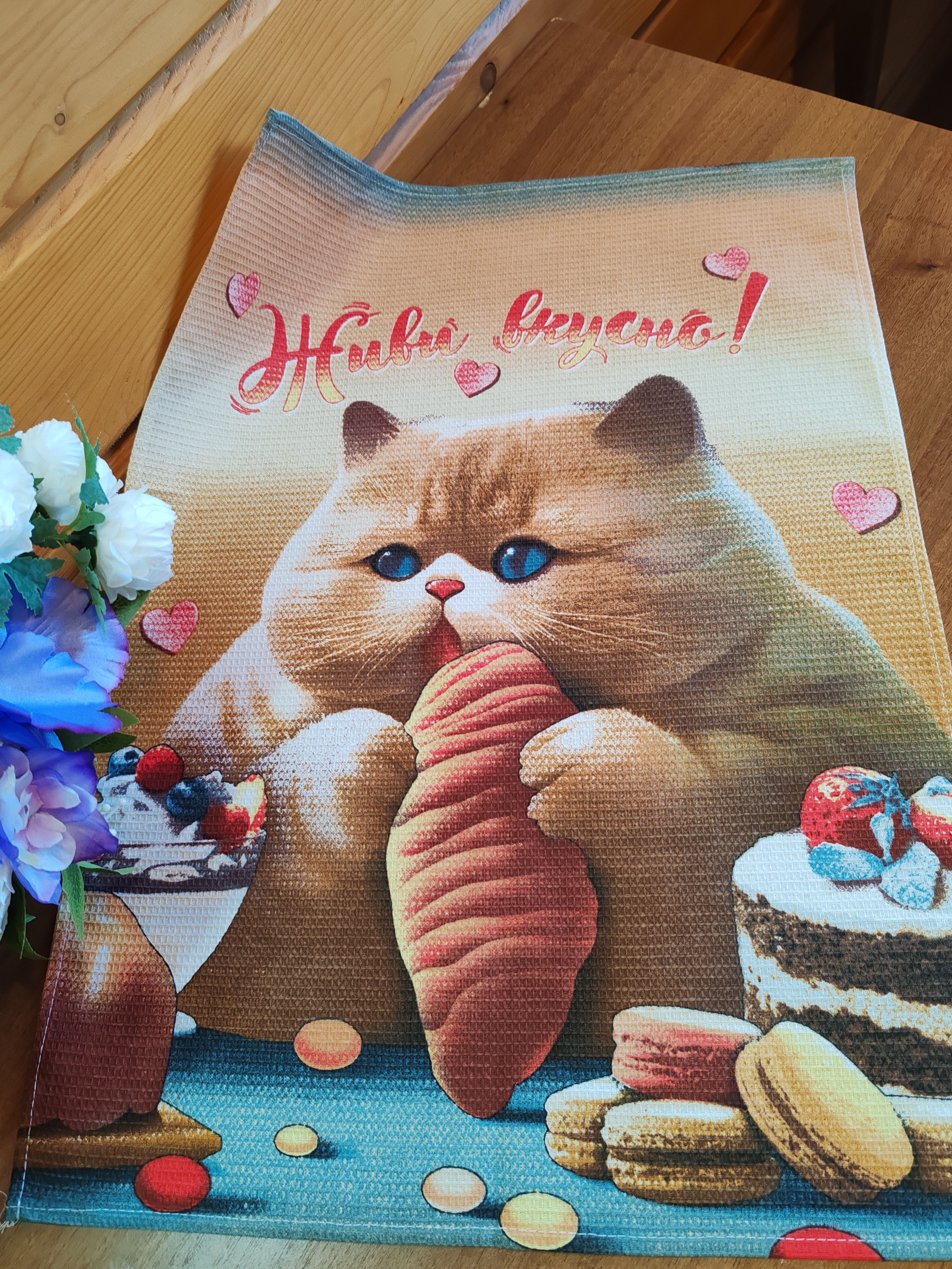 165 / желтый / Коты оптимисты / Кот, котёнок / 150 / Вафельное полотно / Подарочный набор полотенец для кухни из вафельного полотна, размер 45х60, 2 штуки в упаковке. / Текстиль / 45x60 / Прямоугольник / 2 / Вафельная / Универсальный