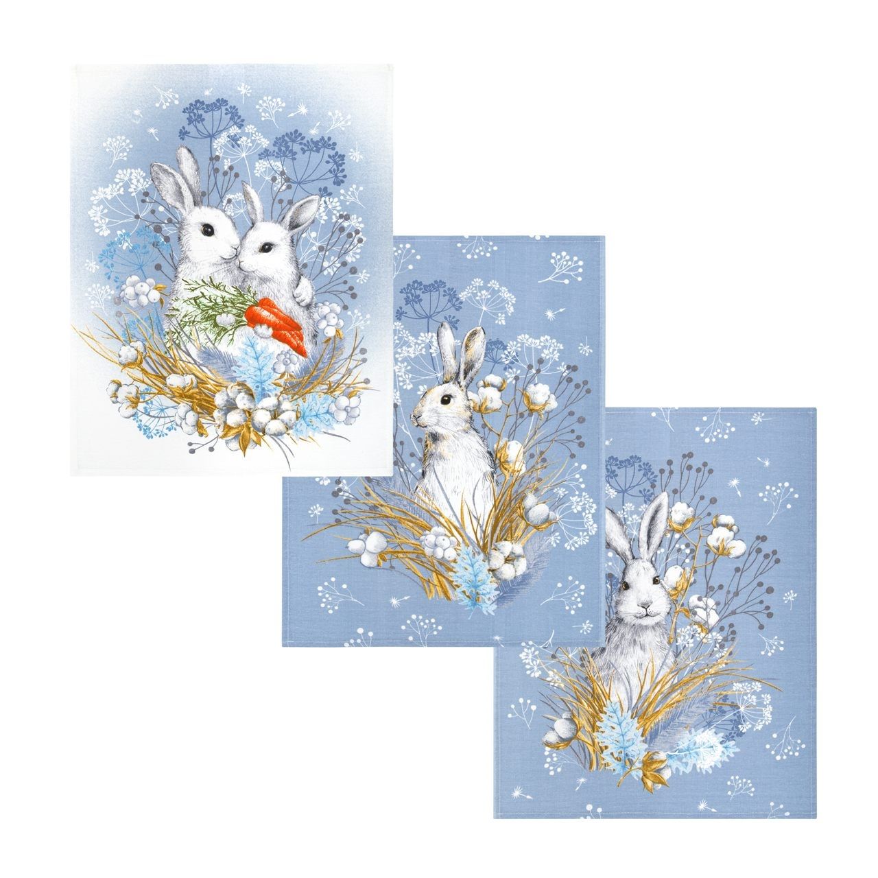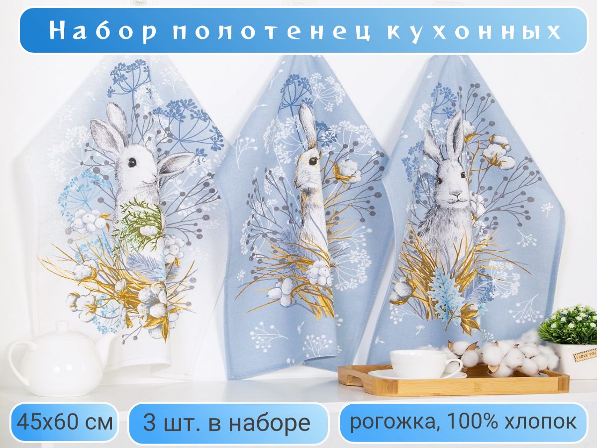 165 / голубой / Роджер / Кролики / 200 / Рогожка / Набор полотенец для кухни из рогожки, размер 45х60, 3 штуки в упаковке. / Ивановский текстиль / 45x60 / Прямоугольник / 3 / Рогожка / Универсальный