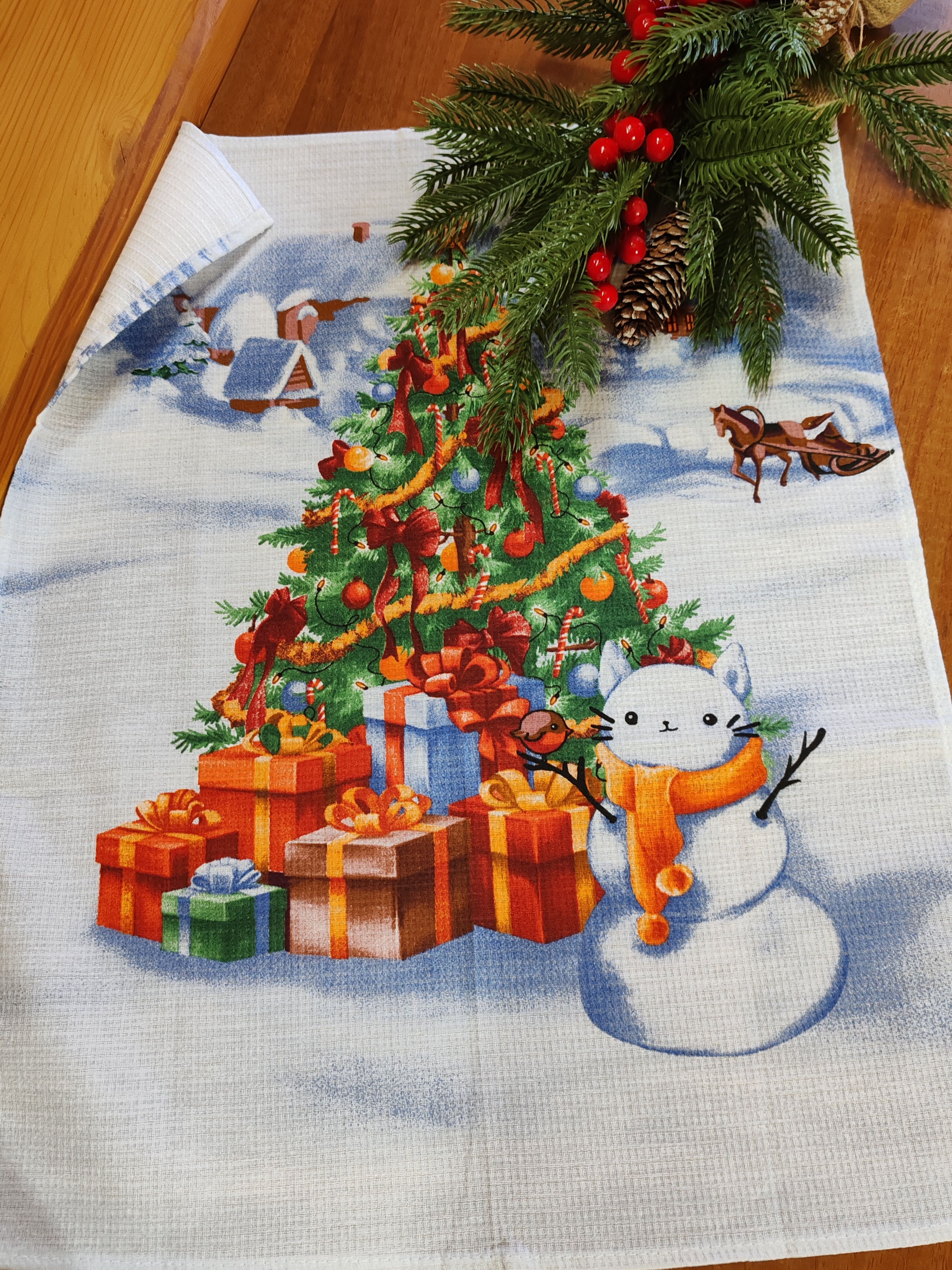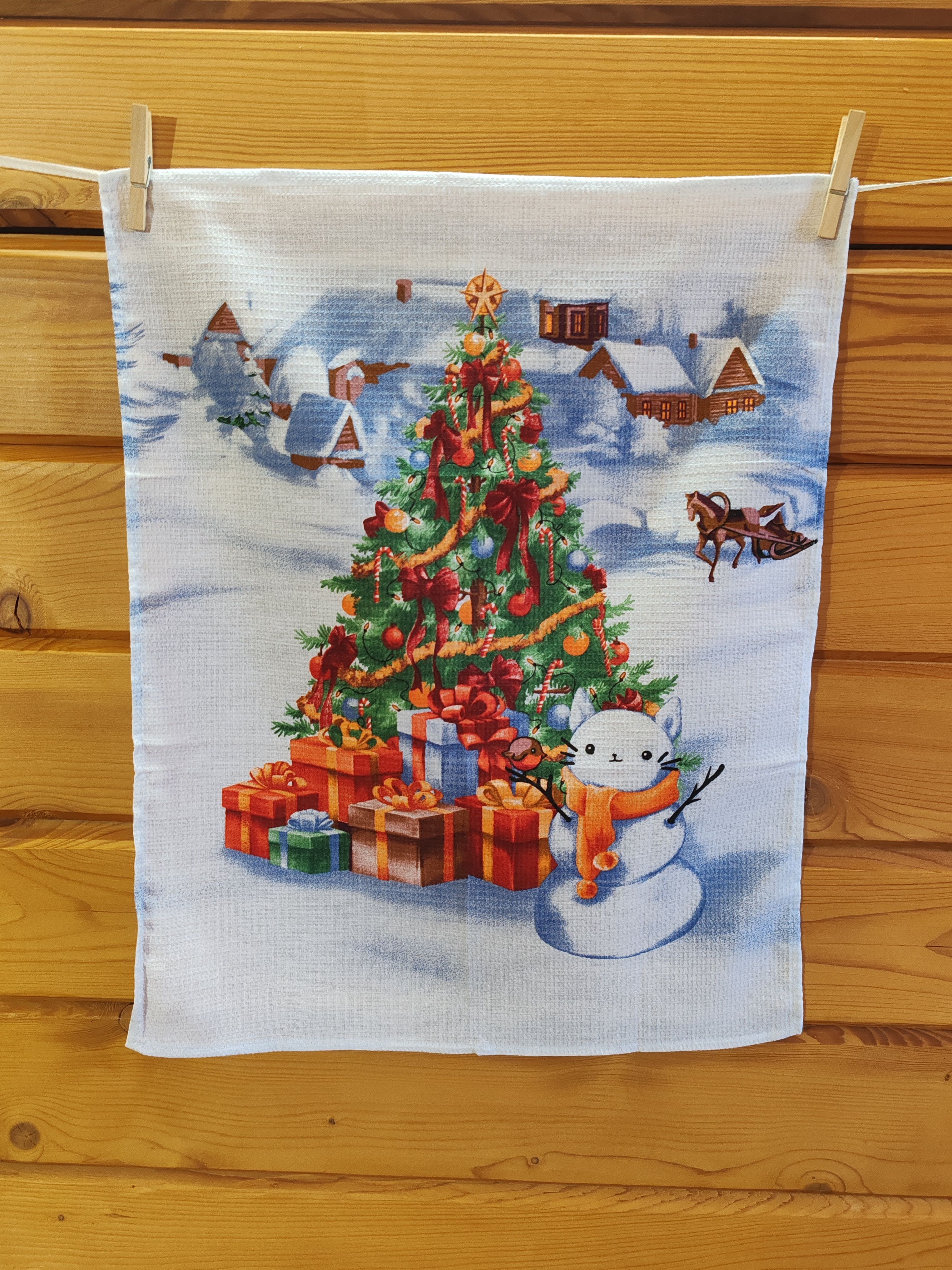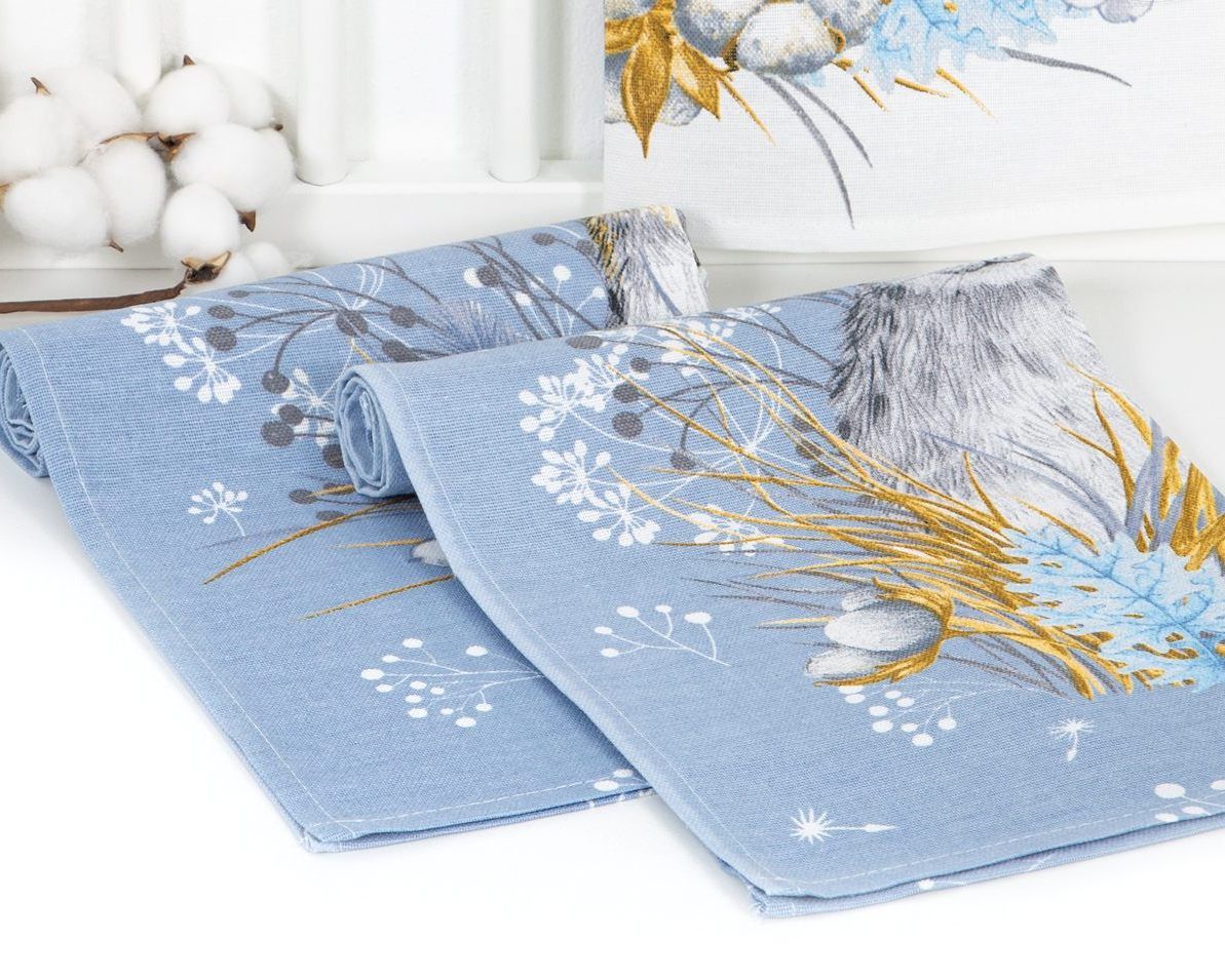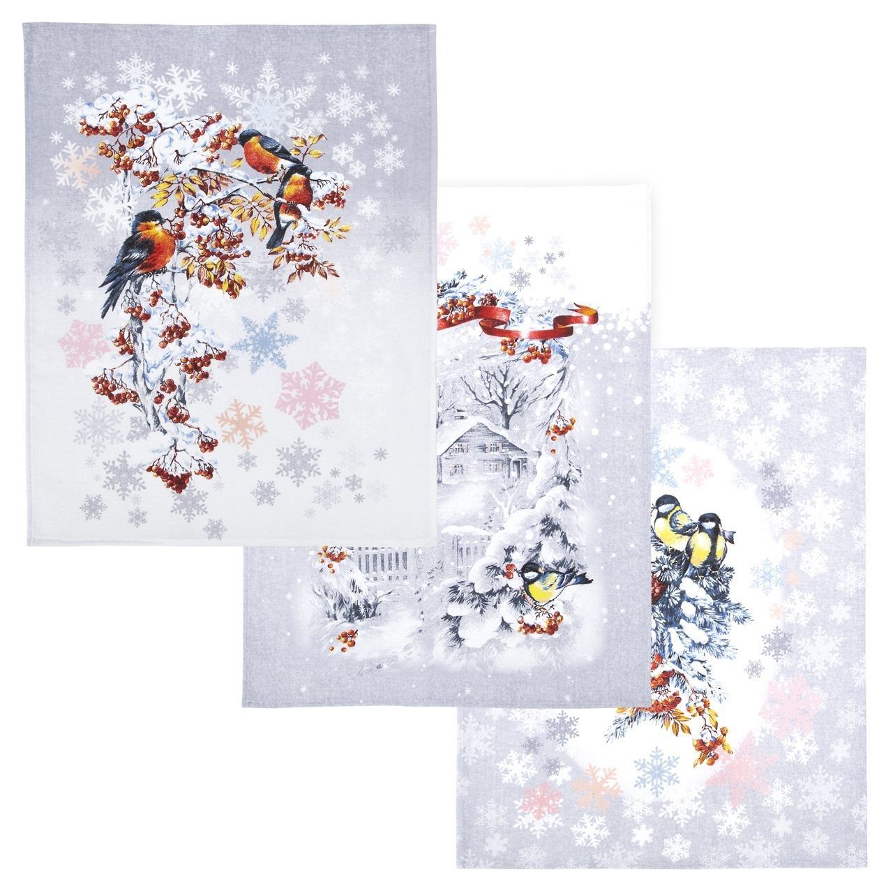 160 / голубой / Зимний день / Новогодний / 200 / Вафельное полотно / Новогодний набор полотенец для кухни из рогожки, размер 45х60, 3 штуки в упаковке. / Новогодний текстиль / 45x60 / Прямоугольник / 3 / Вафельная / Новый год