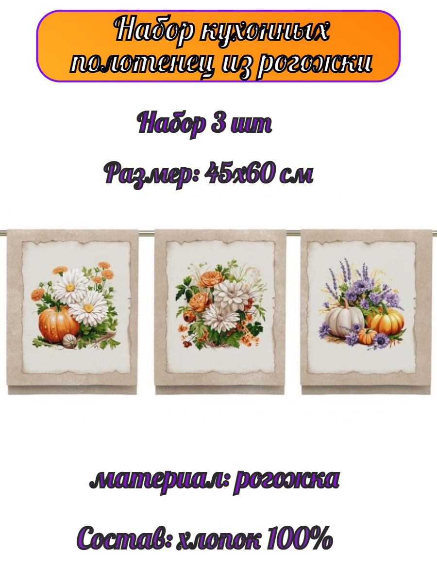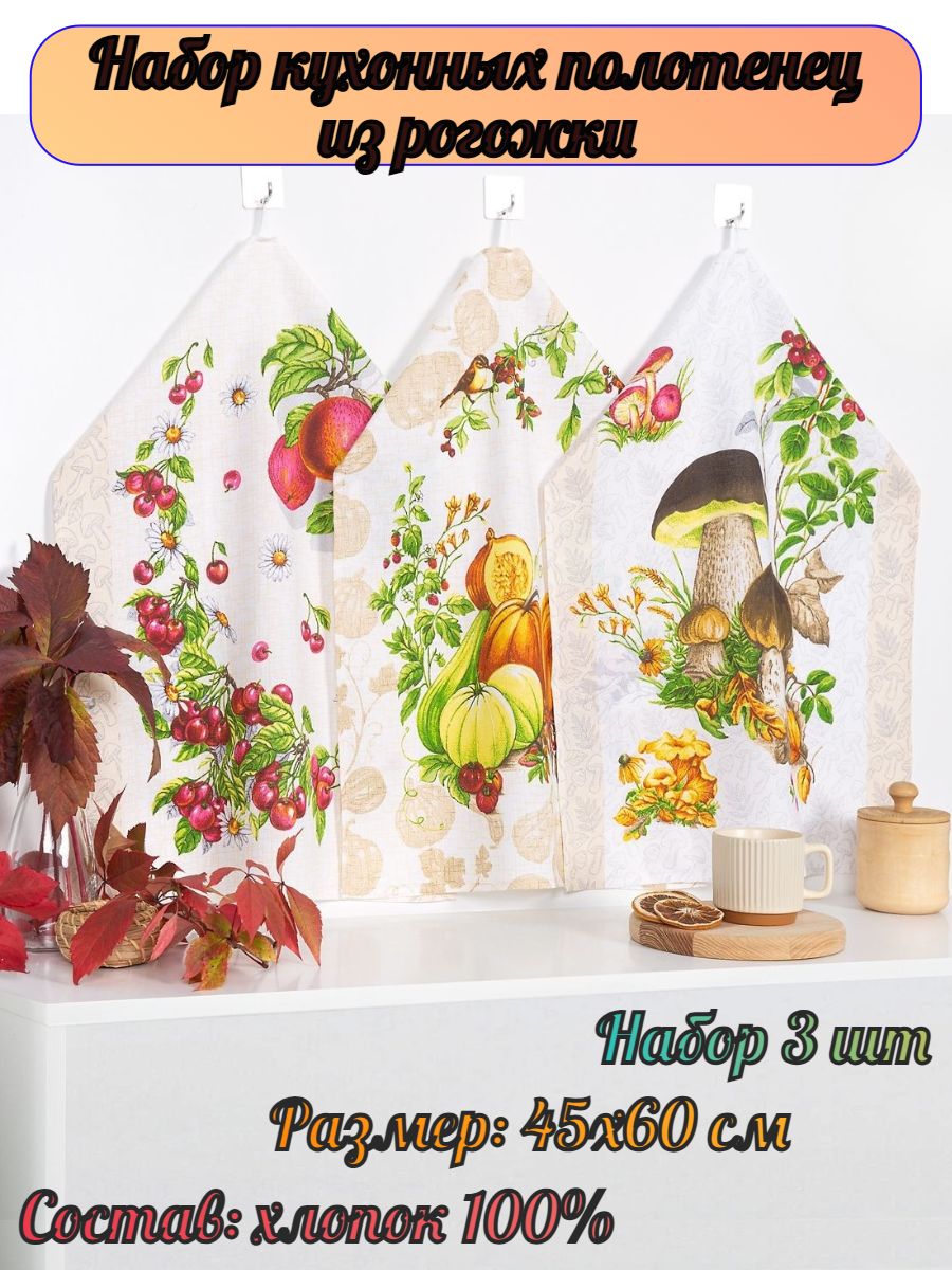 165 / белый / Осенние дары / Растения / 200 / Рогожка / Набор полотенец для кухни из рогожки, размер 45х60, 3 штуки в упаковке. / Ивановский текстиль / 45x60 / Прямоугольник / 3 / Рогожка / Универсальный