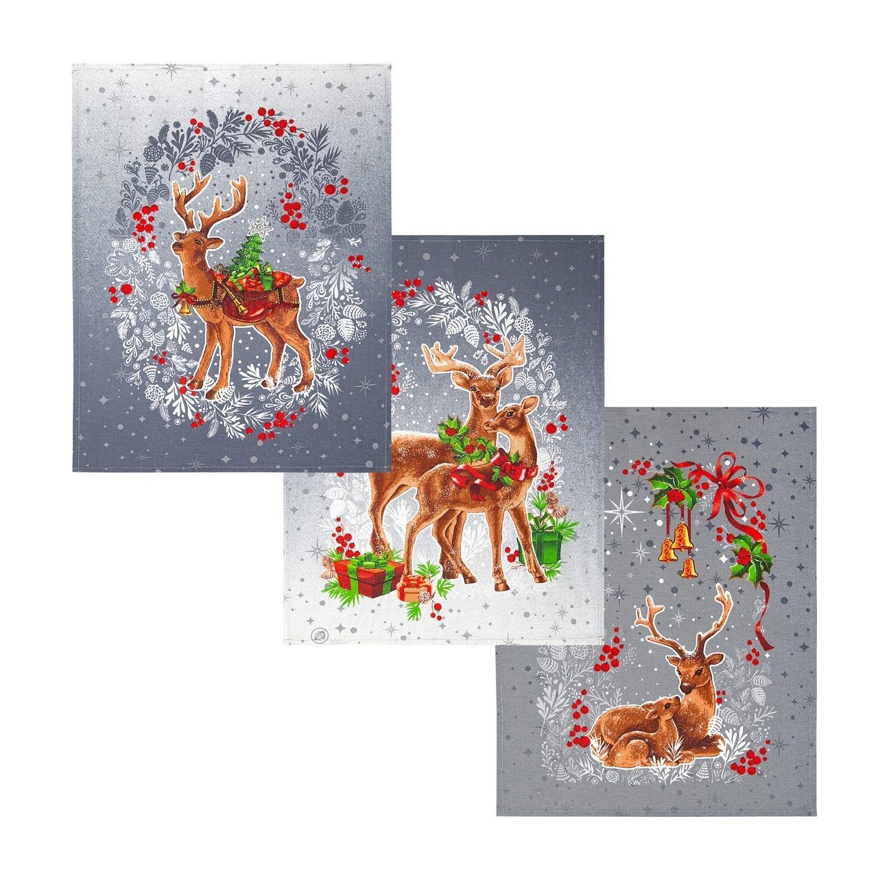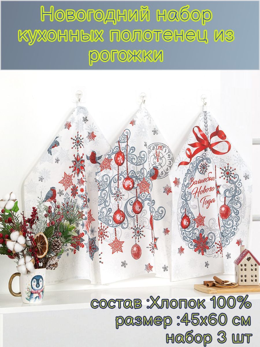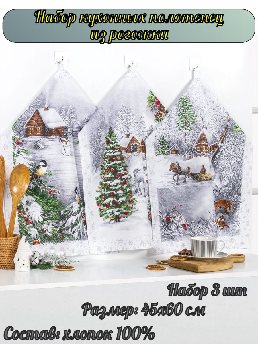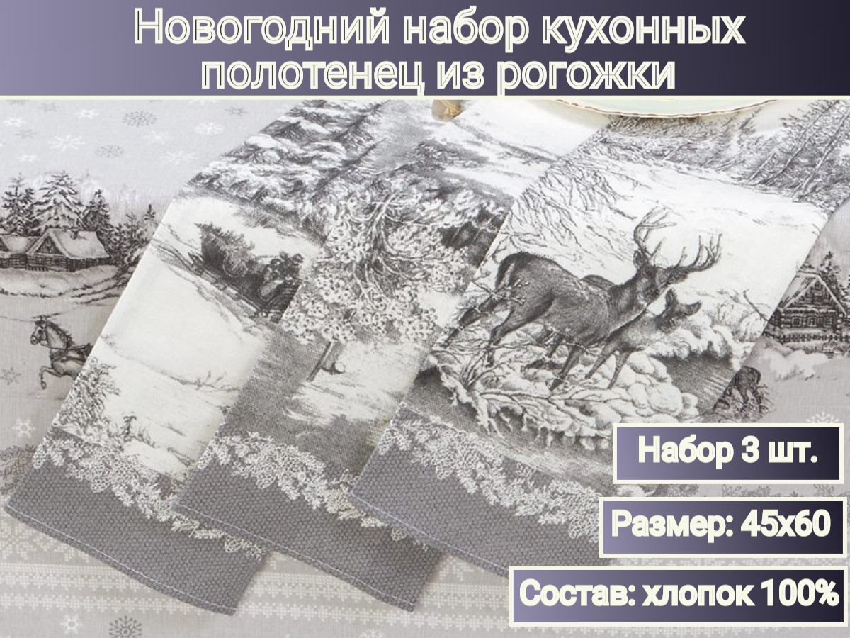 165 / серый / Сочельник / Новогодний / 200 / Рогожка / Новогодний набор полотенец для кухни из рогожки, размер 45х60, 3 штуки в упаковке. / Новогодний текстиль / 45x60 / Прямоугольник / 3 / Рогожка / Новый год