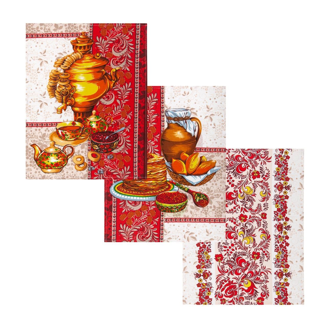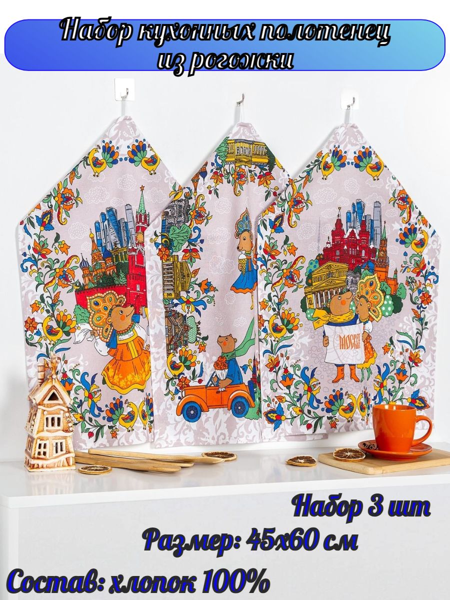 165 / белый / Матрешки / Интерьер / 200 / Рогожка / Набор полотенец для кухни из рогожки, размер 45х60, 3 штуки в упаковке. / Ивановский текстиль / 45x60 / Прямоугольник / 3 / Рогожка / Универсальный