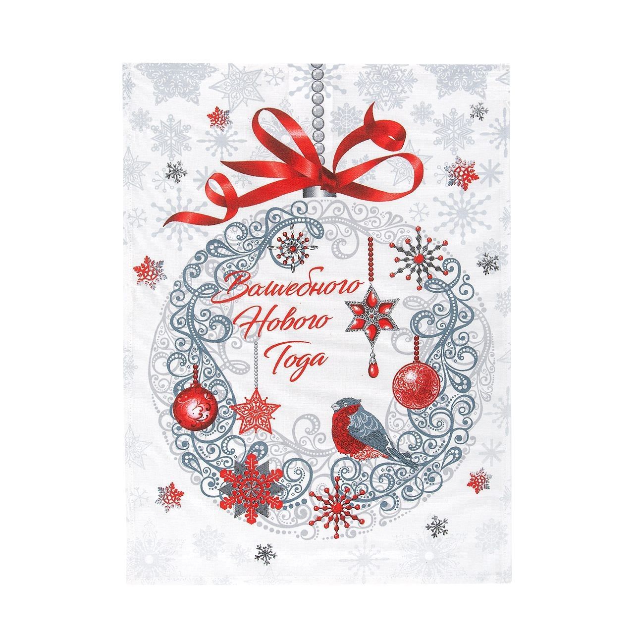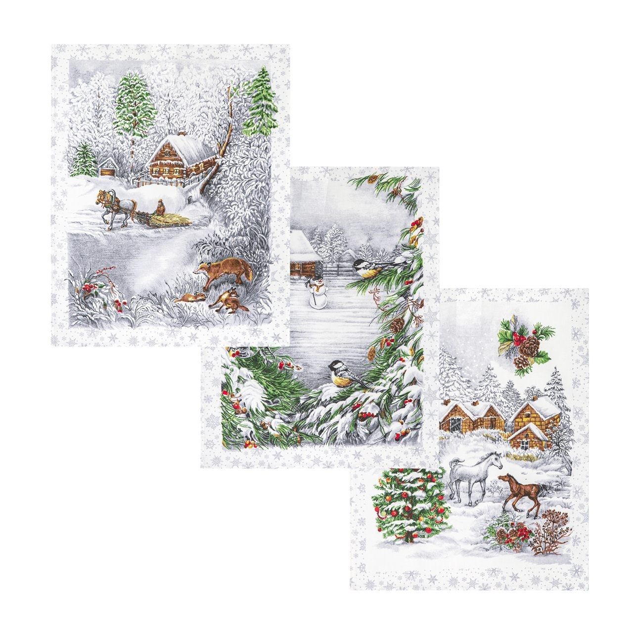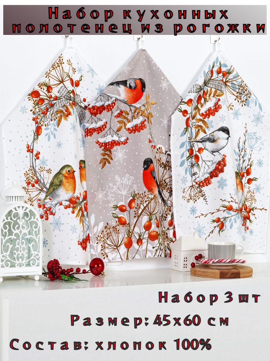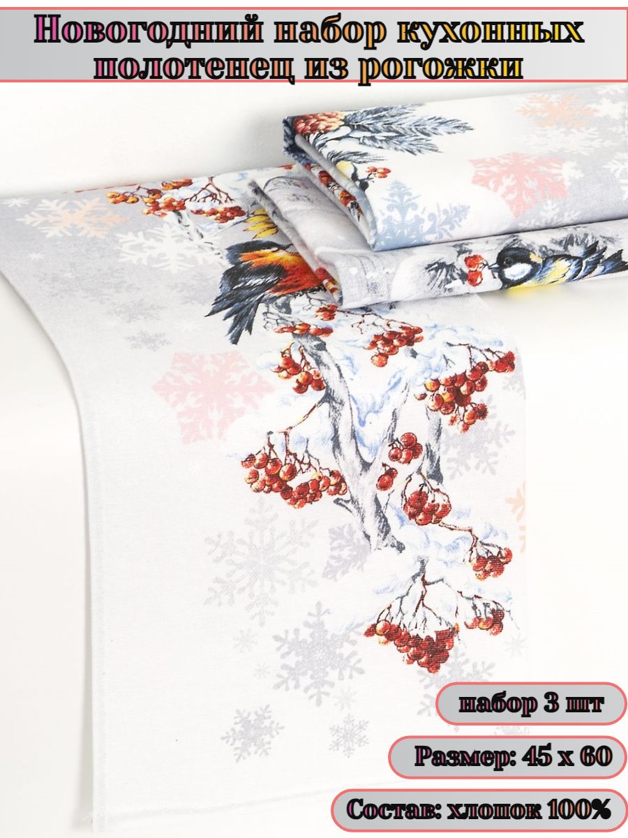 165 / белый / Ретро Новыйгод / Новогодний / 200 / Рогожка / Набор полотенец для кухни из рогожки, размер 45х60, 3 штуки в упаковке. / Ивановский текстиль / 45x60 / Прямоугольник / 3 / Рогожка / Новый год