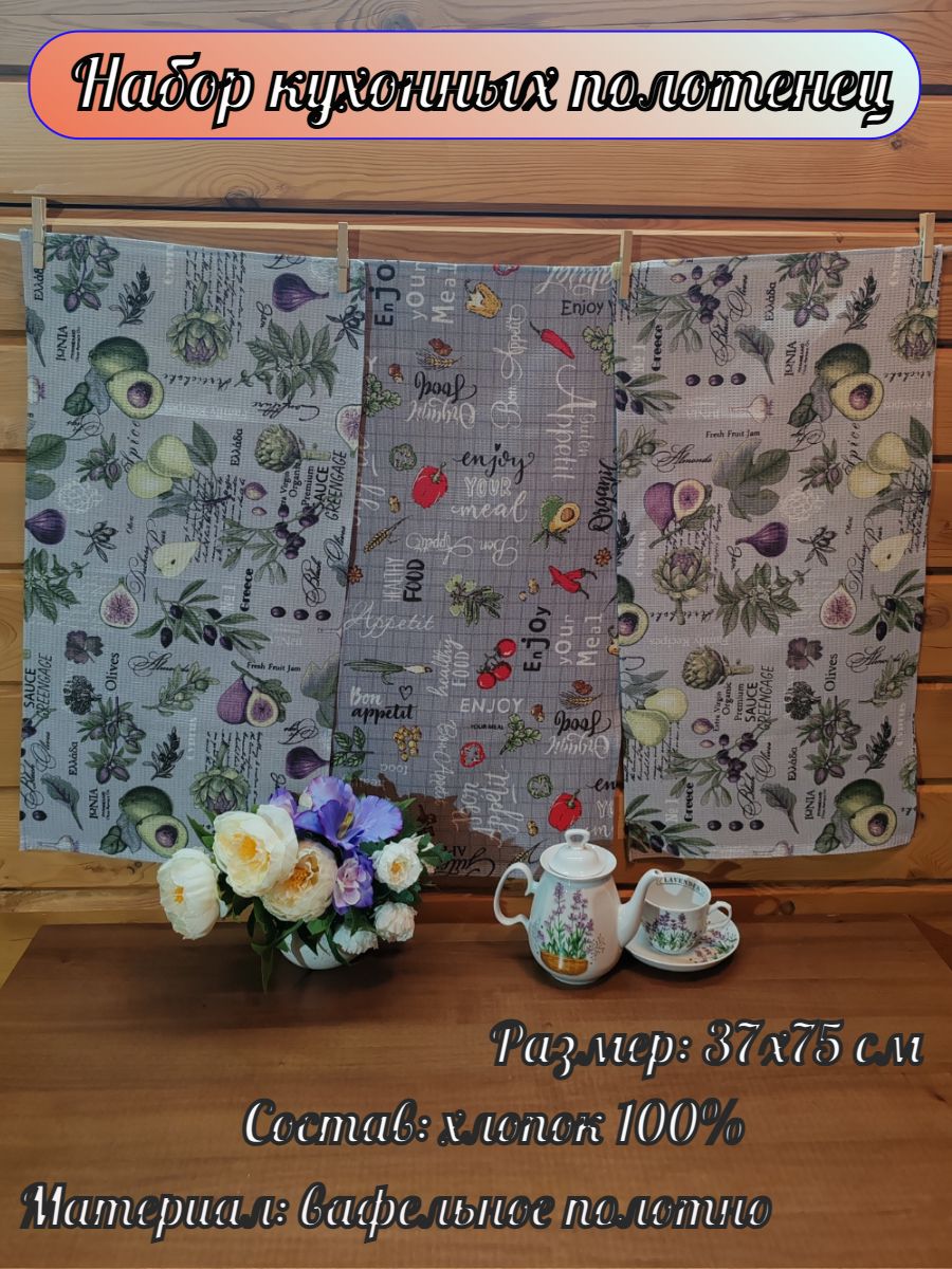 165 / серый / - / Еда и напитки / 200 / Вафельное полотно / Набор полотенец для кухни, вафельное полотно, размер 37х75, 3 штуки в упаковке. / Ивановский текстиль / 37x75 / Прямоугольник / 3 / Вафельная / Универсальный
