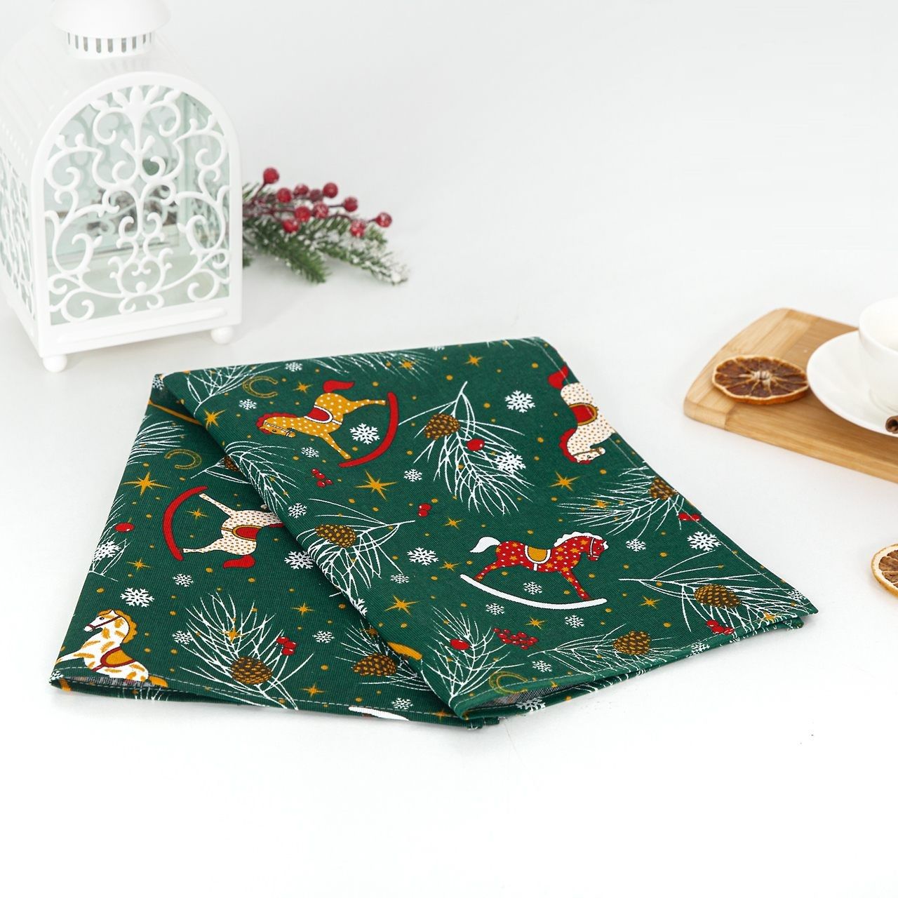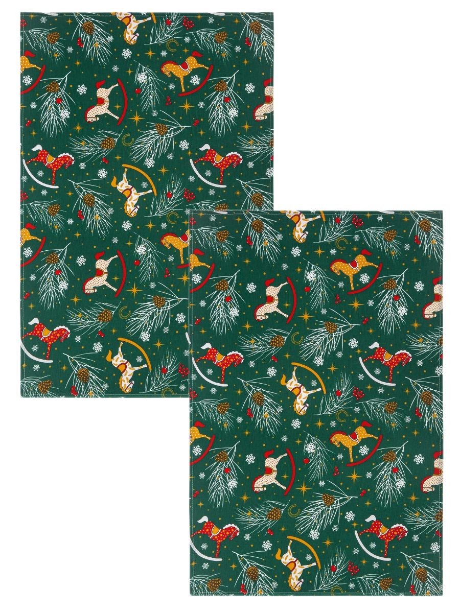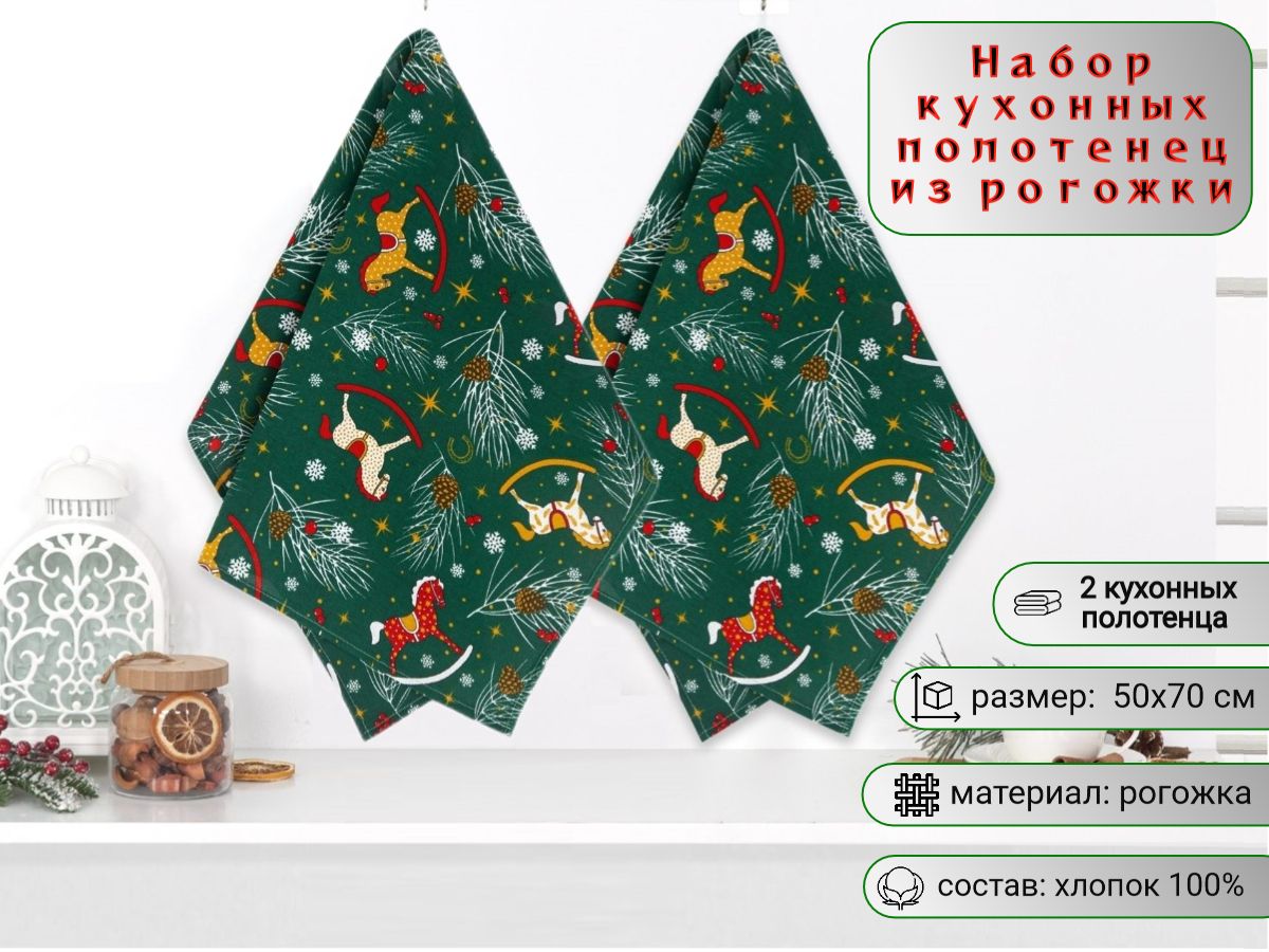 165 / зеленый / Лошдки / Лошадь / 200 / Рогожка / Набор полотенец для кухни из рогожки, размер 50х70, 2 штуки в упаковке. / Ивановский текстиль / 50x70 / Прямоугольник / 2 / Рогожка / Универсальный