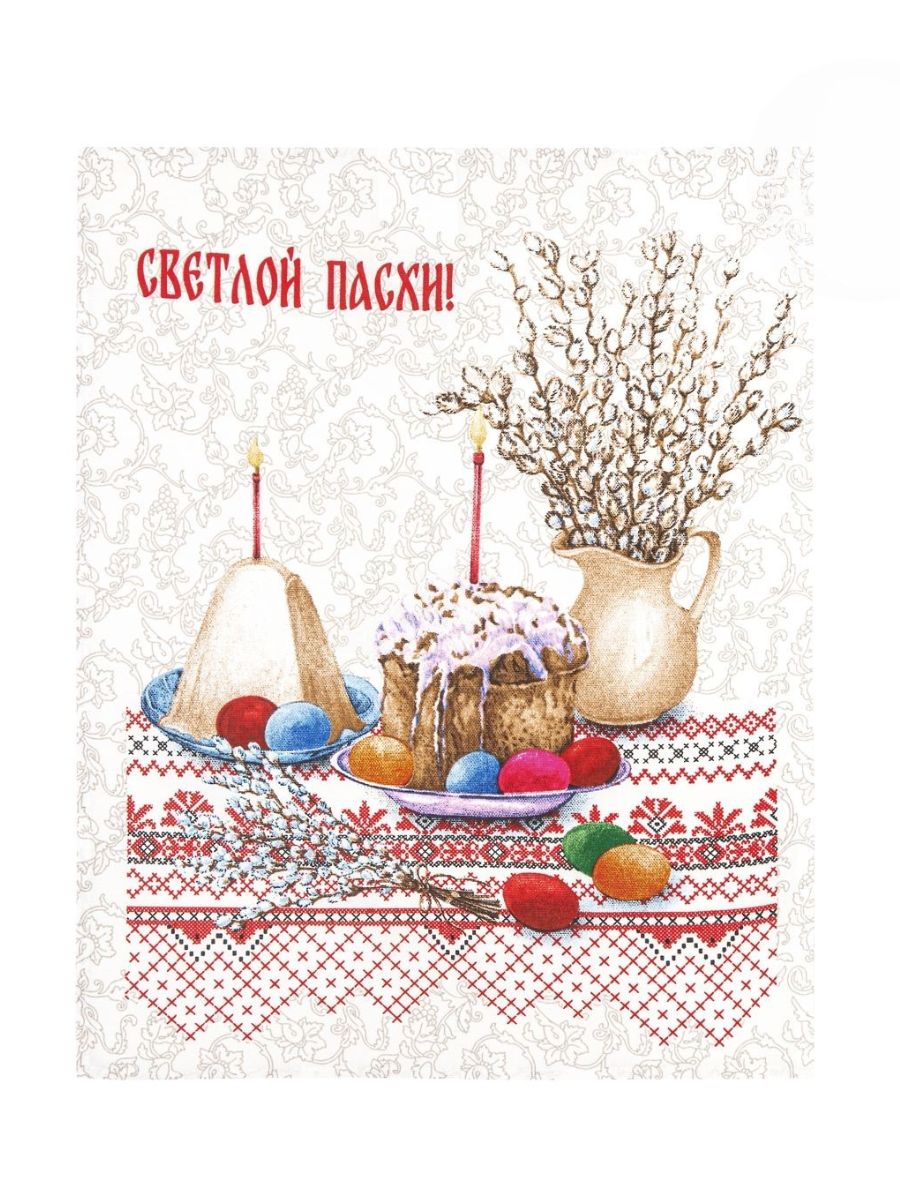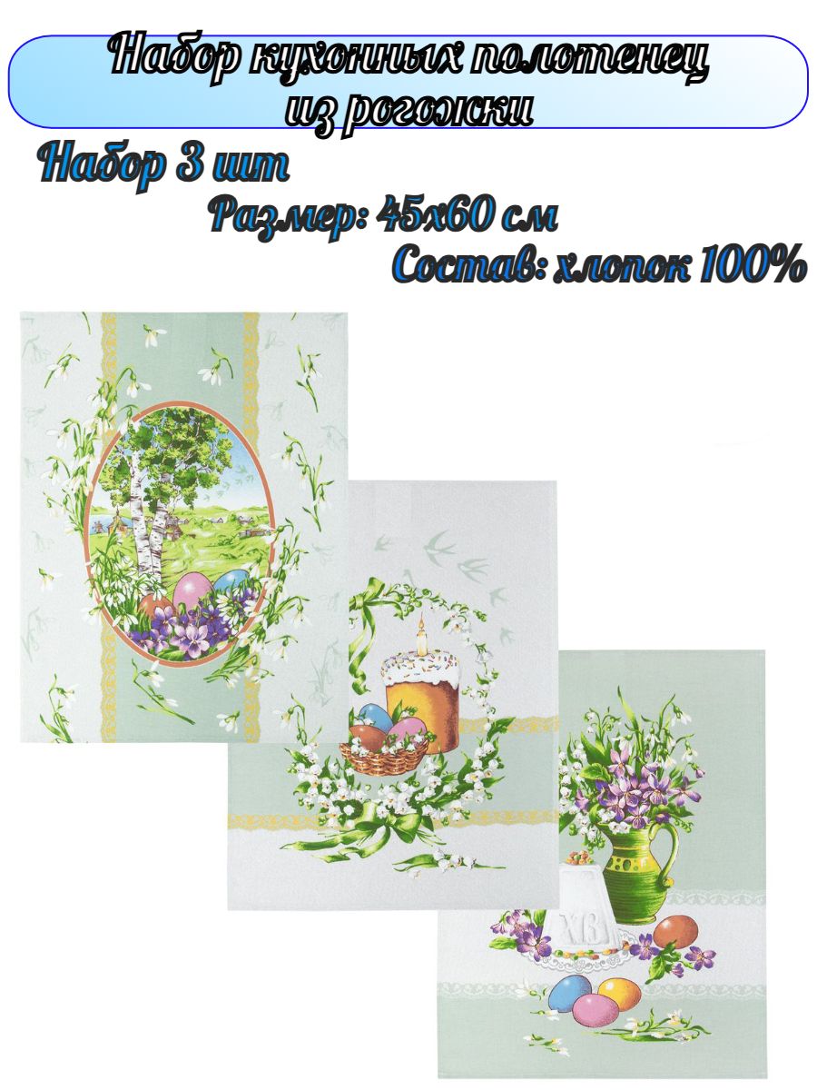 165 / белый / Снова Пасха / Цветы / 172 / Рогожка / Набор полотенец для кухни из рогожки, размер 45х60, 3 штуки в упаковке. / Ивановский текстиль / 45x60 / Прямоугольник / 3 / Рогожка / Пасха
