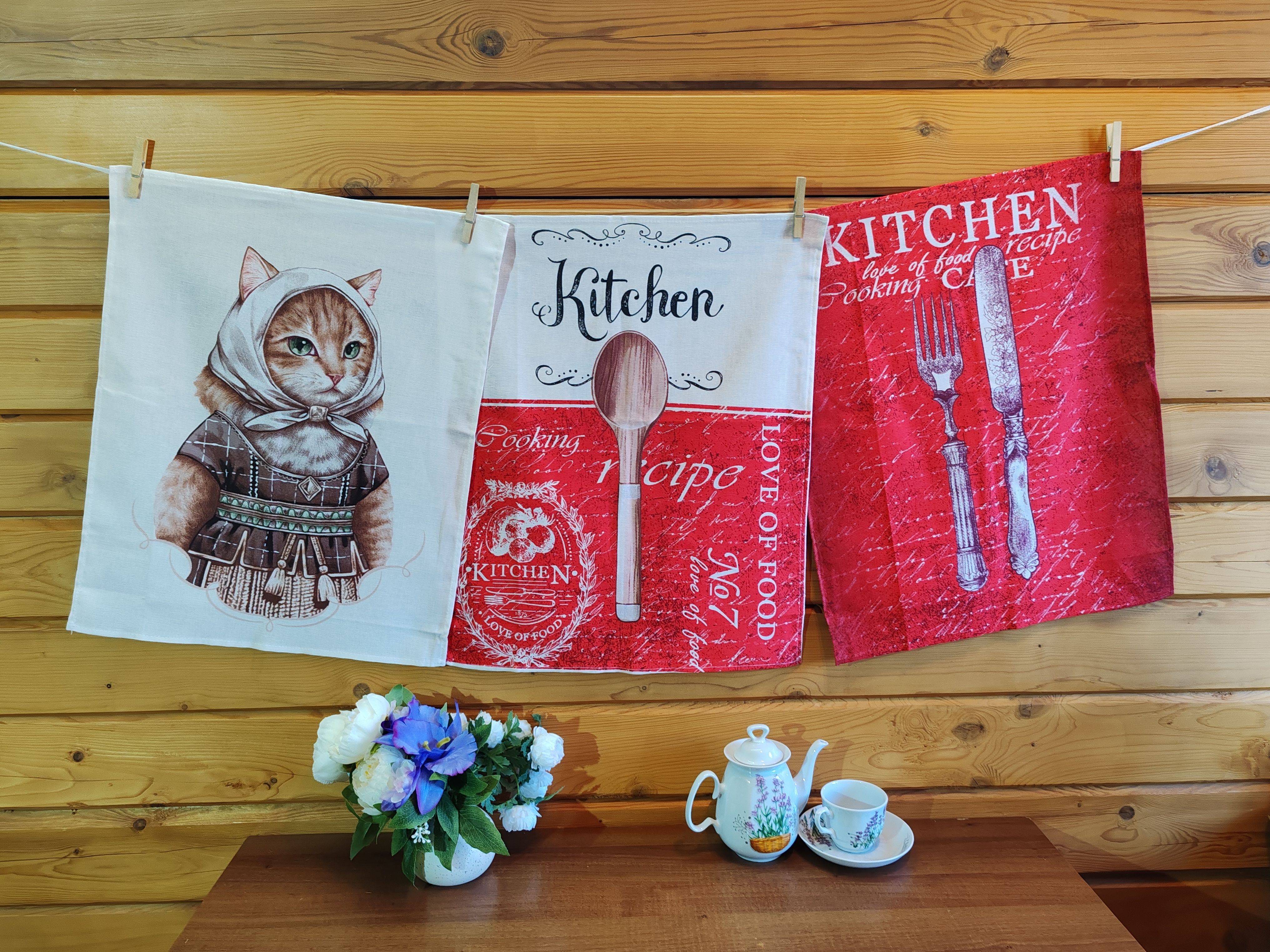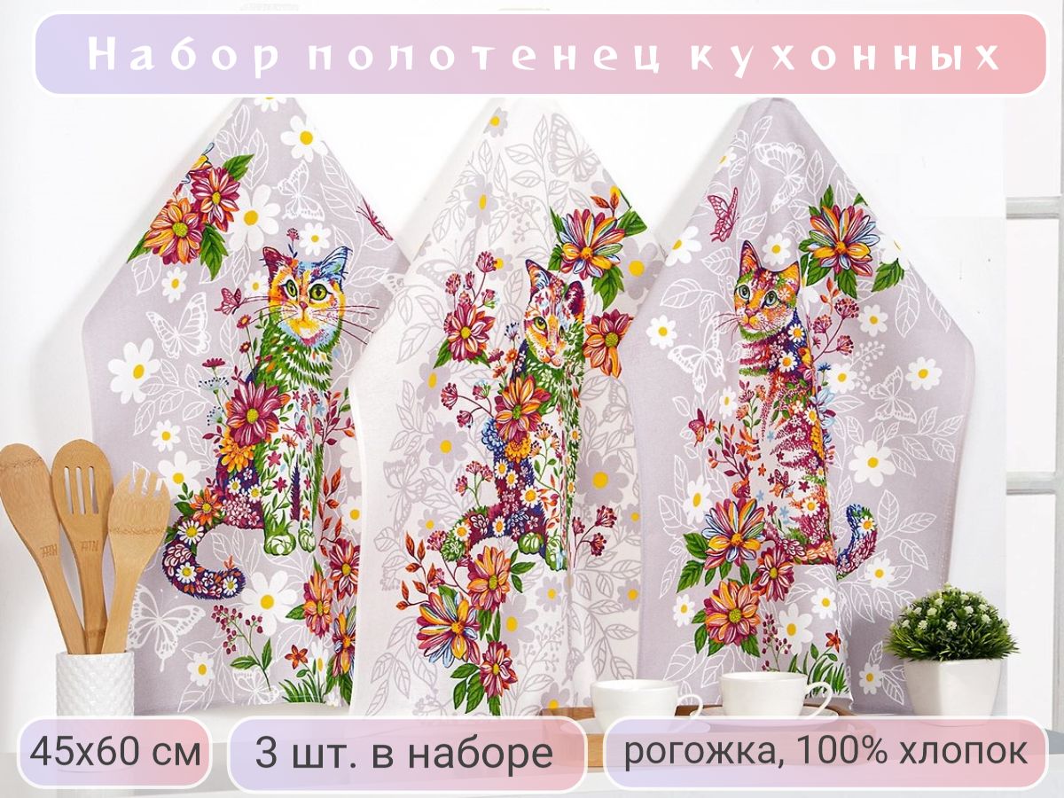 165 / разноцветный / Чудесный день / Кот, котёнок / 200 / Рогожка / Набор полотенец для кухни из рогожки, размер 45х60, 3 штуки в упаковке. / Ивановский текстиль / 45x60 / Прямоугольник / 3 / Рогожка / Универсальный