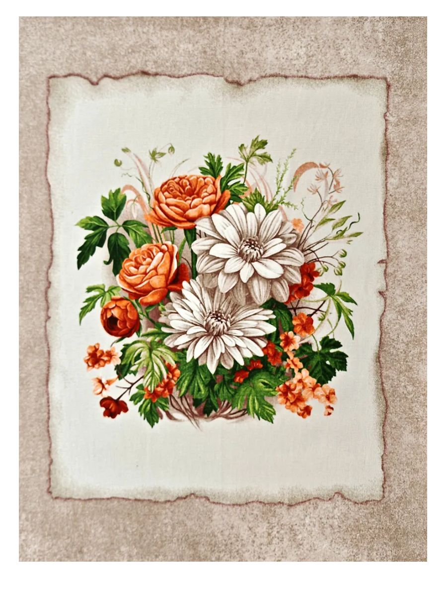 165 / коричневый / Кофн / Цветы / 200 / Рогожка / Набор полотенец для кухни из рогожки, размер 45х60, 3 штуки в упаковке. / Ивановский текстиль / 45x60 / Прямоугольник / 3 / Рогожка / Универсальный