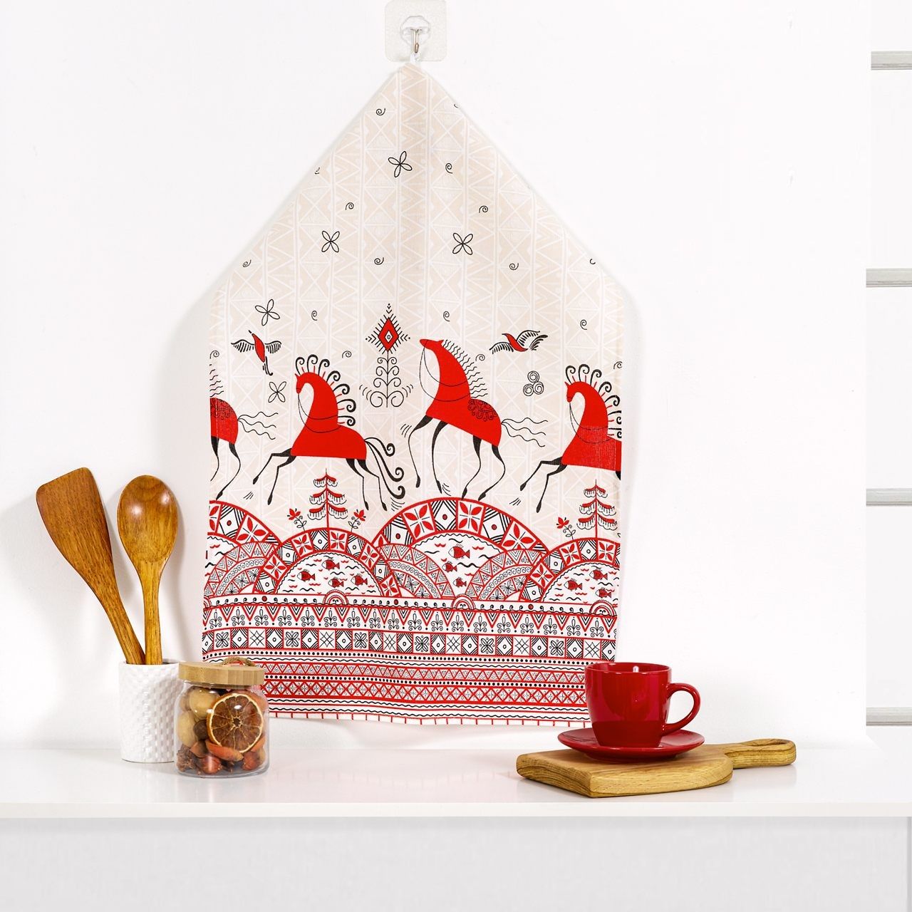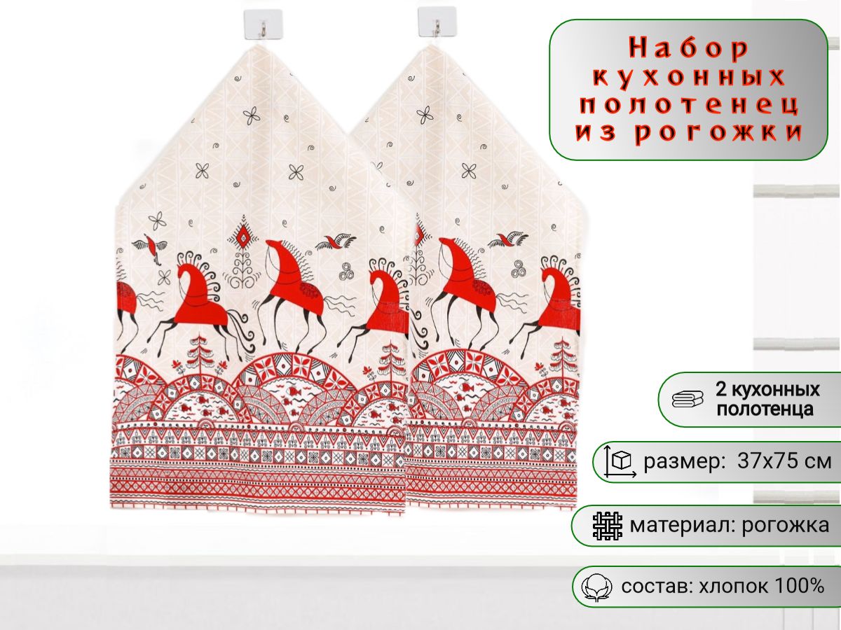 165 / белый / Былины / Лошадь / 200 / Рогожка / Набор полотенец для кухни из рогожки, размер 50х70, 2 штуки в упаковке. / Ивановский текстиль / 50x70 / Прямоугольник / 2 / Рогожка / Универсальный