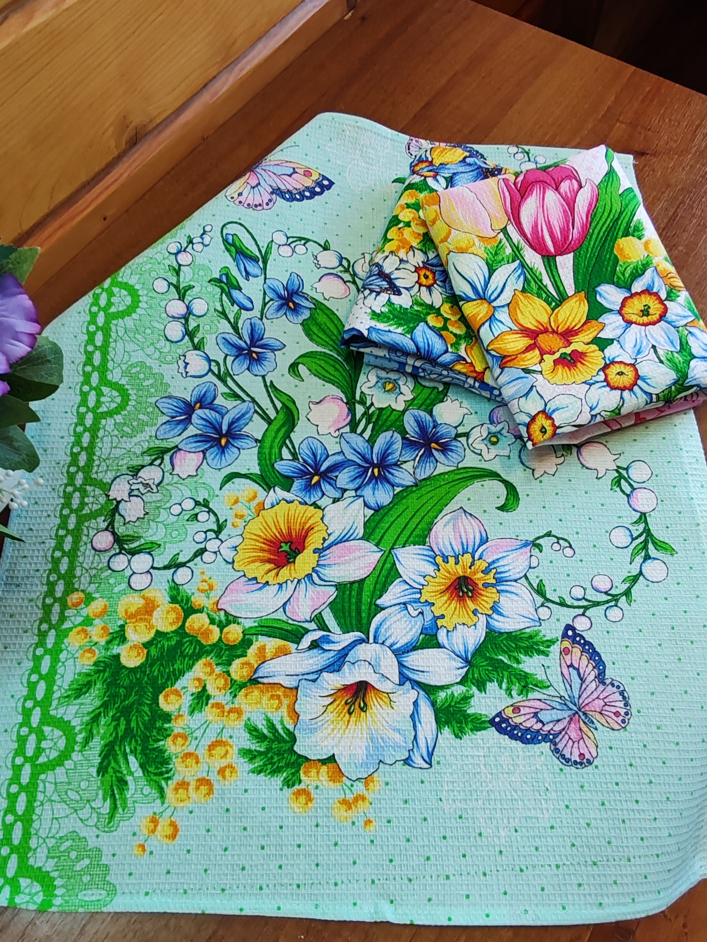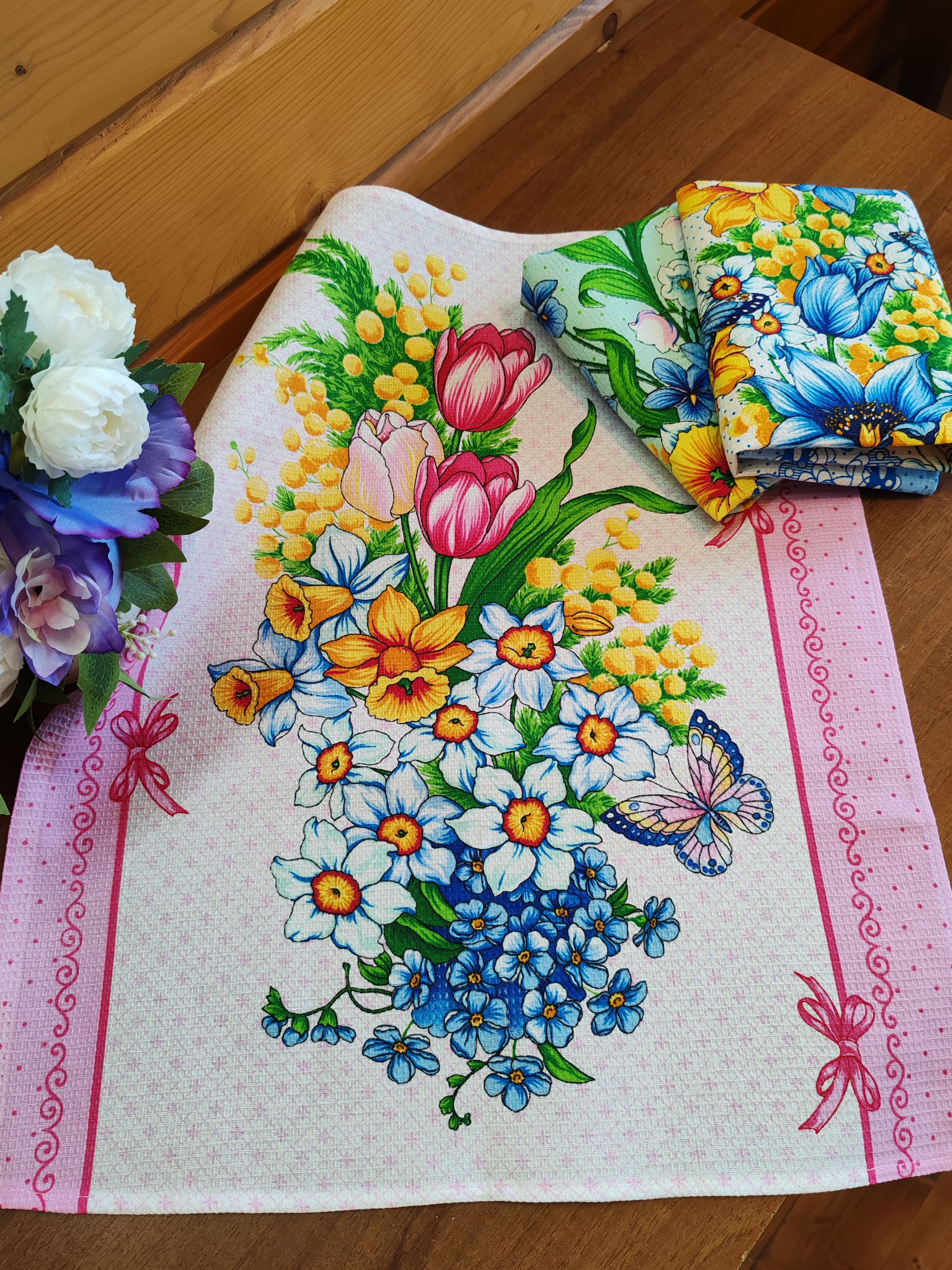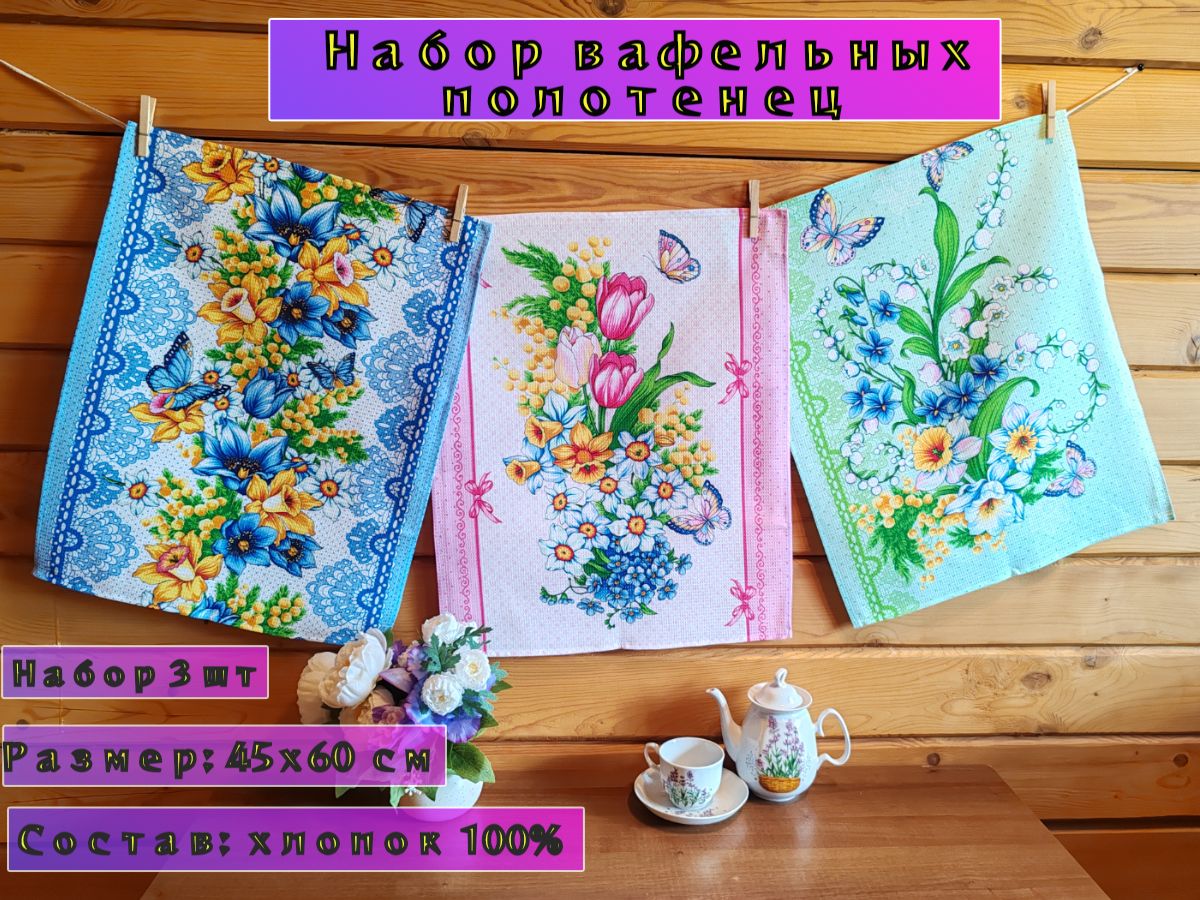 165 / разноцветный / Весенний букет / Цветы / 200 / Вафельное полотно / Набор полотенец для кухни, вафельное полотно, размер 45х60, 3 штуки в упаковке. / Ивановский текстиль / 45x60 / Прямоугольник / 3 / Вафельная / Универсальный