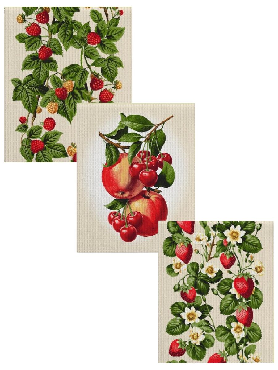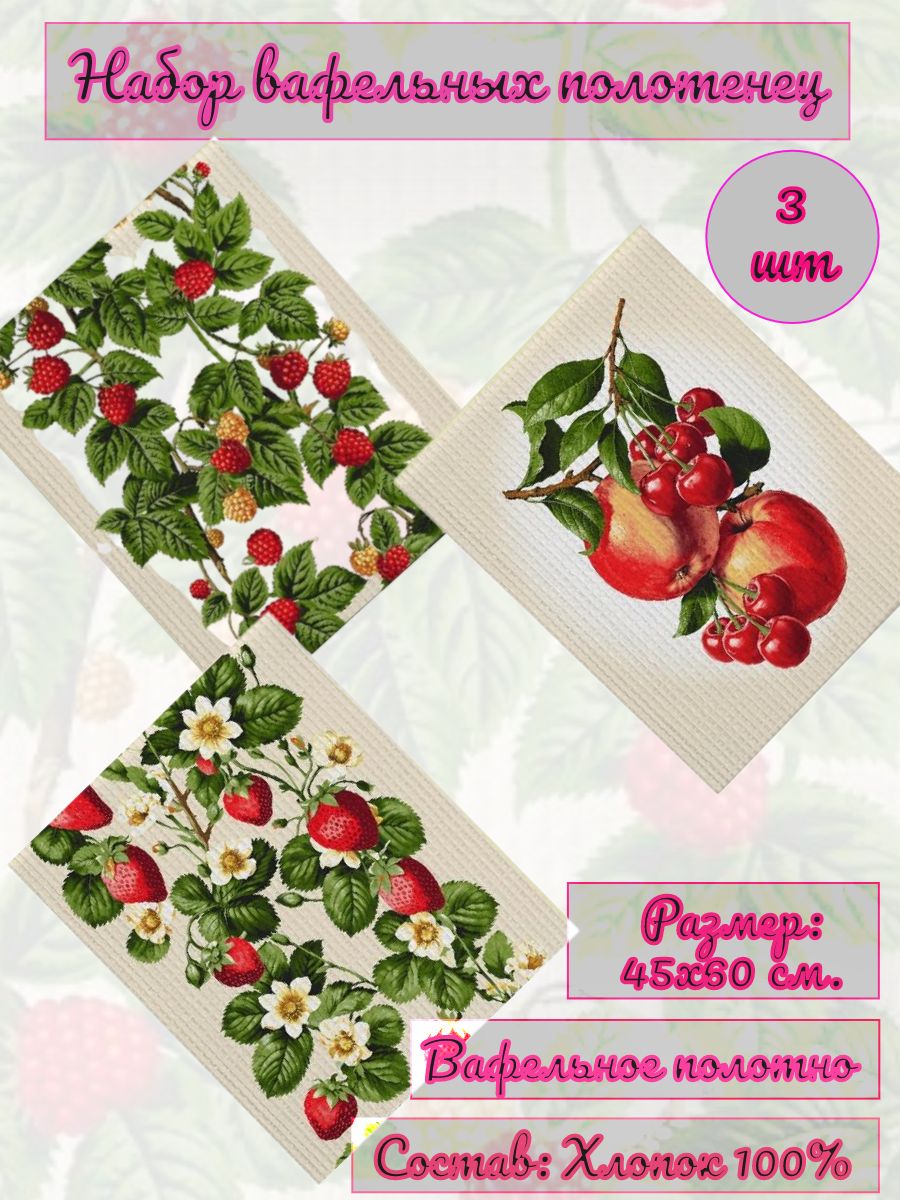 165 / бежевый / Сочный нектар / Ягоды / 200 / Вафельное полотно / Набор полотенец для кухни, вафельное полотно, размер 45х60, 3 штуки в упаковке. / Ивановский текстиль / 45x60 / Прямоугольник / 3 / Вафельная / Универсальный
