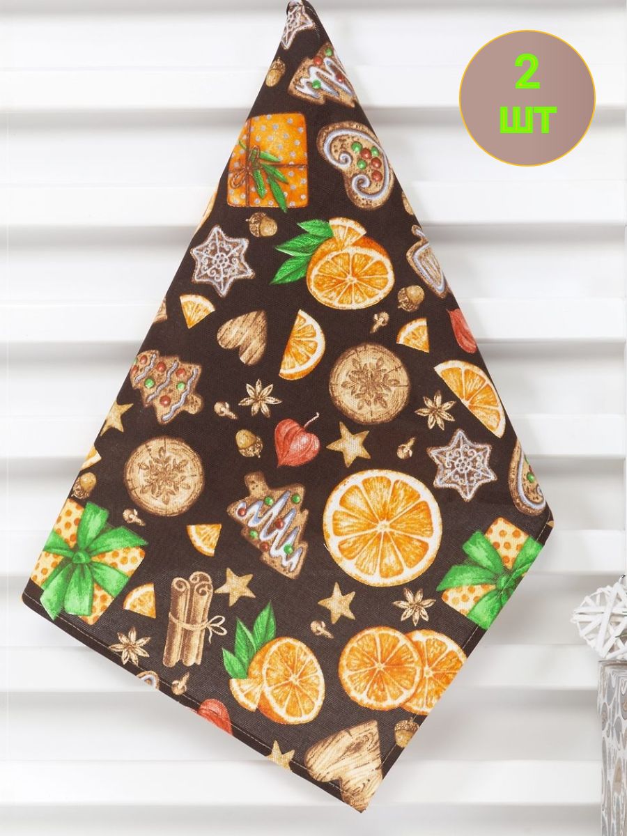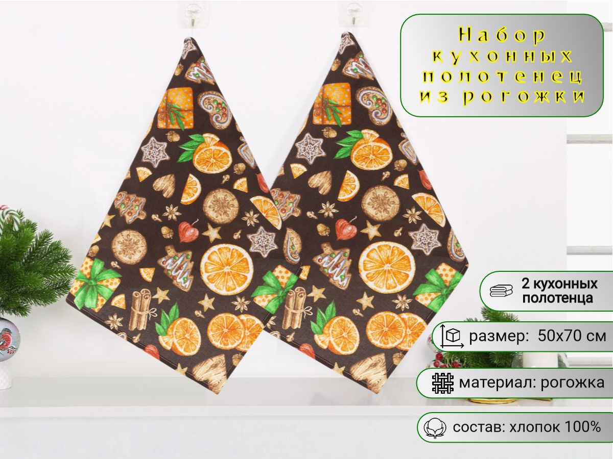 165 / коричневый / - / Новогодний / 200 / Рогожка / Набор полотенец для кухни из рогожки, размер 50х70, 2 штуки в упаковке. / Ивановский текстиль / 50x70 / Прямоугольник / 2 / Рогожка / Новый год