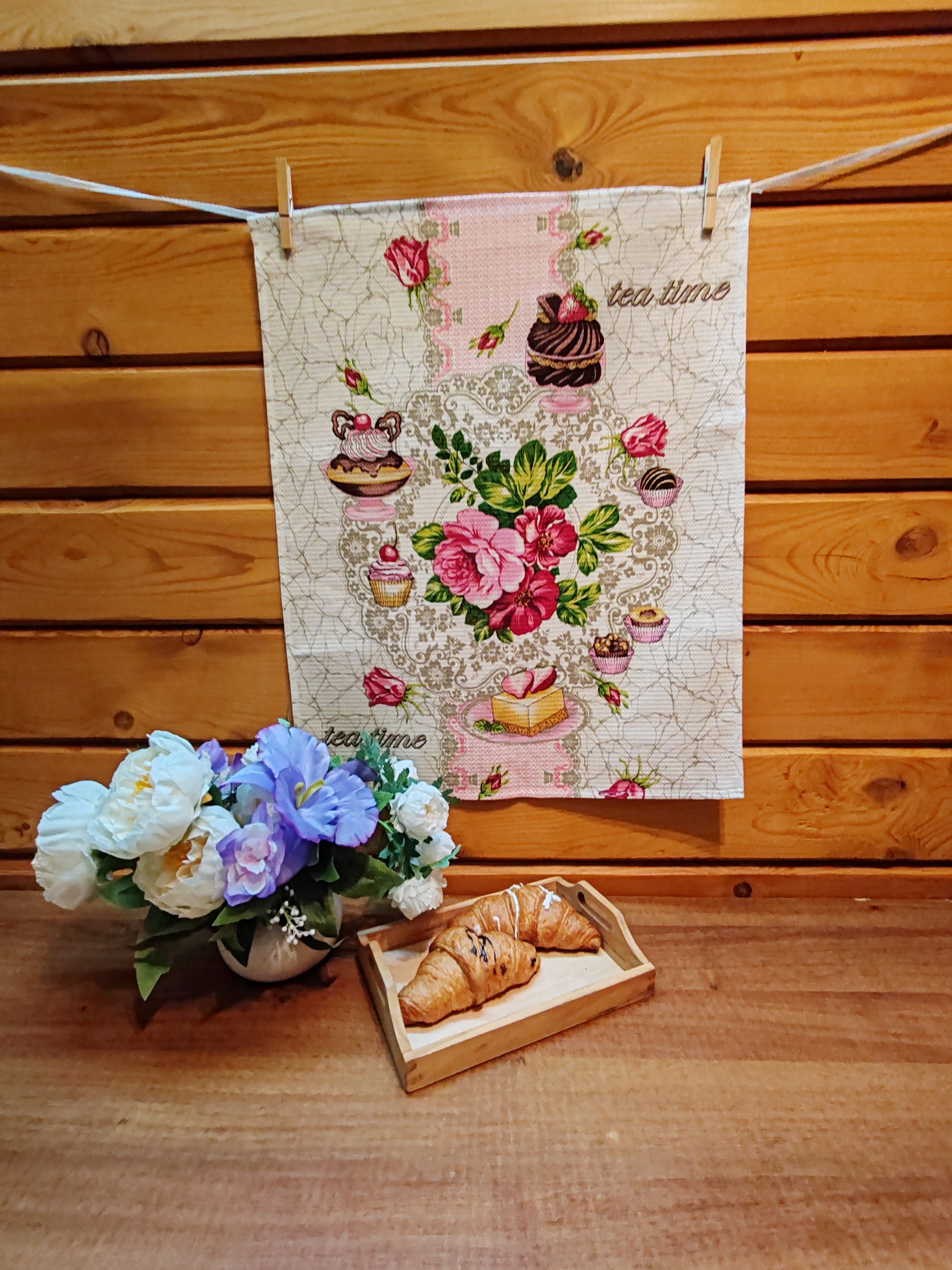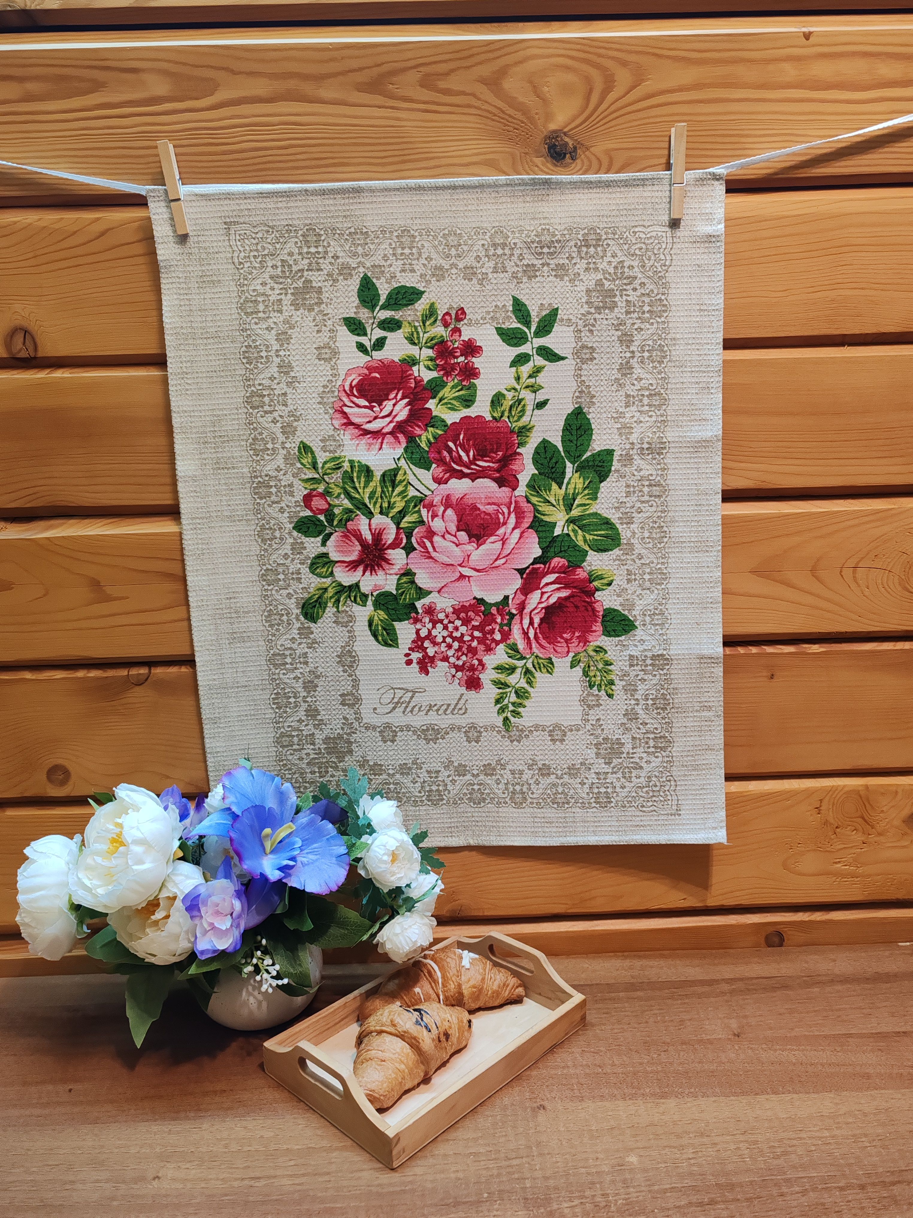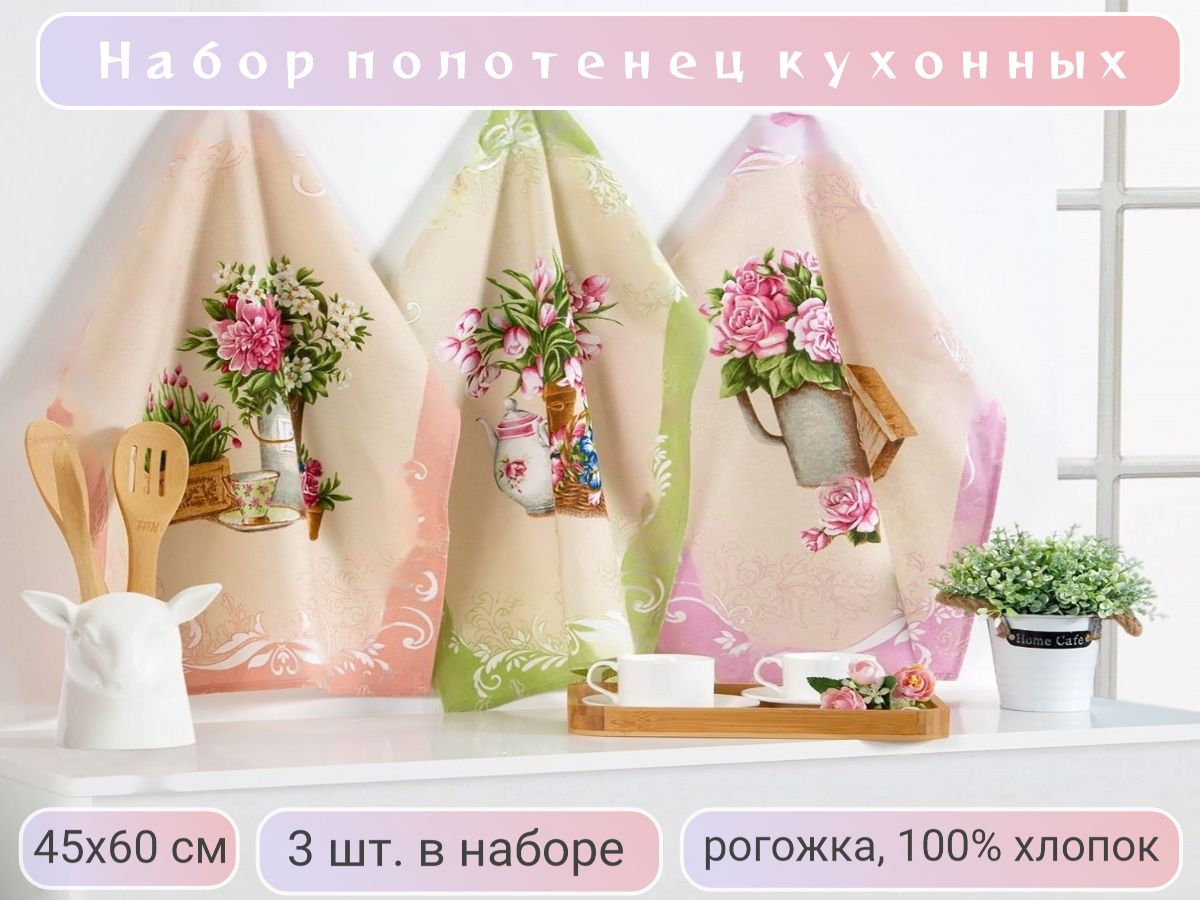 166 / бежевый / Прованс / Цветы / 200 / Рогожка / Набор полотенец для кухни из рогожки, размер 45х60, 3 штуки в упаковке. / Ивановский текстиль / 45x60 / Прямоугольник / 3 / Рогожка / Универсальный