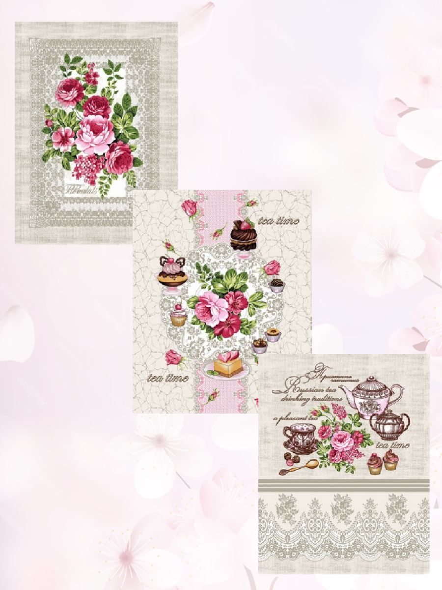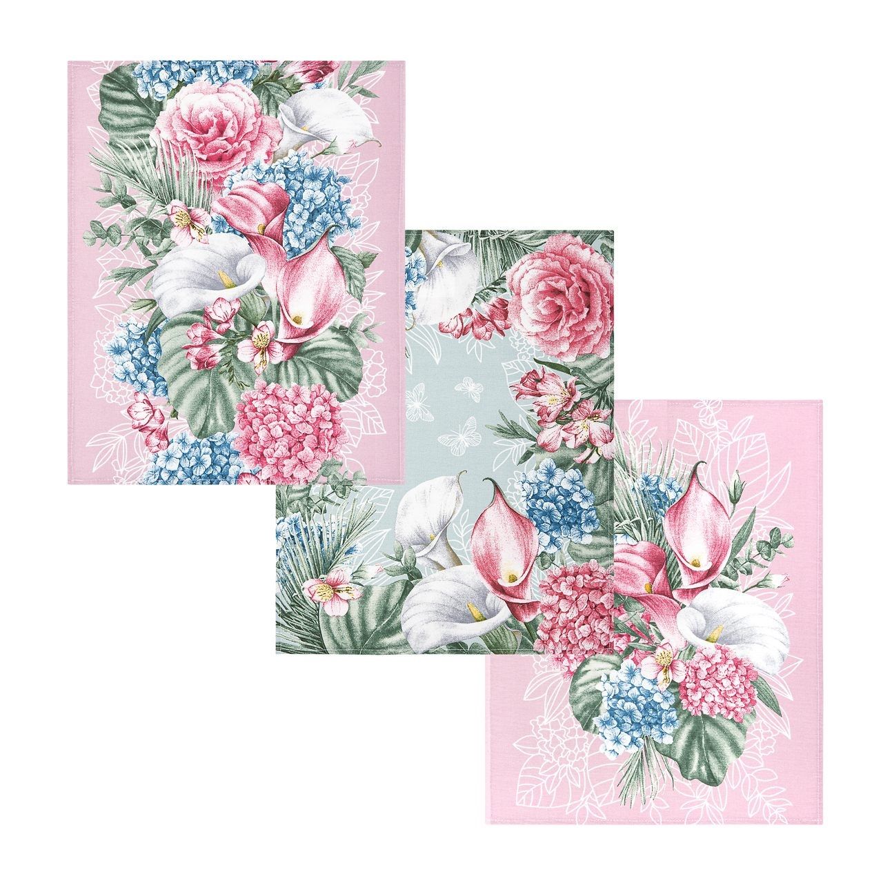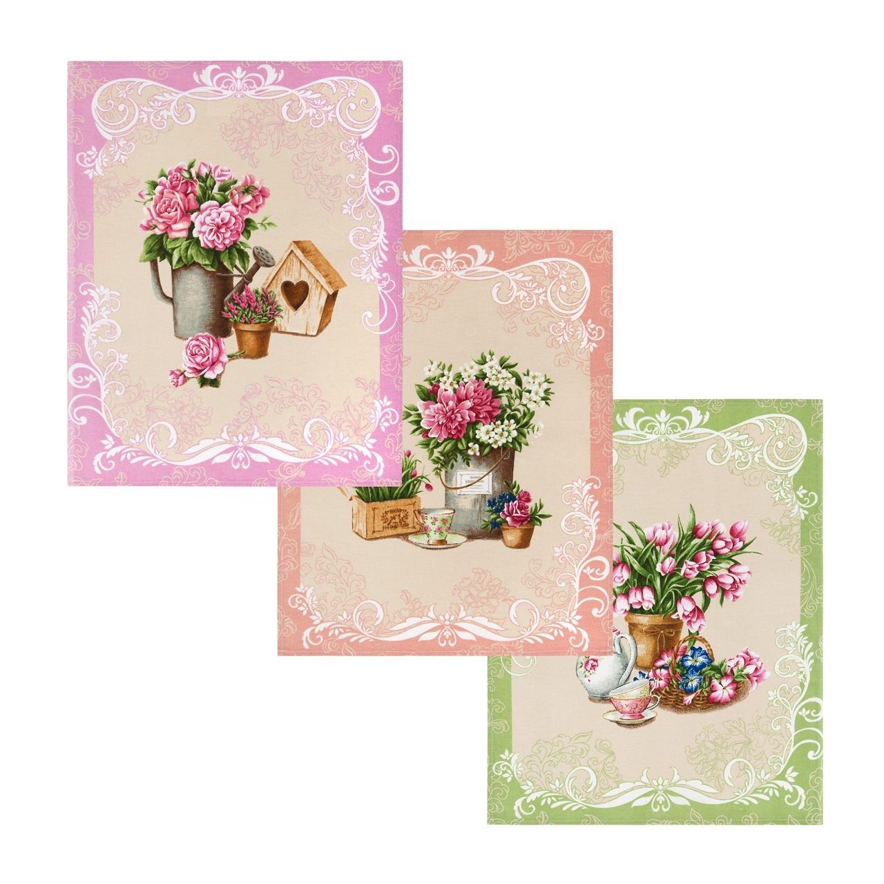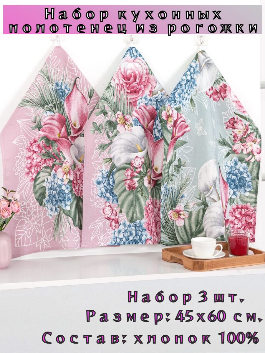 165 / розовый / Мятный аромат / Цветы / 200 / Рогожка / Набор полотенец для кухни из рогожки, размер 45х60, 3 штуки в упаковке. / Ивановский текстиль / 45x60 / Прямоугольник / 3 / Рогожка / Универсальный
