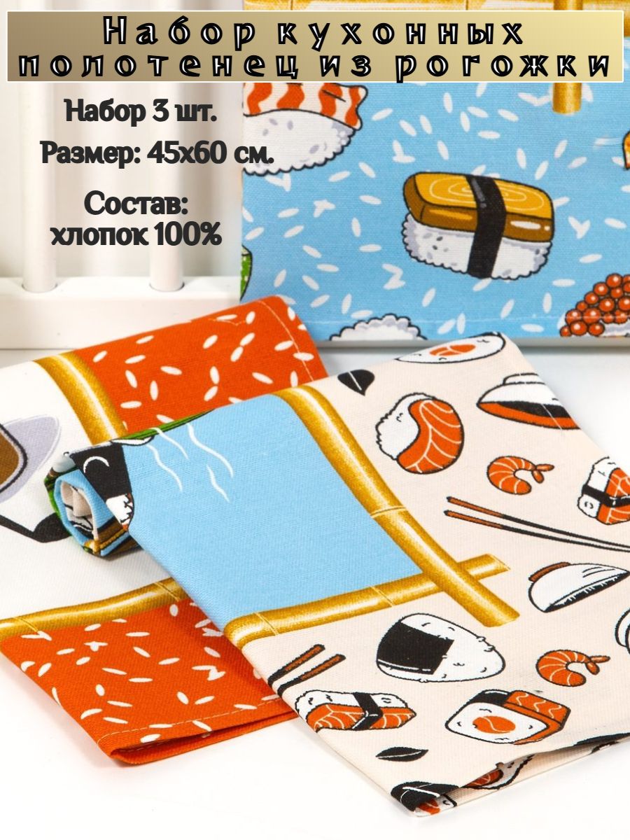 165 / белый / Вкуснота / Еда и напитки / 200 / Рогожка / Набор полотенец для кухни из рогожки, размер 45х60, 3 штуки в упаковке. / Ивановский текстиль / 45x60 / Прямоугольник / 3 / Рогожка / Универсальный