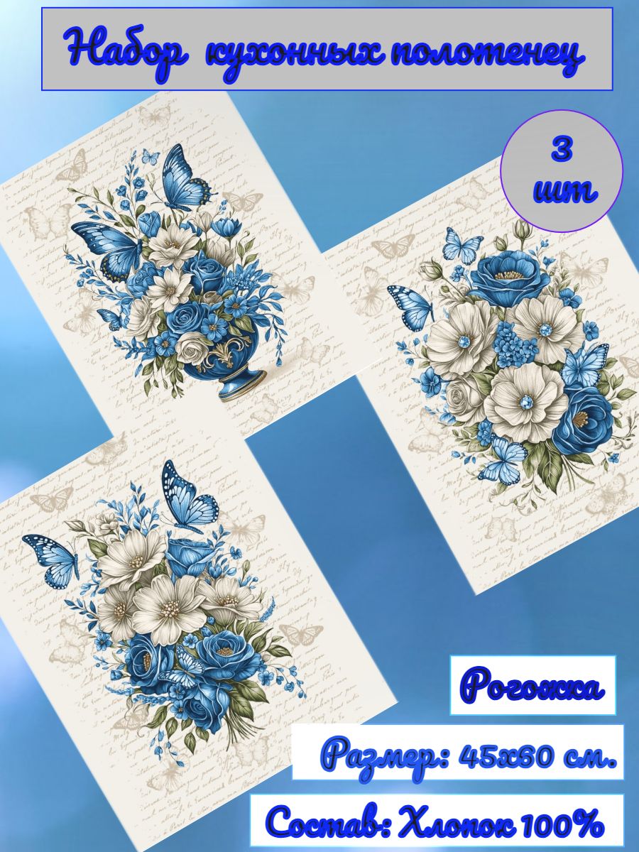 165 / голубой / - / Бабочки / 200 / Рогожка / Набор полотенец для кухни из рогожки, размер 45х60, 3 штуки в упаковке. / Ивановский текстиль / 45x60 / Прямоугольник / 3 / Рогожка / Универсальный