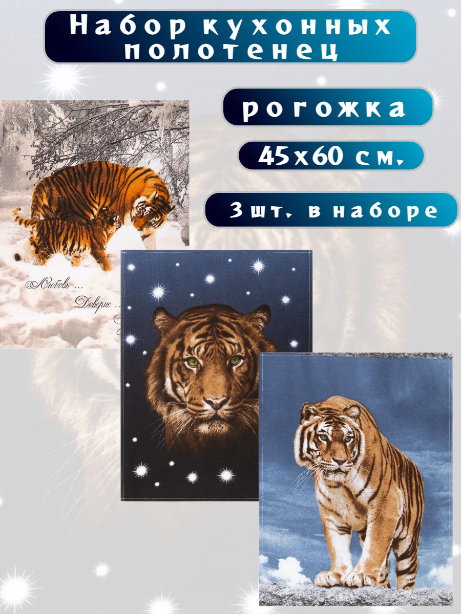 165 / синий / Раджа / Тигр / 200 / Рогожка / Набор полотенец для кухни из рогожки, размер 45х60, 3 штуки в упаковке. / Ивановский текстиль / 45x60 / Прямоугольник / 3 / Рогожка / Универсальный