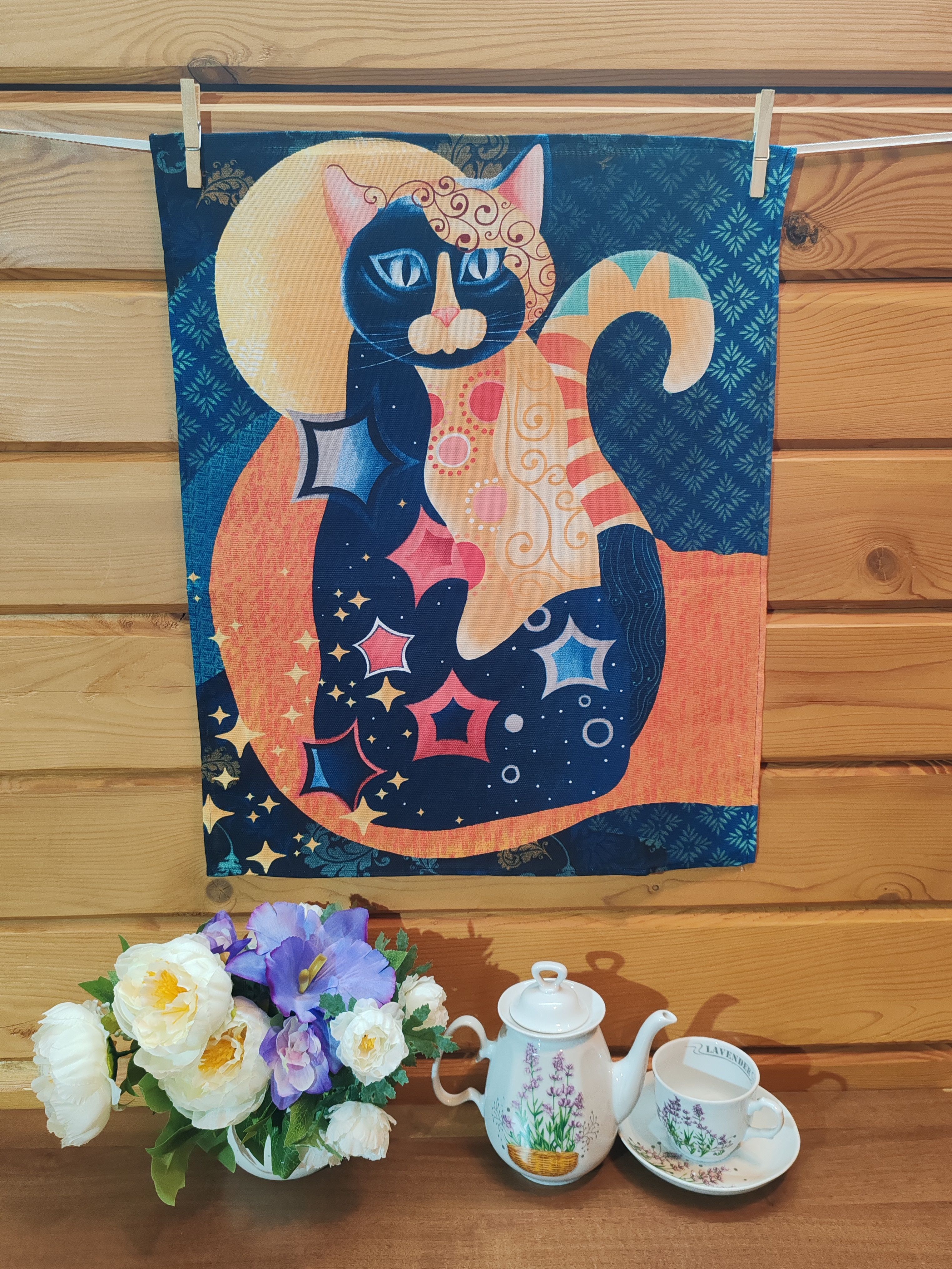 165 / синий / Лунный свет / Кот, котёнок / 200 / Рогожка / Набор полотенец для кухни из рогожки, размер 45х60, 3 штуки в упаковке. / Ивановский текстиль / 45x60 / Прямоугольник / 3 / Рогожка / Универсальный