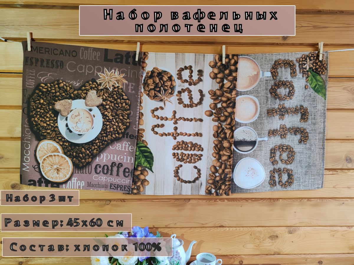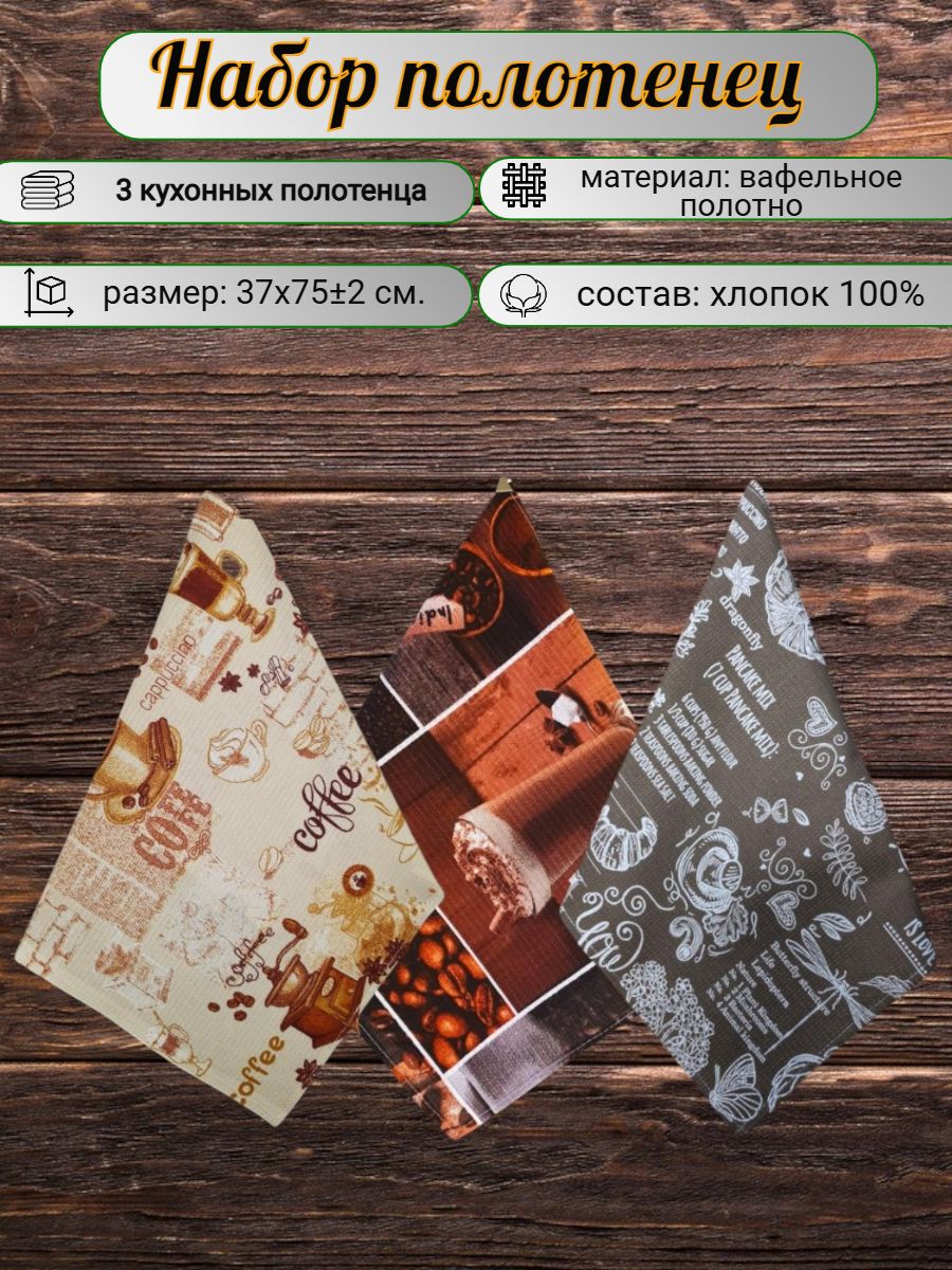 165 / коричневый / Кофе Американо / Кофе / 200 / Вафельное полотно / Набор полотенец для кухни, вафельное полотно, размер 45х60, 3 штуки в упаковке. / Ивановский текстиль / 45x60 / Прямоугольник / 3 / Вафельная / Универсальный