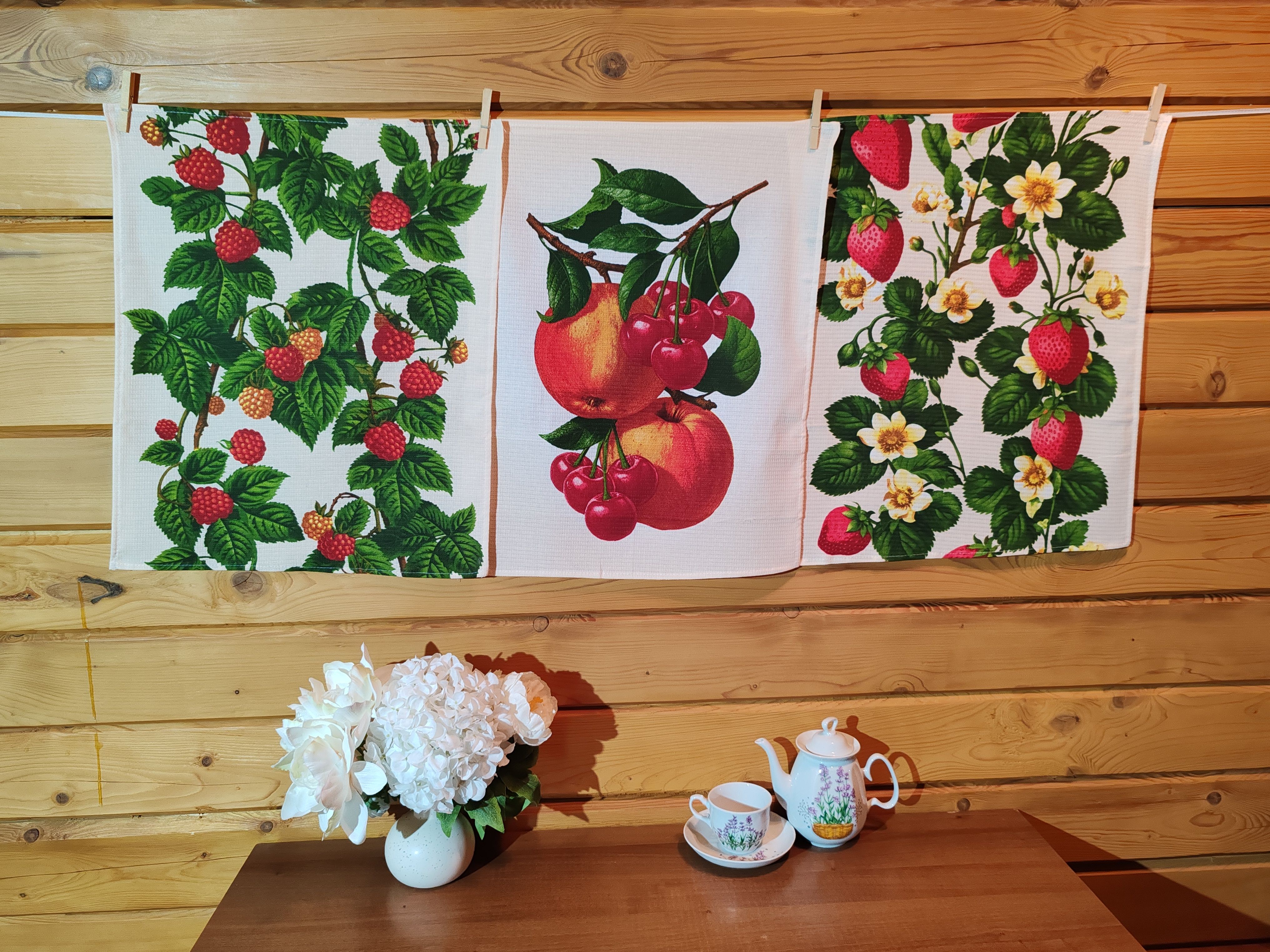 165 / зеленый / Береста / Ягоды / 200 / Рогожка / Набор полотенец для кухни из рогожки, размер 45х60, 3 штуки в упаковке. / Ивановский текстиль / 45x60 / Прямоугольник / 3 / Рогожка / Универсальный