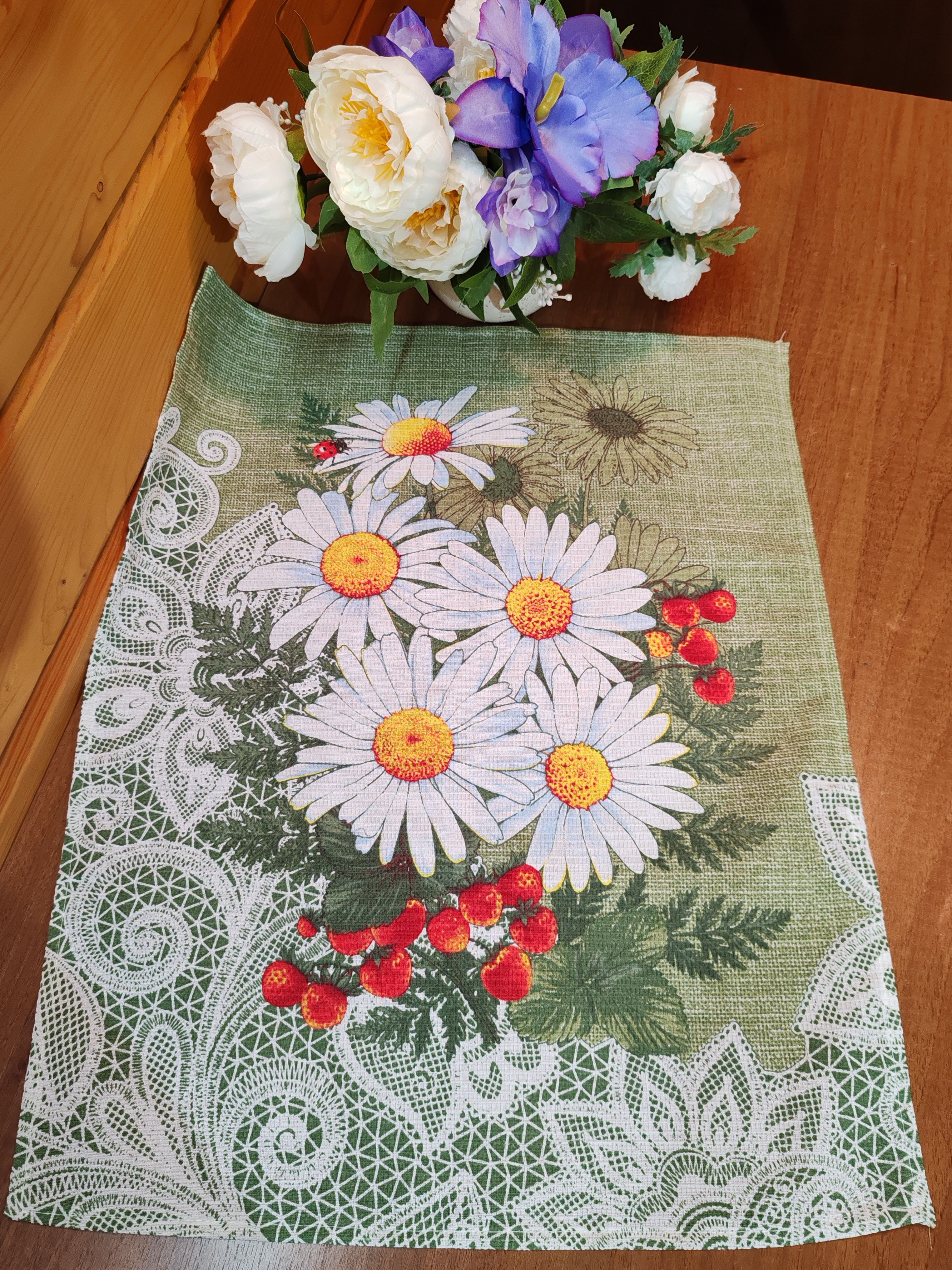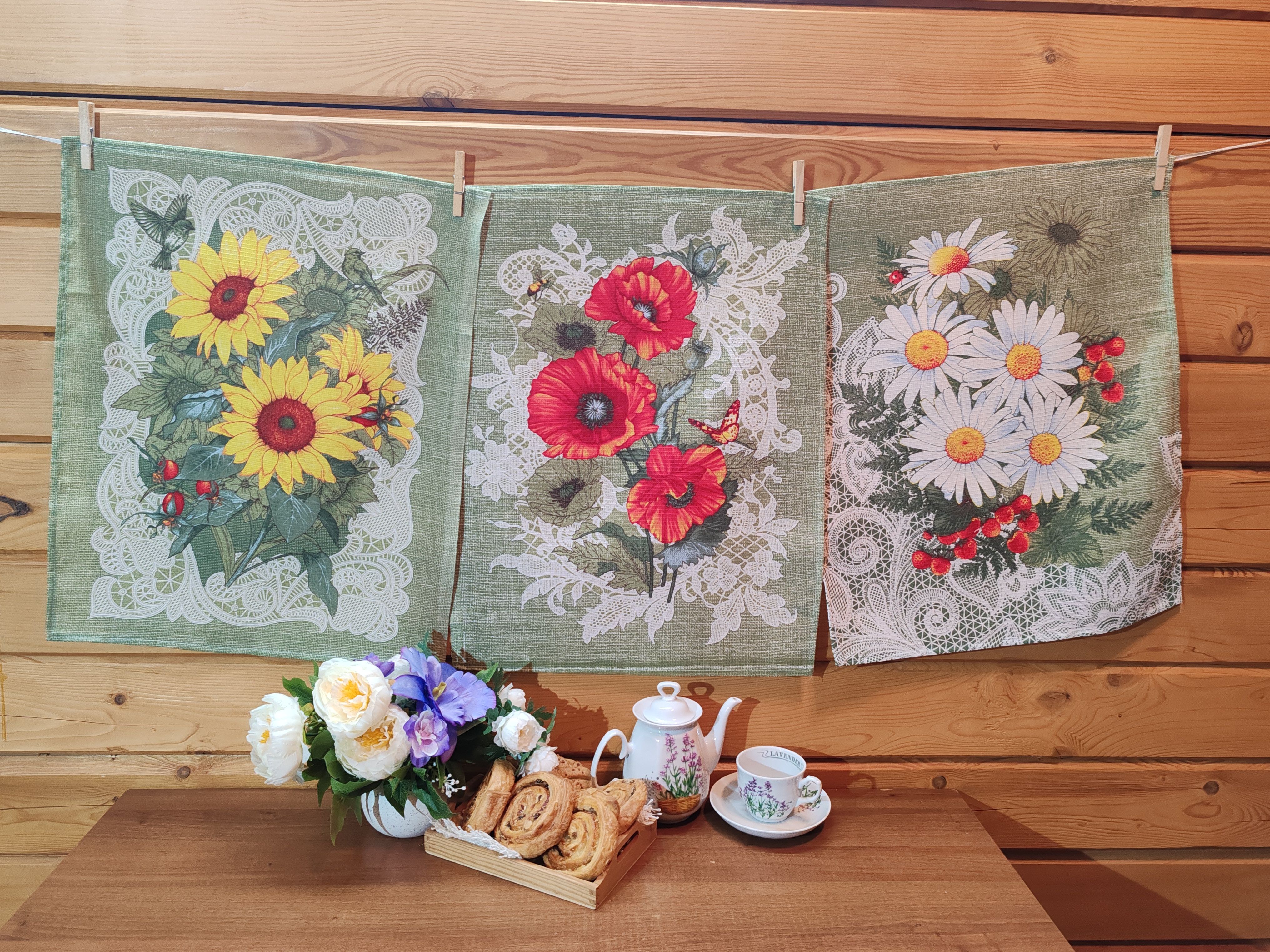165 / белый / Цветалина / Цветы / 200 / Рогожка / Набор полотенец для кухни из рогожки, размер 45х60, 3 штуки в упаковке. / Ивановский текстиль / 45x60 / Прямоугольник / 3 / Рогожка / Универсальный