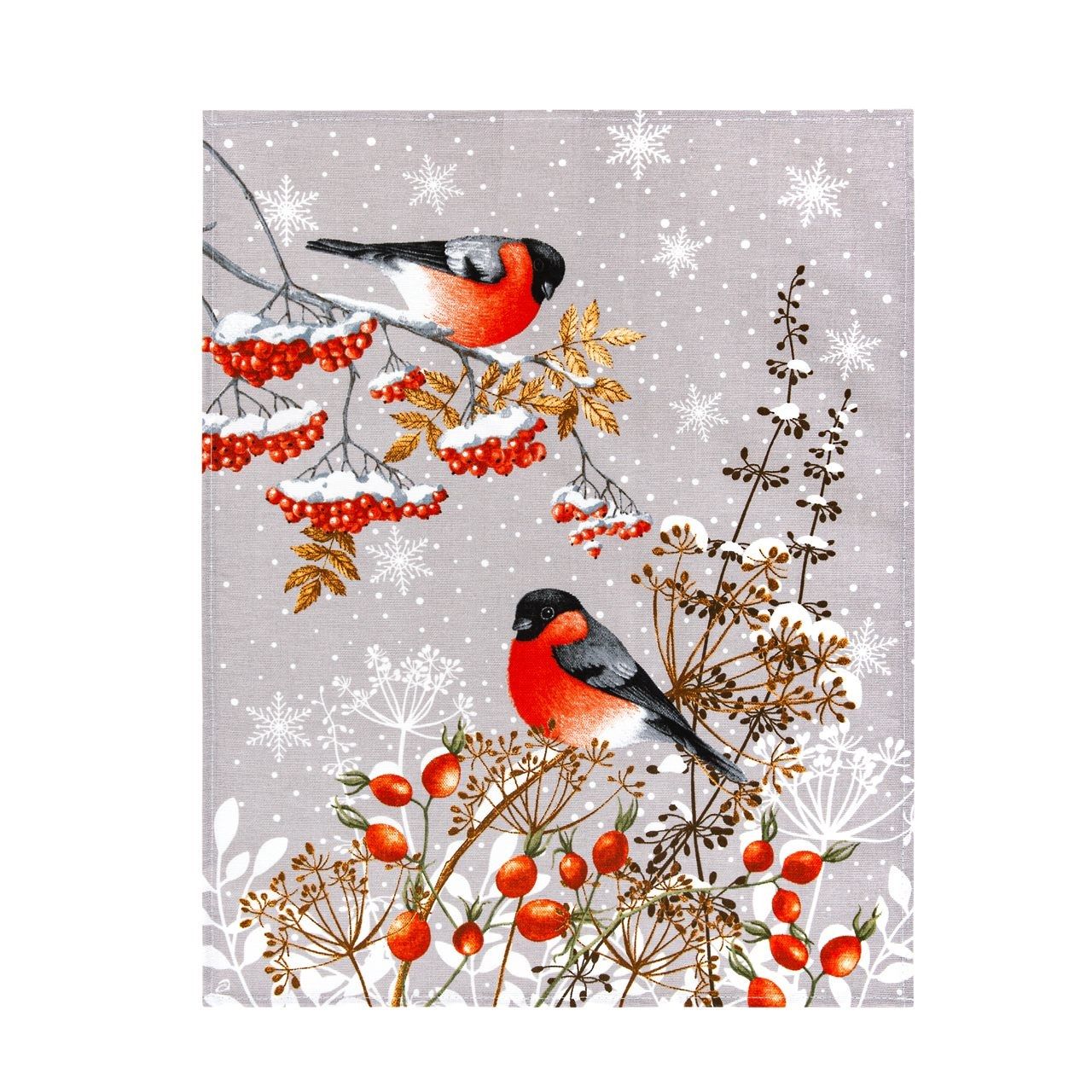 165 / серый / Снегири на рябине / Птицы / 220 / Рогожка / Набор полотенец для кухни из рогожки, размер 37х75, 2 штуки в упаковке. / Ивановский текстиль / 37x75 / Прямоугольник / 2 / Рогожка / Новый год