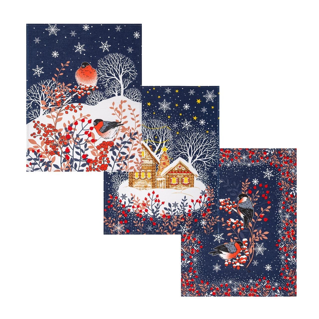 165 / синий / Колядки / Новогодний / 200 / Рогожка / Новогодний набор полотенец для кухни из рогожки, размер 45х60, 3 штуки в упаковке. / Новогодний текстиль / 45x60 / Прямоугольник / 3 / Рогожка / Новый год
