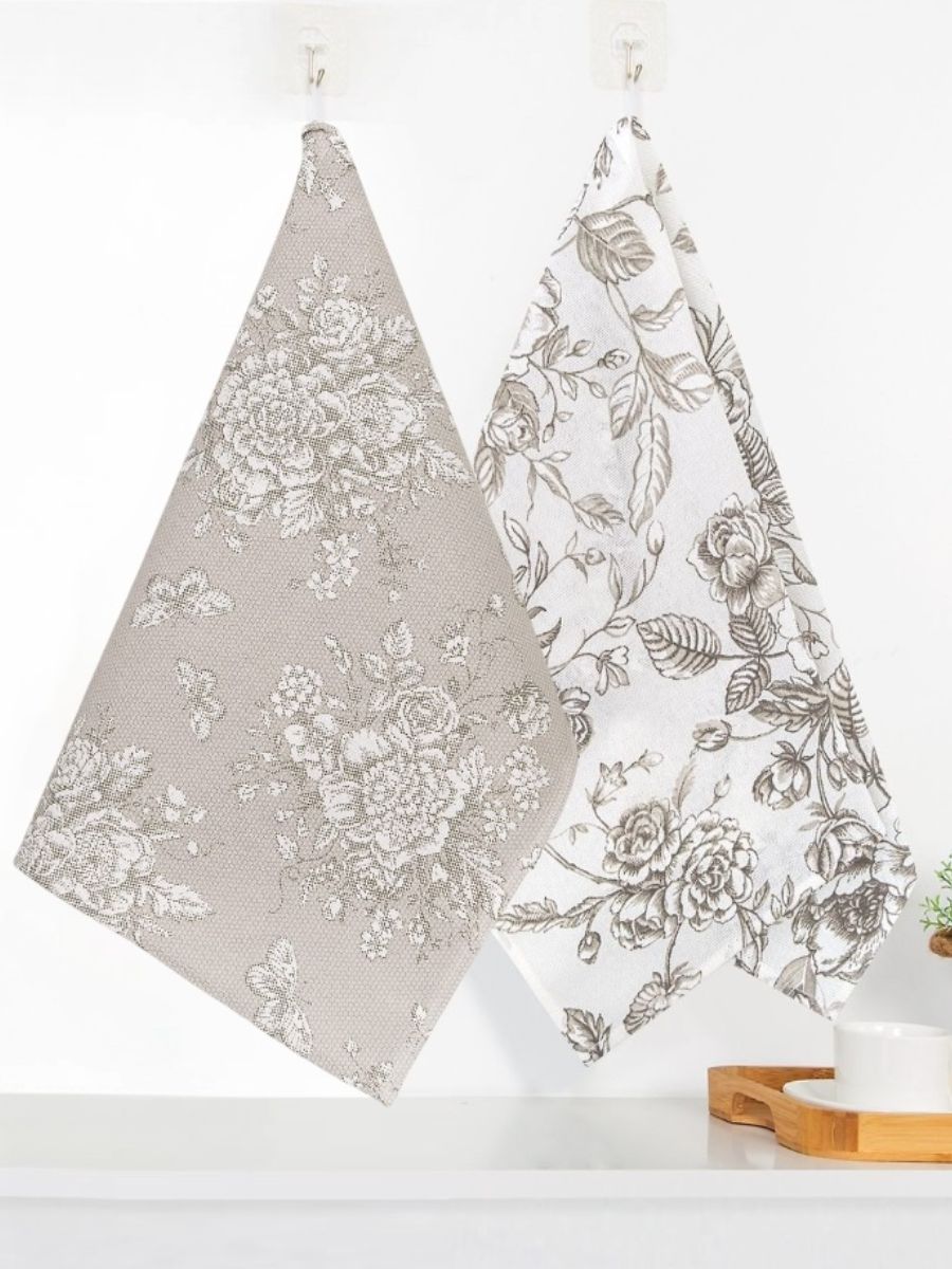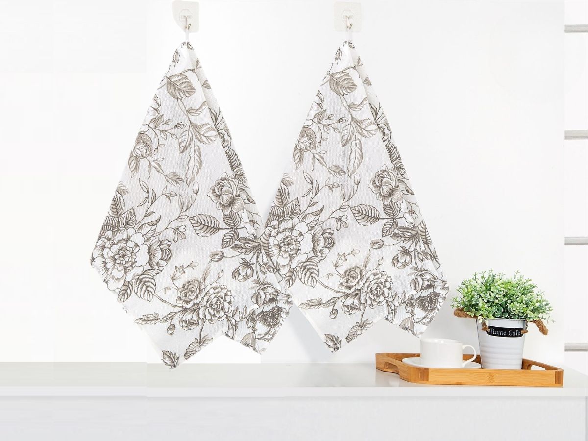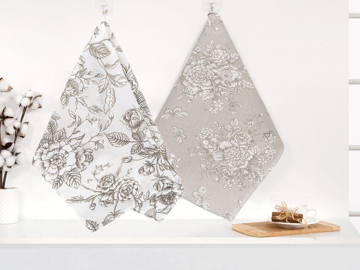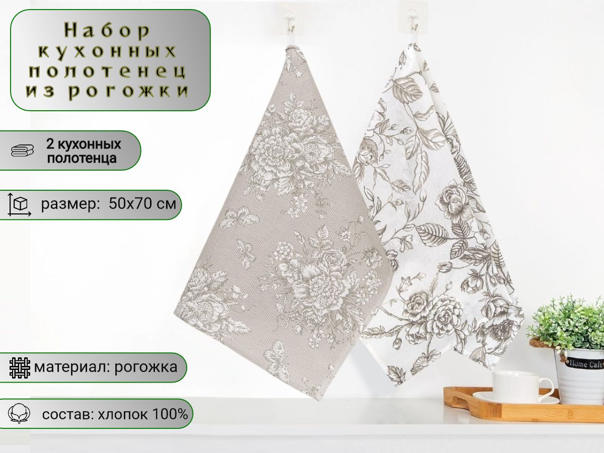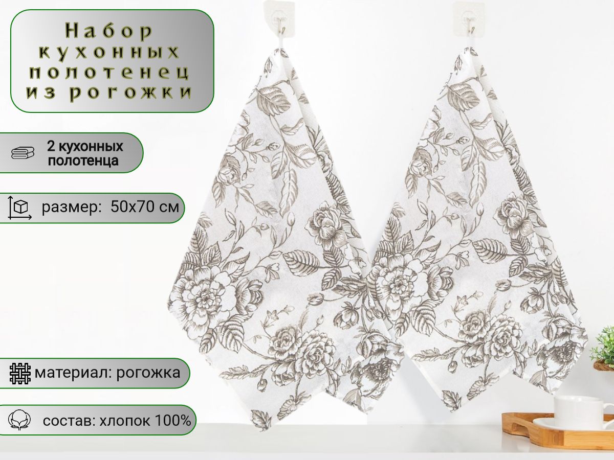 165 / серый / Верона / Цветы / 200 / Рогожка / Набор полотенец для кухни из рогожки, размер 50х70, 2 штуки в упаковке. / Ивановский текстиль / 50x70 / Прямоугольник / 2 / Рогожка / Универсальный