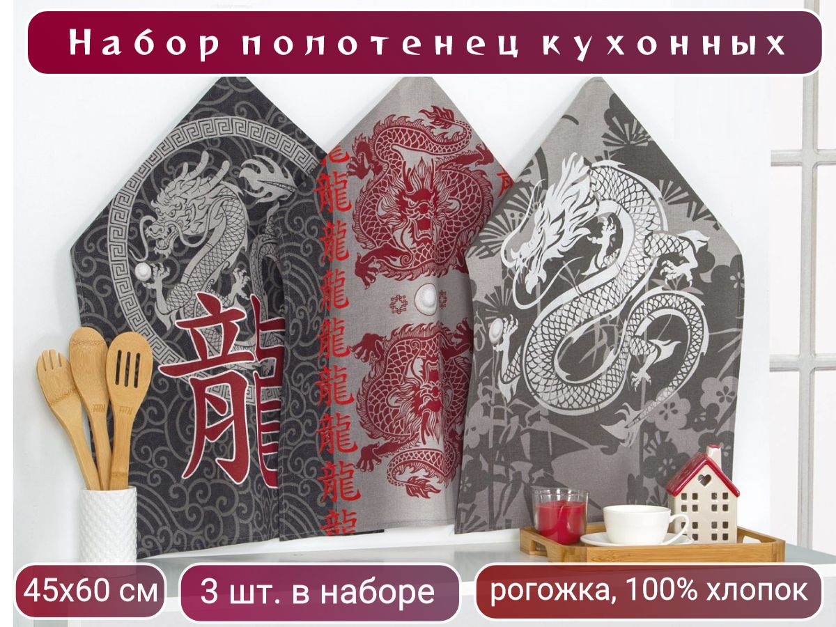165 / серый / Путь богатства / Иероглифы / 200 / Рогожка / Набор кухонных полотенец из рогожки, размер 45х60, 3 штуки в упаковке. / ивановский текстиль / 45x60 / Прямоугольник / 3 / Рогожка / 8 марта