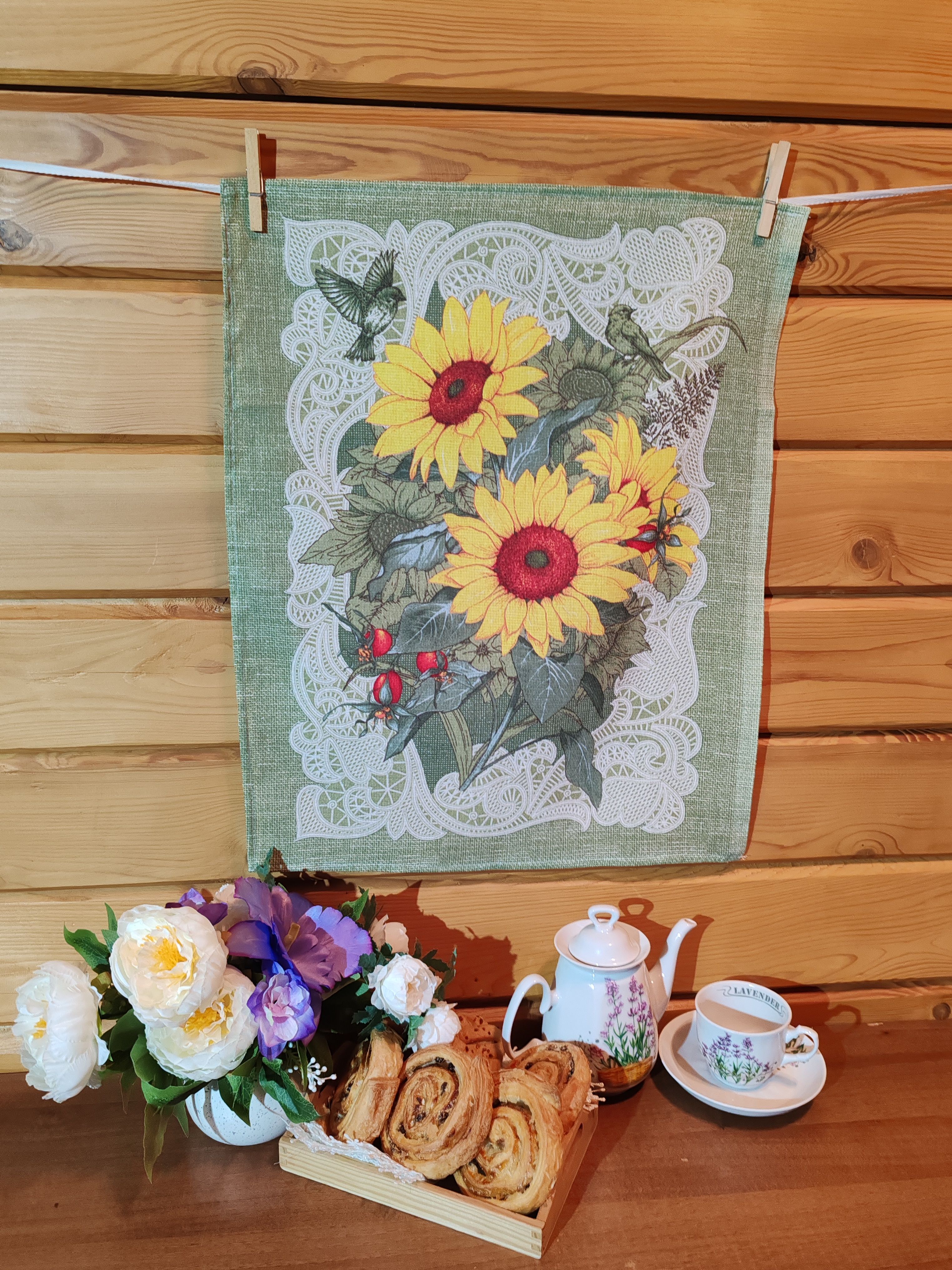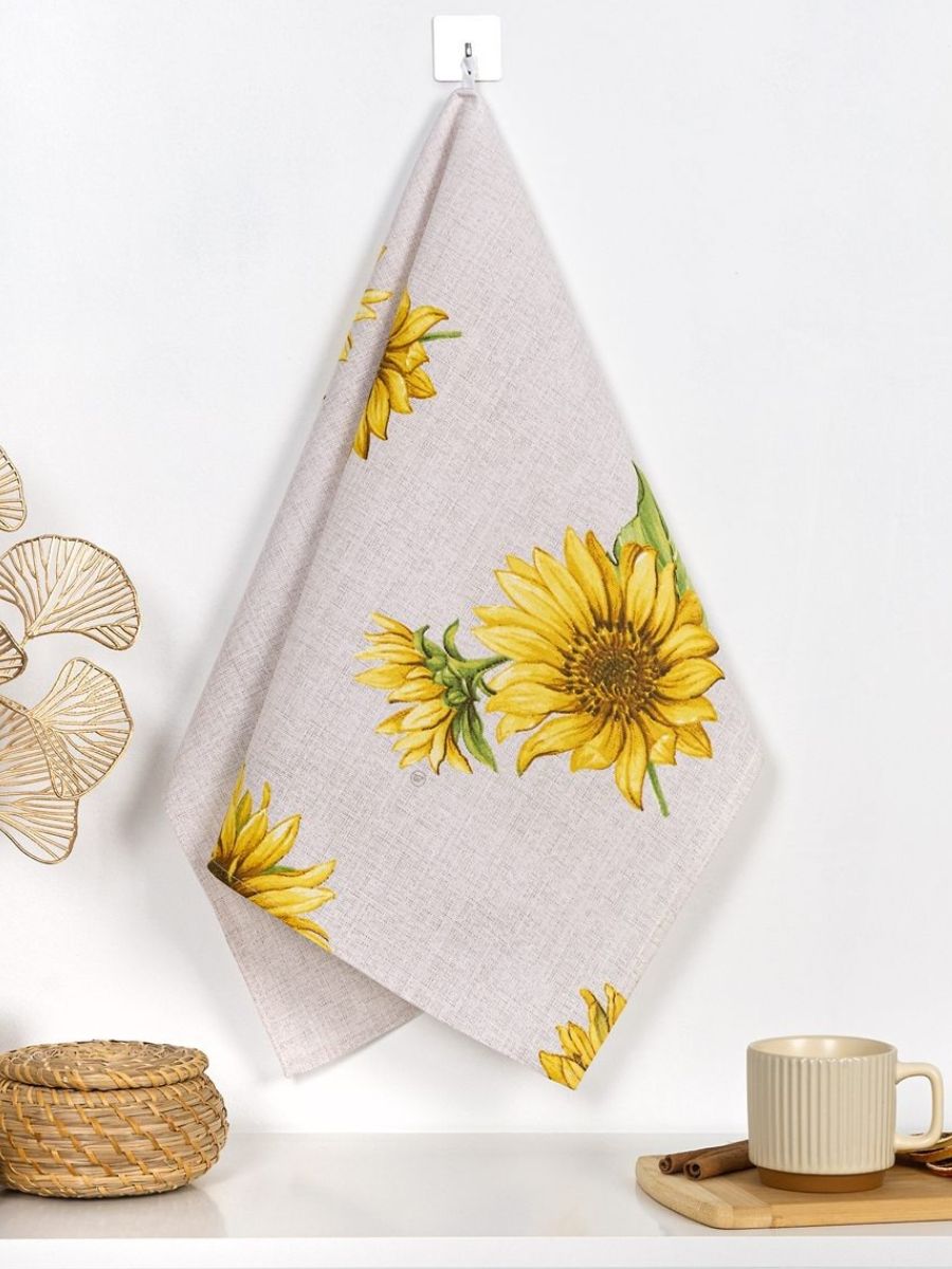 165 / коричневый / Подсолнух / Цветы / 200 / Рогожка / Набор полотенец для кухни из рогожки, размер 50х70, 2 штуки в упаковке. / Ивановский текстиль / 50x70 / Прямоугольник / 2 / Рогожка / Универсальный