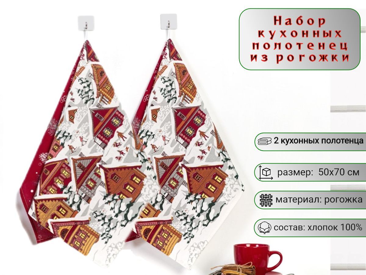 165 / белый / Студеная пора / Новогодний / 200 / Рогожка / Набор полотенец для кухни из рогожки, размер 50х70, 2 штуки в упаковке. / Ивановский текстиль / 50x70 / Прямоугольник / 2 / Рогожка / Новый год