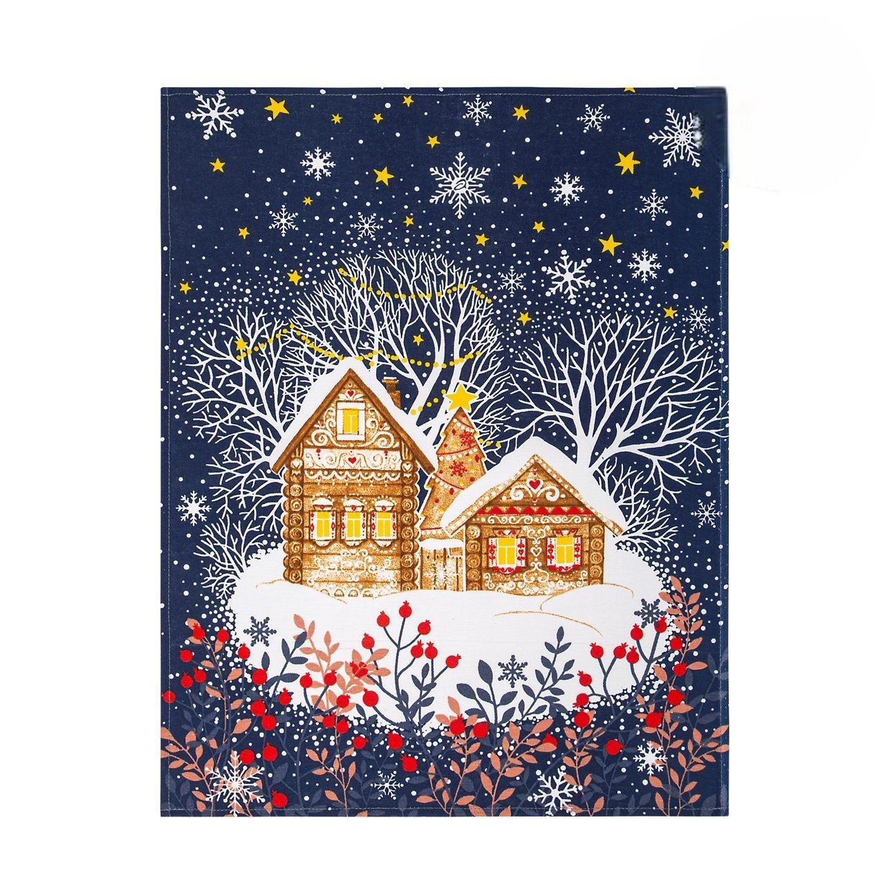 120 / синий / Зимняя сказка / Домик / 200 / Вафельное полотно / Набор полотенец для кухни из вафельного полотна, размер 37х75, 2 штуки в упаковке. / Ивановский текстиль / 37x75 / Прямоугольник / 2 / Вафельная / Новый год