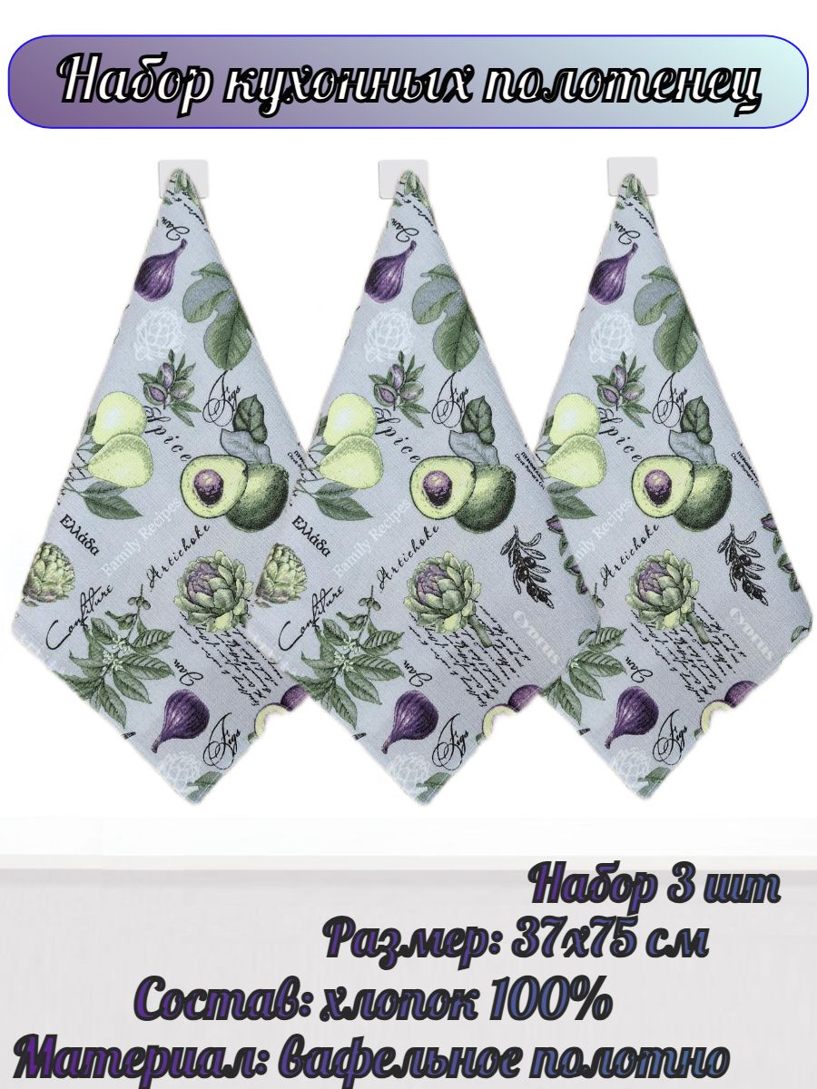 165 / разноцветный / Гурман / Еда и напитки / 200 / Вафельное полотно / Набор полотенец для кухни, вафельное полотно, размер 37х75, 3 штуки в упаковке. / Ивановский текстиль / 37x75 / Прямоугольник / 3 / Вафельная / Универсальный