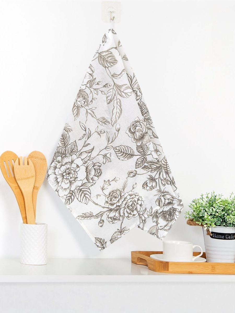 165 / серый / Серенада / Цветы / 200 / Рогожка / Набор полотенец для кухни из рогожки, размер 45х60, 3 штуки в упаковке. / Ивановский текстиль / 45x60 / Прямоугольник / 3 / Рогожка / Универсальный