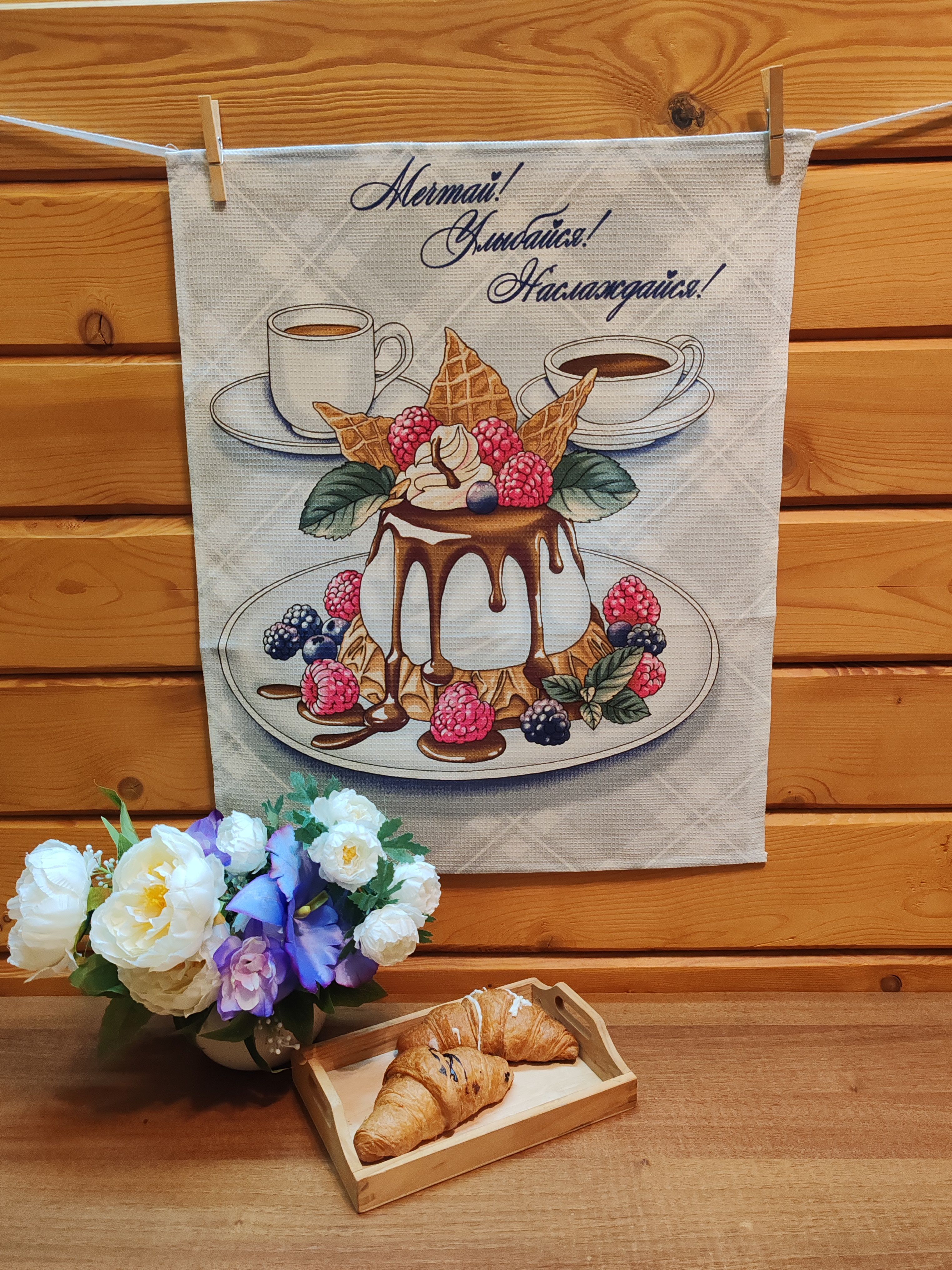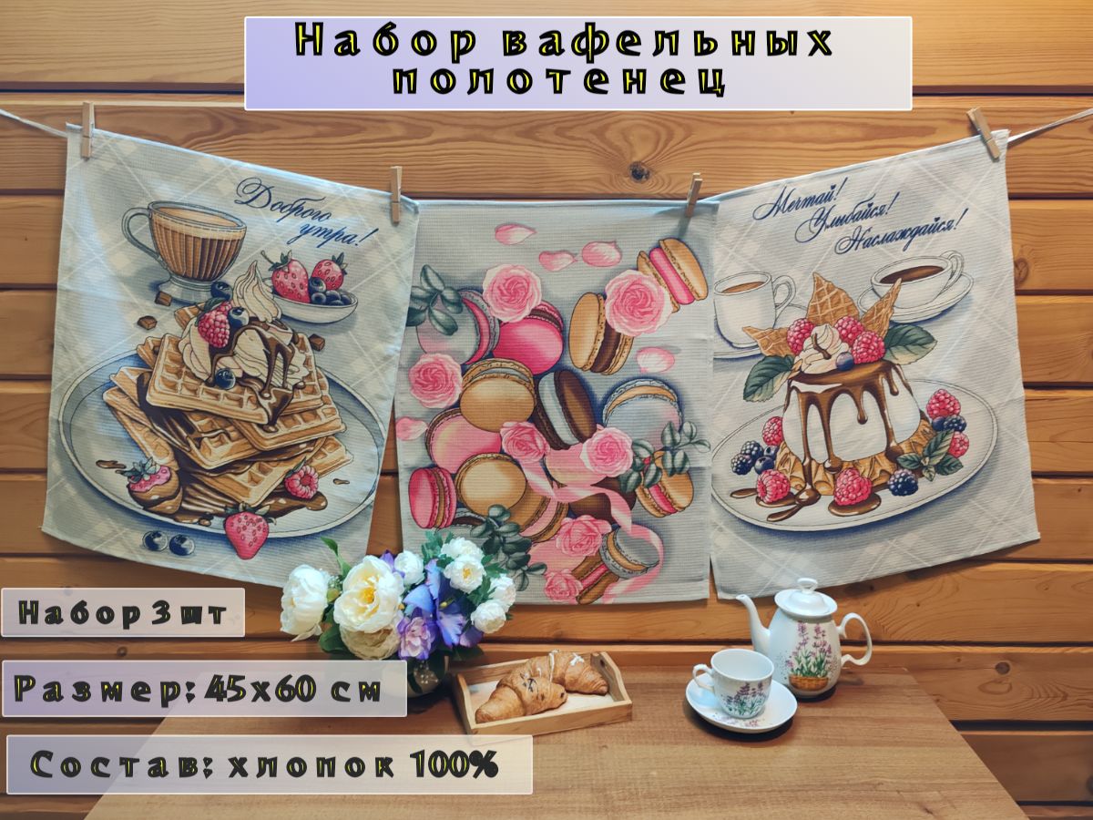 165 / бежевый / Десерт / Еда и напитки / 200 / Вафельное полотно / Набор полотенец для кухни, вафельное полотно, размер 45х60, 3 штуки в упаковке. / Ивановский текстиль / 45x60 / Прямоугольник / 3 / Вафельная / Универсальный
