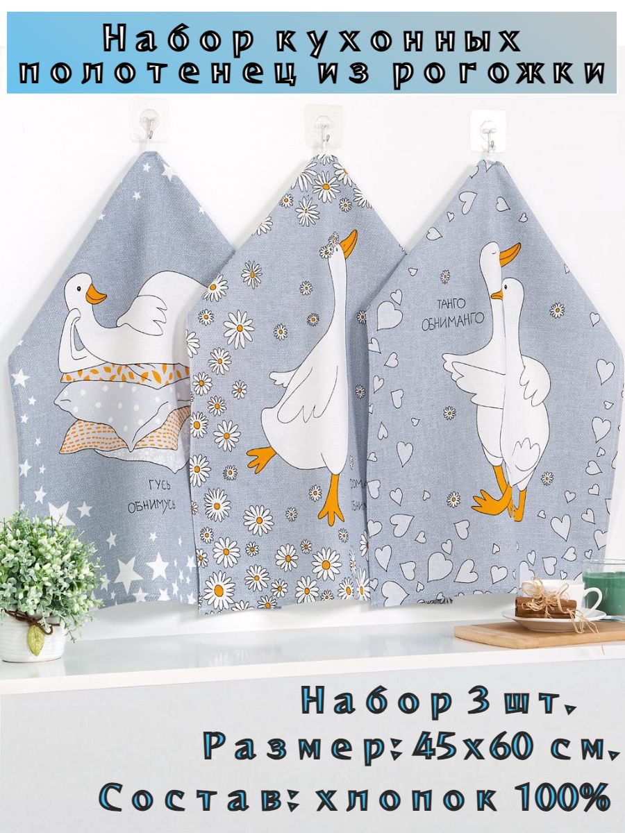 165 / фиолетовый / Гуси / Гусь / 200 / Рогожка / Набор полотенец для кухни из рогожки, размер 45х60, 3 штуки в упаковке. / Ивановский текстиль / 45x60 / Прямоугольник / 3 / Рогожка / Универсальный