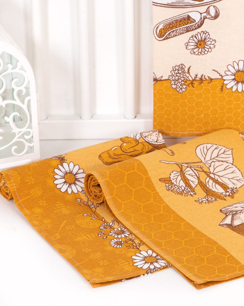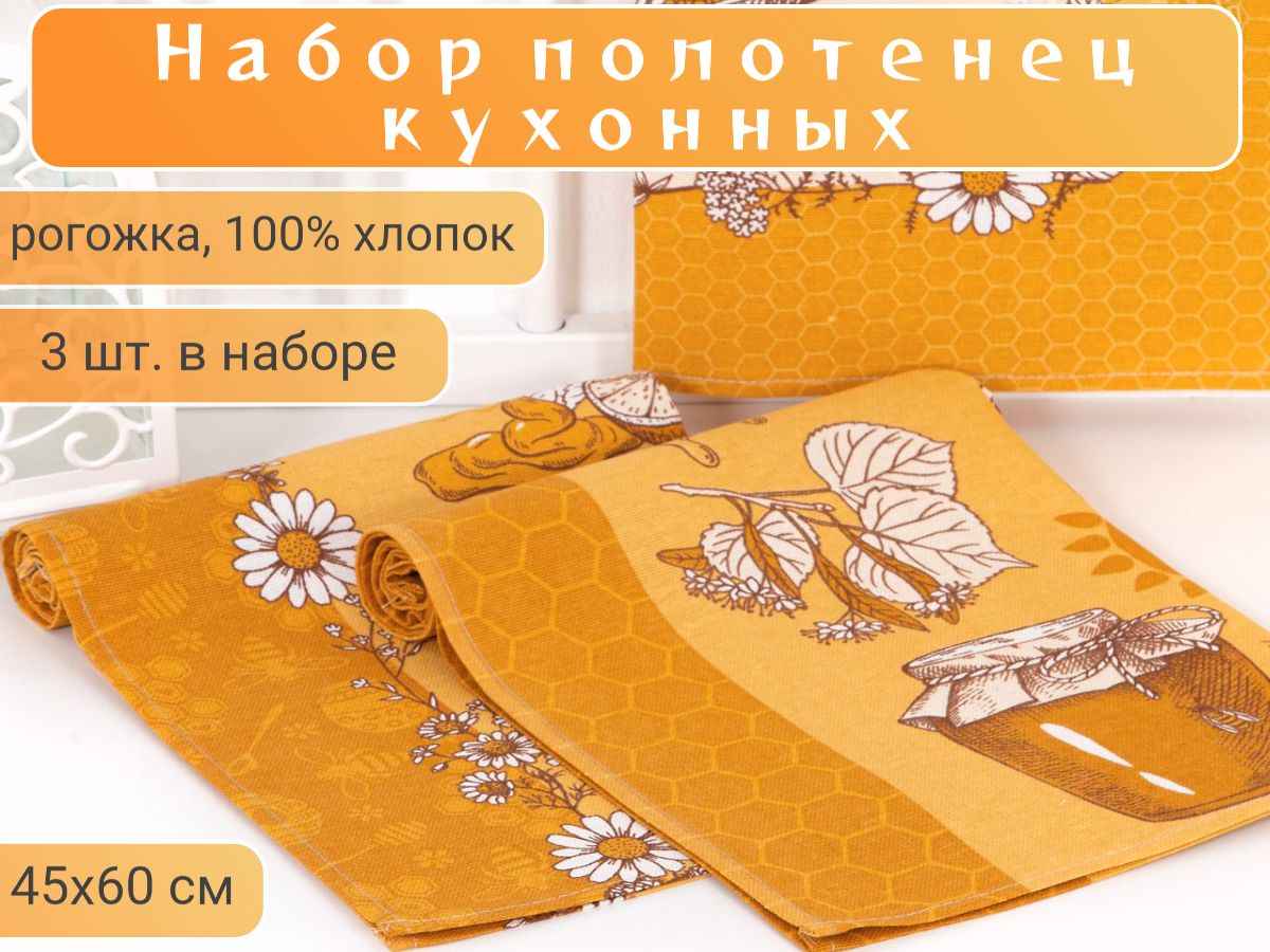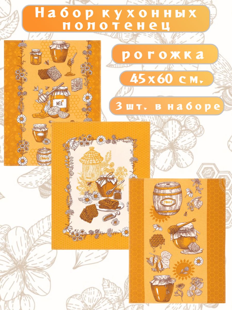 165 / оранжевый / Пасека / Кухонная утварь / 200 / Рогожка / Набор полотенец для кухни из рогожки, размер 45х60, 3 штуки в упаковке. / Ивановский текстиль / 45x60 / Прямоугольник / 3 / Рогожка / Универсальный