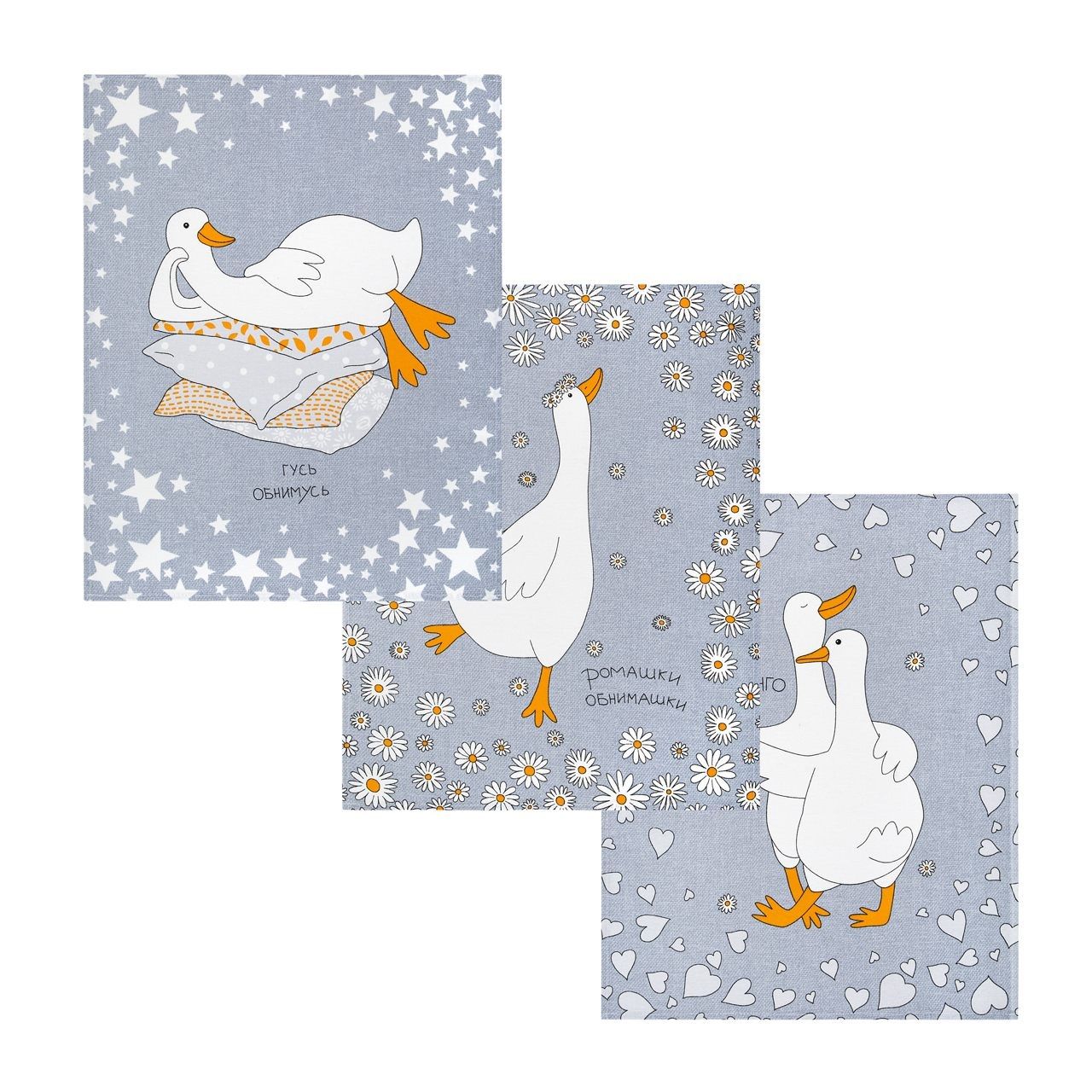 165 / серый / Лавандовые гуси / Гусь / 200 / Вафельное полотно / Набор полотенец для кухни, вафельное полотно, размер 45х60, 3 штуки в упаковке. / Ивановский текстиль / 45x60 / Прямоугольник / 3 / Вафельная / Универсальный