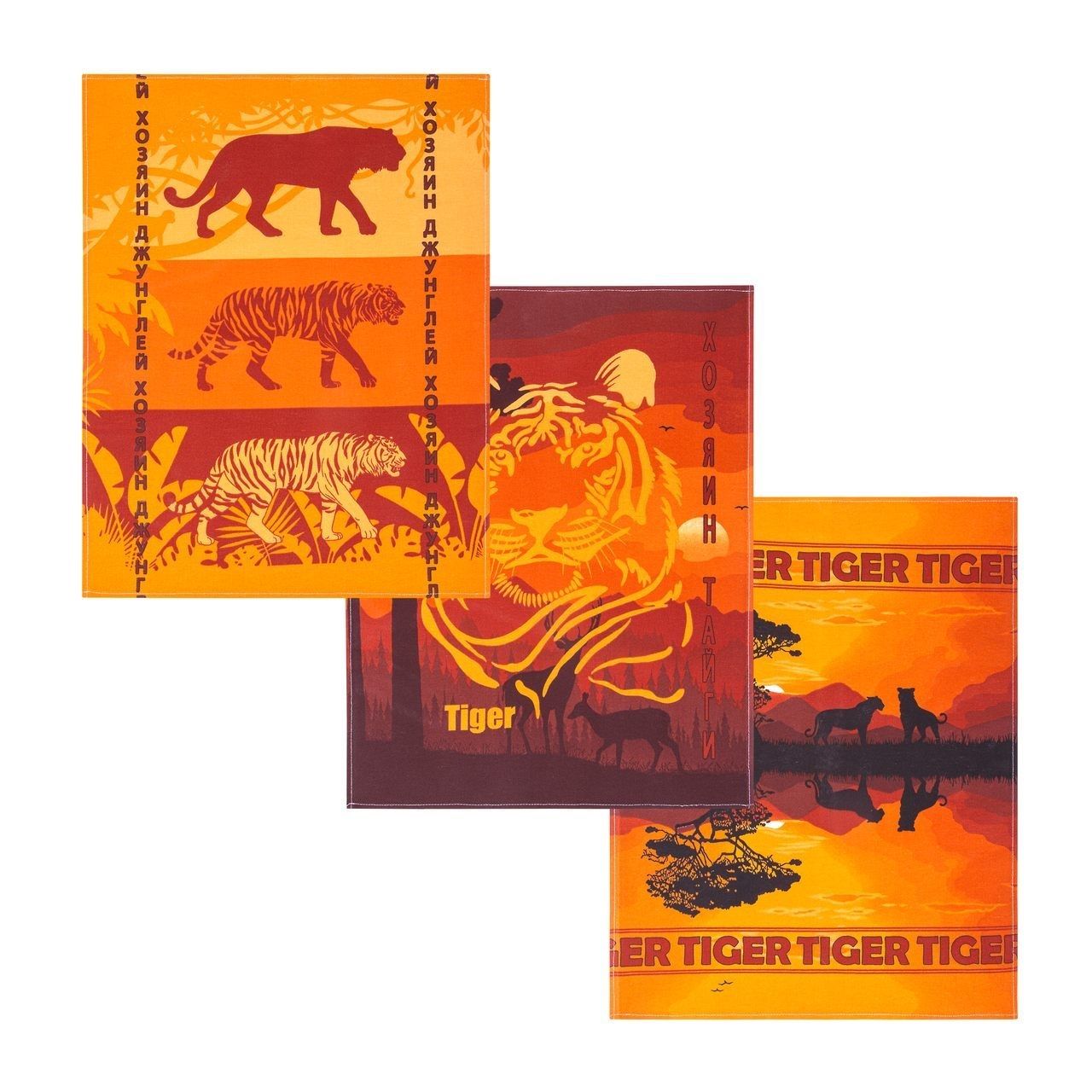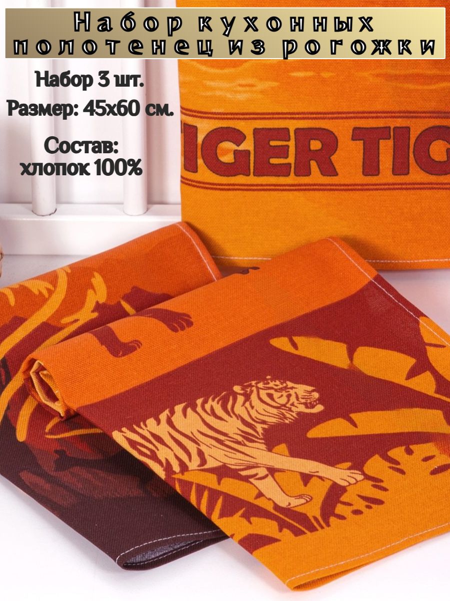 165 / оранжевый / - / Тигр / 200 / Рогожка / Набор полотенец для кухни из рогожки, размер 45х60, 3 штуки в упаковке. / Ивановский текстиль / 45x60 / Прямоугольник / 3 / Рогожка / Универсальный