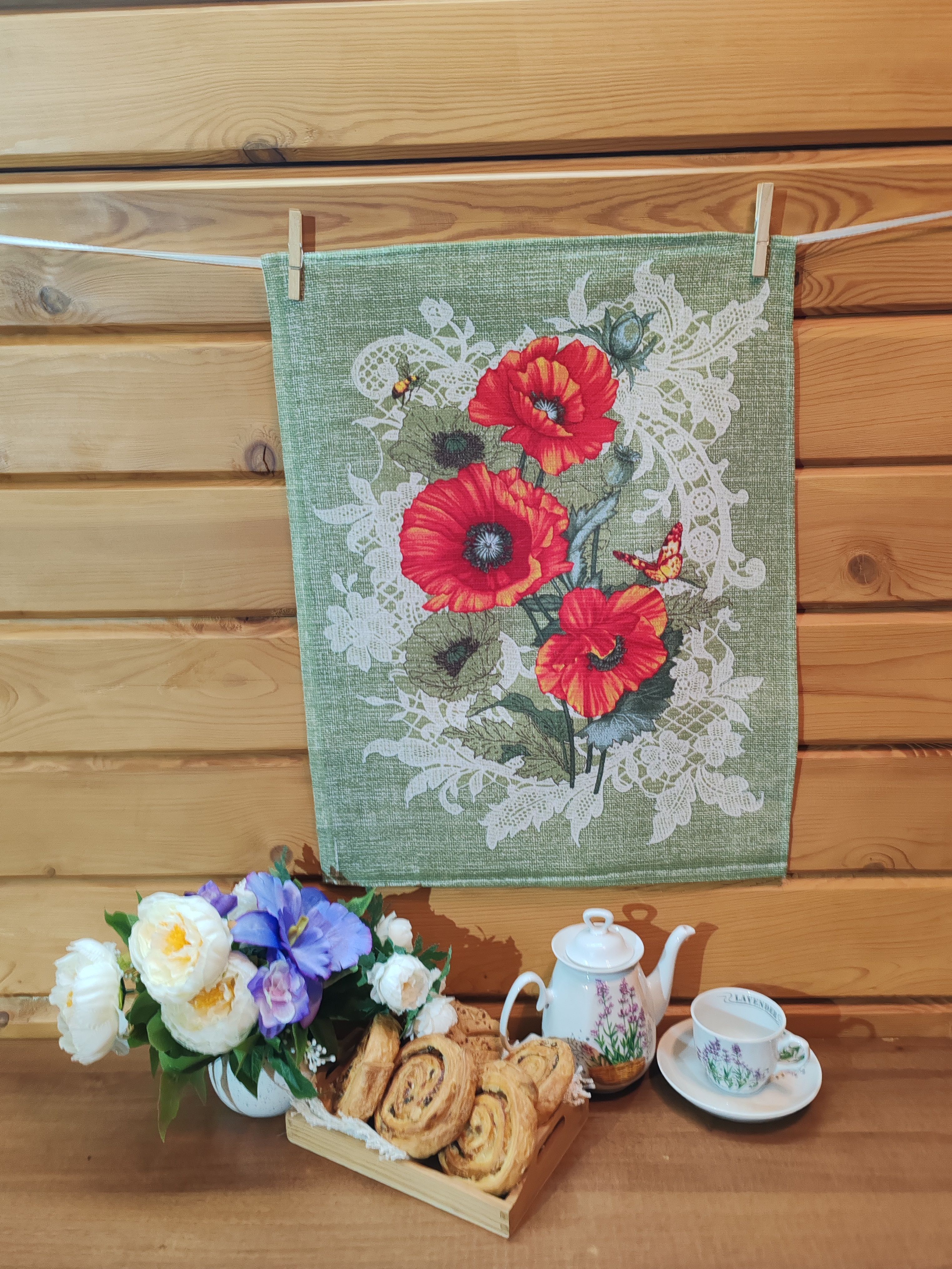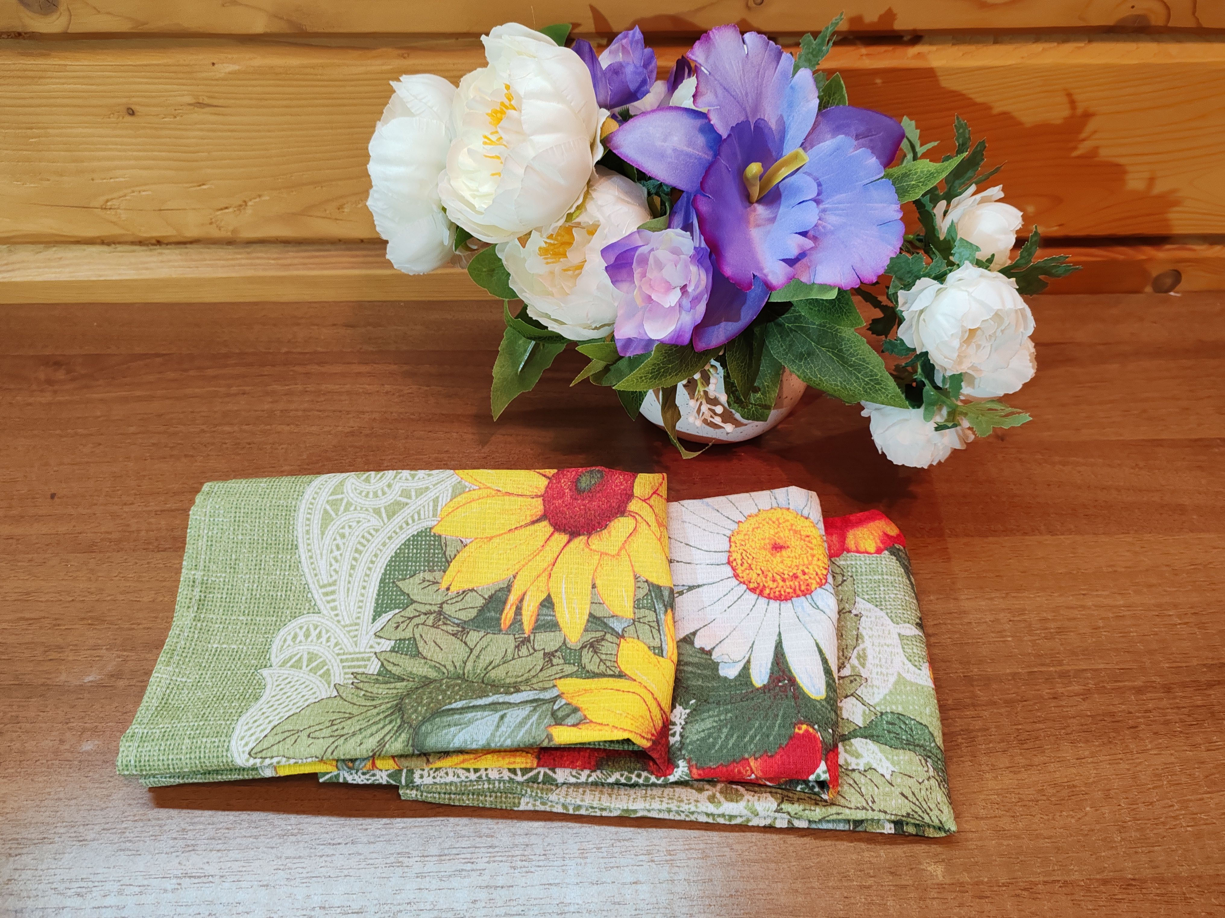 165 / зеленый / Коты / Цветы / 200 / Рогожка / Набор полотенец для кухни из рогожки, размер 45х60, 3 штуки в упаковке. / Ивановский текстиль / 45x60 / Прямоугольник / 3 / Рогожка / Универсальный